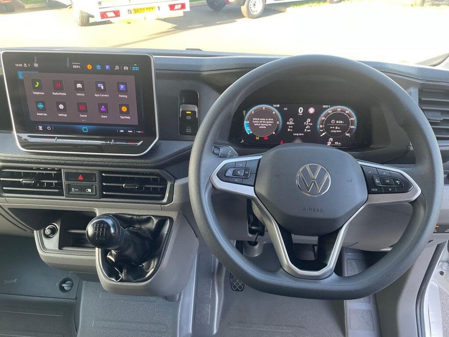 16in Steel Wheels 2 Remote Folding Keys 4 Speakers 75 Litre Fuel Tank ABS - Anti-Lock Braking System App-Connect Automatic Hazard Lights Activation Under Emergency Braking Basic Single Drivers Seat Bumpers - Black Unpainted CFCU Preparation Composition Media with 6.5in Touch Screen including We Connect Plus Preparation Crosswind Assist DAB Digital Radio Driver Alert System Driver and Front Passenger Airbag with Front Passenger Airbag Deactivation Dual Passenger Seat in Cab with Storage Compartment and Folding Tray in Backrest EBA - Electronic Brake Assist ESP - Electronic Stability Programme - Load Adjusting Electric Windows - Front Electromechanical Servotronic Steering Engine Immobiliser Front Assist including City Emergency Braking Full Height Steel Bulkhead without Window Full Size Steel Spare Wheel Glove Compartment - Illuminated with Lockable Lid Halogen Main Headlights with Range Control and Daytime Running Lights Hill Start Assist Lane Keeping Assist Load Lashing Rings Manual Side Sliding Door - Passenger Side Multi-Function Display Plus Overhead Storage Compartment with Two 1-DIN Slot and Reading Light Parking Brake - Hill Hold Control Parking Sensors - Front and Rear Rear Wing Doors - 180 Degree Hinges Rear Wing Doors Without Windows Rubber Floor Covering Seatbelt Warning Light For Driver Side Marker Lights Speed Limiter without Cruise Control System Standard Suspension and Shock Absorbers Steering Wheel - Multifunction Steering Wheel - Reach and Rake Adjustable Three Point Inertia Reel Seatbelts for all Seats Tool Kit and Jack Two 12V Outlets - Dashboard Wing Mirrors - Manually Adjustable Without Floor Covering in Load Compartment Without Rear Side Trim Panel Passenger Load Compartment e-Call and We Connect Basic Preparation