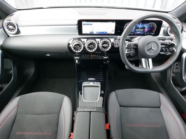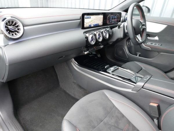 10.25 inch Instrument display with digital cockpit, Heated front seats, Apple CarPlay, 10.25 inch touchscreen central media display, Wireless charging in the front centre console, Interior lighting - 64 colour Ambient lighting, Android Auto, DYNAMIC SELECT with a choice of driving modes (ECO, Comfort, Sport and Individual), Car wash mode, Cruise control with limiter, ECO start/stop function, Hard-disk navigation, Hey Mercedes Voice activation, Mercedes me connect including emergency call system, accident recovery, breakdown and maintenance management, Comfort suspension with ride height lowering, MBUX multimedia system, Mercedes Benz sound system (100 W) with 6 speakers, DAB digital radio tuner, Heated glass rear windscreen + timer control, LED high performance headlamps with integrated LED daytime running lights and adaptive highbeam assist, Privacy glass with dark tinting on rear side windows and rear window, Electrically adjustable and heated door mirrors with integrated LED indicators, 4 way lumbar support, Air conditioning - One zone thermatic automatic climate control with automatically controlled air distribution, Artico man-made leather/Microcut microfibre upholstery, Two outer rear seat isofix and top tether child seat fixing points, Keyless go comfort pack - CLA, Parking pack with reversing camera - CLA, Adaptive brake assist with hold function and hill start assist, Crash responsive emergency lighting, Electric parking brake, Active brake assist includes forward collision warning system with autonomous braking, 18" AMG 5 twin spoke light alloy wheels painted in termolite grey with high sheen finish