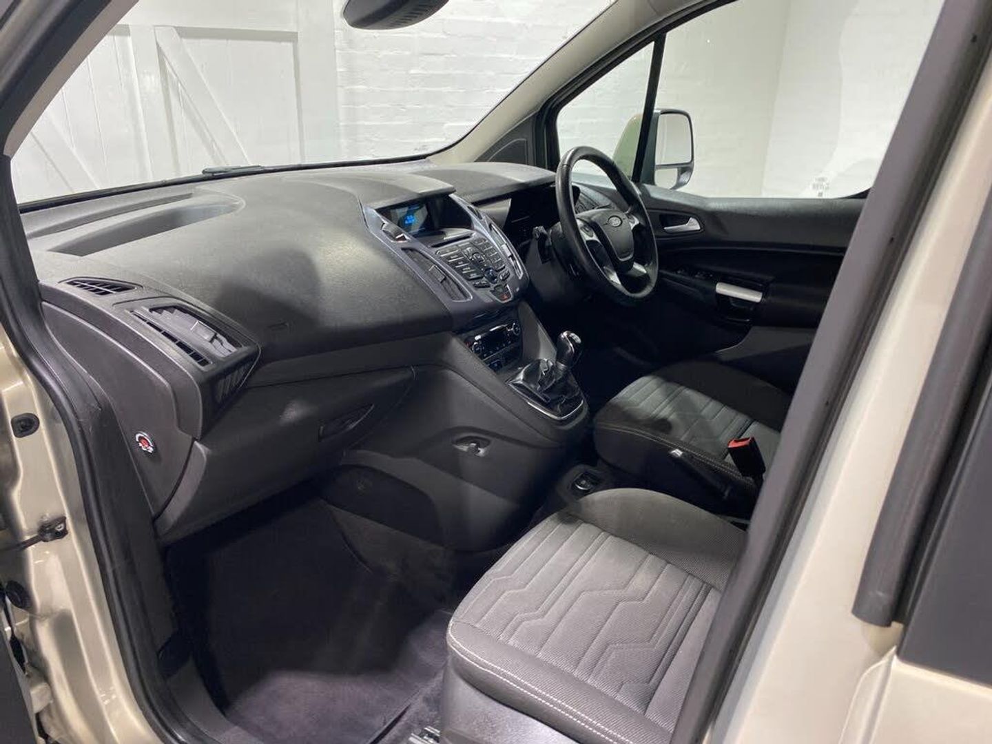 Bluetooth + USB, Cruise control + speed limiter, Easy fuel capless refuelling system, PAS, Trip computer, Diesel particulate filter, Steering wheel mounted audio controls, Automatic lights and wipers, Body colour door handles, Body colour side mouldings, Body coloured bumpers, Chrome headlight surround, Cornering light, Daytime running lights, Dual sliding side load doors, Electric folding and heated door mirrors, Front fog lights, Heated washer jets, Heated windscreen, Power front/rear windows with global close, Privacy glass, 2nd row centre armrest, 4 way manually adjustable passenger seat with height, reach, tilt, backrest and headrest, Cloth upholstery, Driver's armrest, Front carpet mats, Front head restraints, Leather gearknob, Leather steering wheel, Map pocket on front seat backs, Overhead storage shelfs, Pollen filter, Reach + rake adjustable steering column, Rear head restraints, Rear overhead stowage, Row 2 folding/removable seats, Seat pack 9 - Tourneo connect//Grand Tourneo Connect, 3 point seatbelts on all seats, Active city stop, Driver and passenger airbags, Drivers seatbelt reminder, ESC with ABS, Front and rear curtain airbags, Front side airbags, Passenger seatbelt warning indicator, 2nd remote key, Immobiliser, Remote central double locking