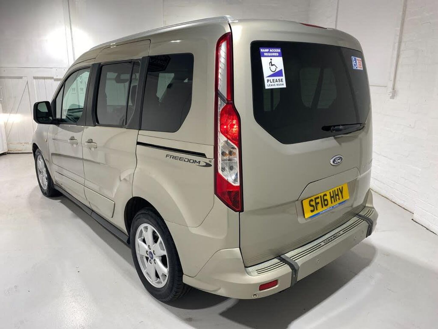 2016 16 Reg Ford Tourneo Connect 1.5 TDCi (120PS) 6 spd TITANIUM 5dr**Wheelchair Access Vehicle WAV**3 seats***. Diffused Silver metallic with black cloth interior, 3 seats plus wheelchair, folding rear access ramp, alloy wheels, PANORAMIC ROOF, CD, DAB, Bluetooth USB, AIR CONDITIONING, REAR PARKING SENSORS, PRIVACY GLASS, electric front and rear windows, heated front and rear screens, cruise control with speed limiter, roof rails, auto lights, rain sensing wipers, front fog lights, electrically operated heated door mirrors, ABS, ESP, 35,710 miles (SF 16 HHY).