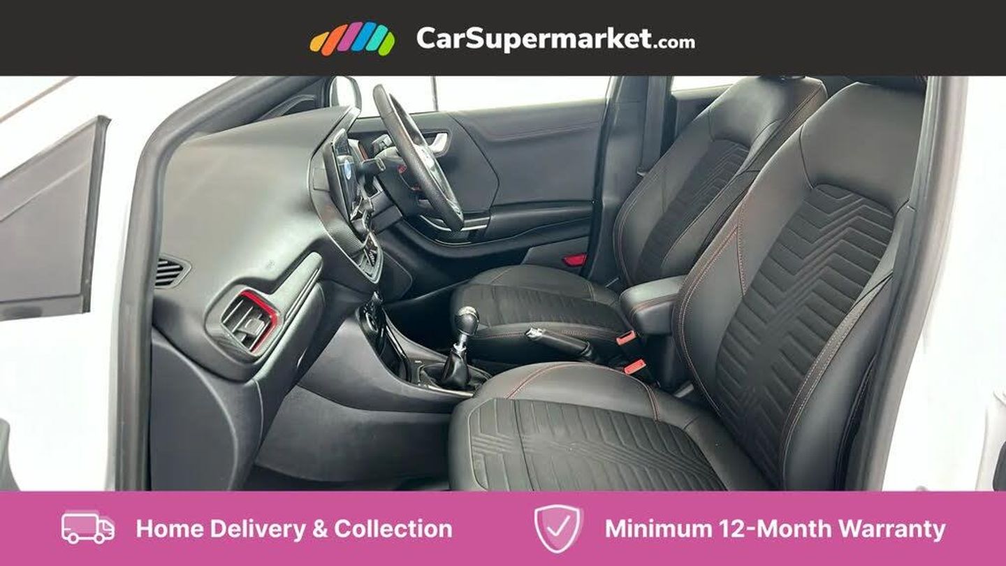 Driver impairment monitor,Emergency call service,Ford easy fuel,Full digital 12.3" instrument cluster,Lane keeping aid with lane departure warning,Power assist steering,Power start button,Rear parking sensor,Selectable drive modes(Normal, sport, Eco, trail, slippery),Speed sign recognition,Sport suspension,Automatic headlights with auto high beam,Automatic rain sensing wipers,Front fog lamps,LED daytime running lights,LED rear lamps,Power foldable heated door mirrors with puddle lamps,Privacy glass to side rear windows and tailgate glass,Quickclear heated windscreen,Rear side wing doors,Rear wiper,ST-Line body styling kit with unique grille and large body colour rear spoiler,Third brake light,3 seat bench in 2nd row,Centre console with armrest and stowage,Ford megabox extended bootspace,Front and rear head restraints,Manual 4 way driver seat adjust with lumbar adjustment,Manual 4 way passenger seat with lumbar seat adjustment,Sensico partial premium upholstery,Single front passenger seat,ST-Line flat bottomed sensico leather steering wheel with leather handbrake and aluminium gear knob,Wireless charging pad with electronic air temperature control (EATC),B&O Premium Audio system + Ford SYNC 3 navigation pack - Puma,3 rear seatbelts,Child safety lock,Electronic stability control (ESC) and hill start assist,Pedestrian/cyclist detection & post-collision braking,Pre collision assist with autonomous emergency braking,Tyre pressure monitoring system (TPMS),Thatcham alarm,Carbon look interior deco spears,Frozen White,Partial Premium Sensico - Black with Red Stitching