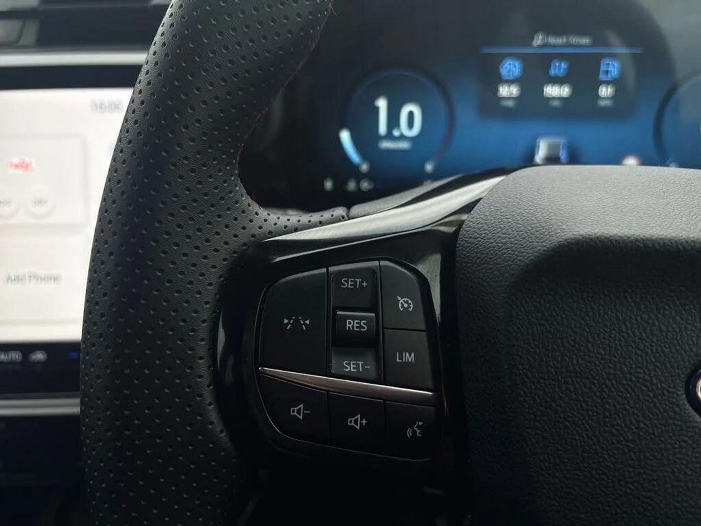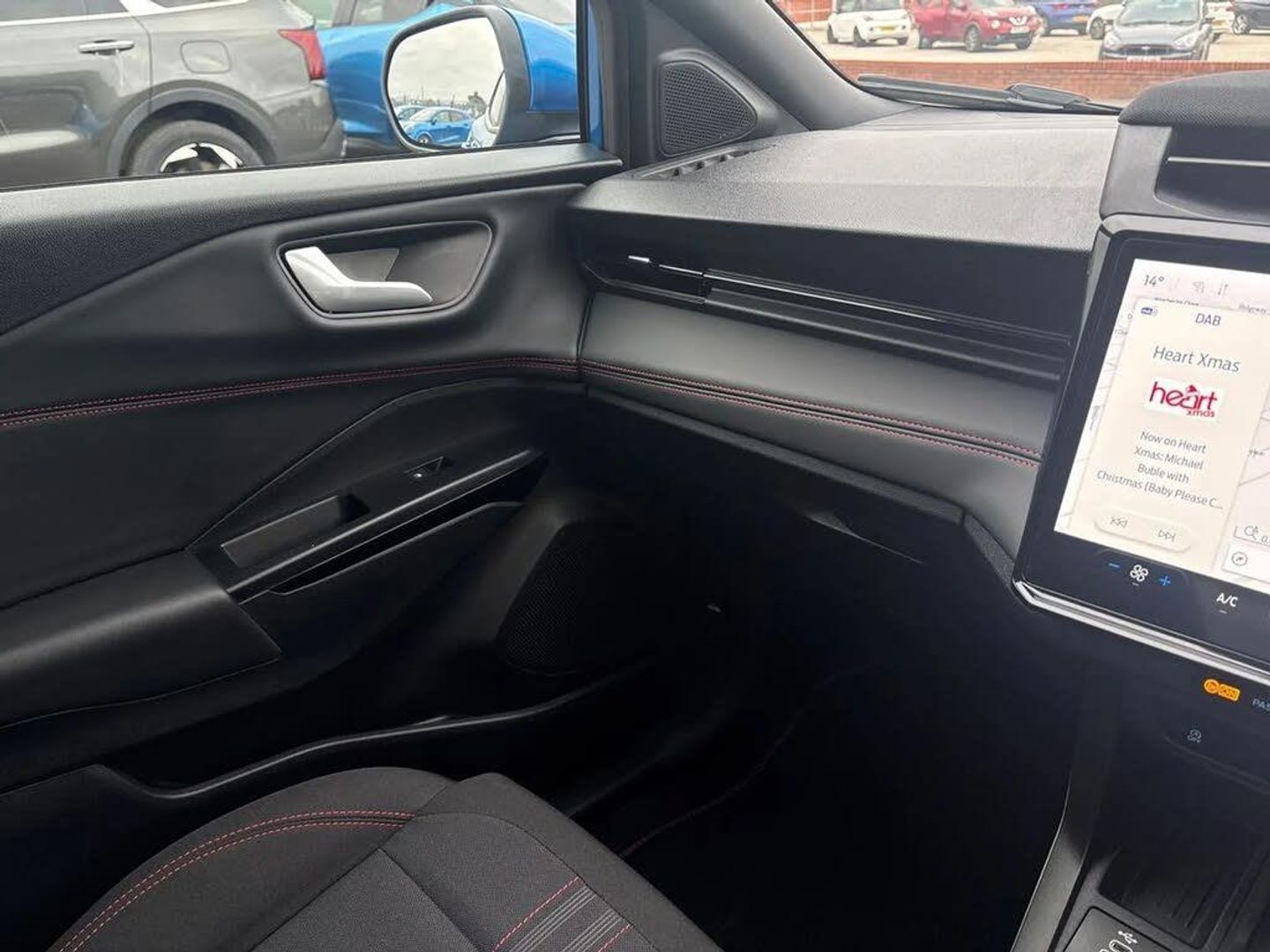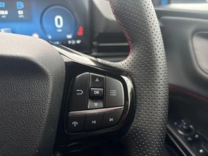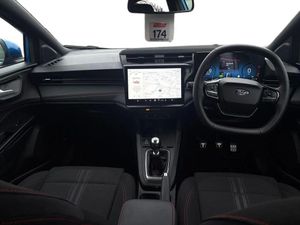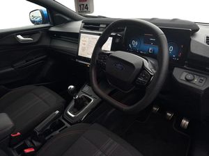 Driver impairment monitor,Emergency call service,Ford easy fuel,Full digital 12.8" instrument cluster,Lane keeping aid with lane departure warning,Power assist steering,Selectable drive modes(Normal, sport, Eco, trail, slippery),Speed sign recognition,Sport suspension,12" landscape touchscreen display with wireless apple car play and android auto 6 speaker audio system,Ford pass connect and emergency assistance,Ford SYNC4 with connected navigation,Automatic headlights with rain sensing wipers and auto high beam,Front fog lamps,LED daytime running lights,LED rear lamps,LED third brake light,Power foldable heated door mirrors with puddle lamps and puma logo protection,Quickclear heated windscreen,Rear privacy glass,Rear side wing doors,Rear wiper,ST-Line body styling kit with unique grille,3 seat bench in 2nd row,Centre console with armrest and stowage,Electronic automatic temperature control (EATC),Ford megabox extended bootspace,Front and rear head restraints,Front floor mats,Manual 4 way driver seat adjust with lumbar adjustment,Single front passenger seat,ST- Line cloth trim with red stitching,3 rear seatbelts,Child safety lock,Electronic stability control (ESC) and hill start assist,Pre-collision assist with autonomous emergency braking, pedestrian/cyclist detection & post-collision braking,Tyre pressure monitoring system (TPMS),Thatcham alarm,Cloth - Black with Red Stitching