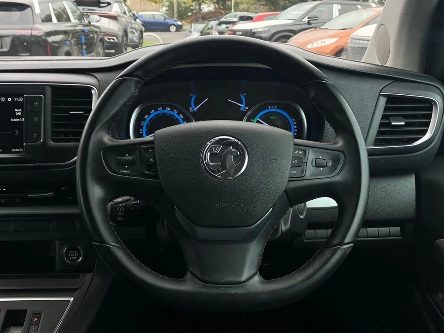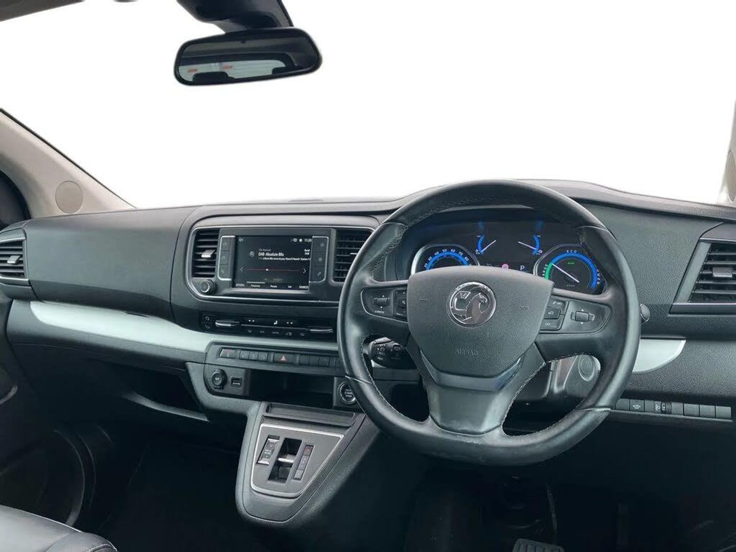 Central facia display - Audio information, Digital clock with automatic RDS time adjustment and outside air temperature with ice warning function,Drive mode selector,Instrumentation - speedometer, rev counter, low fuel gauge warning light, fuel economy gauge and coolant temperature warning light,Multi function trip computer - Trip odometer, vehicle range, average speed and fuel economy, instantaneous fuel economy and driving time,Multi-mode toggle (Eco, Normal, Power),Rear parking sensors,Speed sensitive electrically assisted power steering,Vauxhall connect including Ecall and connected services,Automatic transmission with e-toggle shift,Delayed charging facility,Mode 3 charging cable,2nd row slide opening side windows,90 percent dark tinted rear windows and tailgate,Auto dimming rear view mirror,Auto headlights,Body colour door handles,Body colour front bumper and rear corner bumper with black centre section,Body colour mirror housing,Body colour side protection mouldings,Chrome effect front grille,Electric adjustable/heated door mirrors,Electric Front windows with one touch up/down facility,Electrically foldable door mirrors,Electrically operated sliding side access doors,Flexible roof mounted aerial,Front fog lights,Halogen headlights,Intermittent rear window wash/wipe,Lights on audible warning, reversing light, hazard warning, rear fog light, high level brake light, side repeat indicators, LED daytime running light,Rear side window blinds,Tailgate and heated rear window with wash/wipe facility,Two speed windscreen wipers with variable intermittent wipe,Vehicle charging socket,12V socket in cargo area,12V socket in saloon area,220 volt socket behind drivers seat,3 power outlets,3 spoke design steering wheel with satin chrome effect bezel,4 way adjustable single front passenger seat with massage functions, reach,backrest, armrest and head restraints,6 way power adj driver seat with memory and massage func, height,reach,backrest, armrest, lumbar adj,under seat storage and head restraints,A4 storage compartment in facia,Body lock seatbelt pretensioner system,Dual zone electronic climate control with rear air conditioning and roof mounted controls,Floor mounted handbrake lever,Front door pockets with three separate compartments,Heated front seats,Height adjustable front seat head restraints,Leather covered steering wheel,Leather upholstery,Lower shelf,Luggage area cover,Open lower glovebox with 12v socket and aux-in facility,Open storage compartments in facia,Pollen filter, air recirculation facility and illuminated controls,Reach and rake adjustable steering column,Rear head restraints,Rear parcel shelf,Rear seat back tables,Roof mounted rear heater control,Seatbelt unfastened audible warning,Second row three passenger 60/40 split bench seat,Storage pocket in front of gear lever,Third row three passenger foldable 60/40 split individual sliding single seat,Two facia mounted drinks holders,Upper glovebox,Driver assistance pack - Vivaro Life Electric,Navigation and Camera Pack - Vivaro Life Electric,Visibility pack - Vivaro Life Electric,3x3 point rear seatbelts,Anti-lock braking system, emergency brake assist, electronic brake force distribution, engine drag torque control and hill start assist,Brake energy recuperation,Child proof locks on rear doors,Cornering brake control,Deactivation switch for front passengers front and side impact airbags,Driver and front passenger airbags,Drivers and front passenger lap belt pretensioner system,Electric parking brake,Electronic stability programme with traction control,Front seatbelt force limiters,Full length curtain airbags second and third row seating,Full-size curtain airbags for driver and front and outer rear seat passengers,Height adjustable lap and diagonal inertia reel seatbelts,ISOFIX child seat mountings incorporating top tether anchor points located on second row rear seats,Straight line stability control,Two front seat side-impact airbags,Tyre pressure monitoring system,Electronic engine deadlock immobiliser, steering column lock, lockable fuel filler cap and anti-theft spare wheel cradle,Keyless entry and start,Locking wheel bolts,Remote control door locking, two keys with integral remote, door deadlocks and selective door locking,System monitors doors, tailgate, bonnet and the passenger compartment,Visible vehicle identification number,Mistral black with decor insert facia and door trim,17" Diamond cut bi-colour alloy wheels,Tyre inflation kit