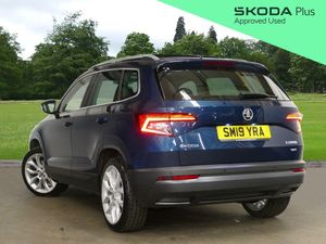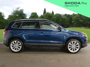The Skoda Approved Used Event is here! 3rd 20th October. Get £750 towards your finance deposit across our Approved used range with Solutions PCP at 10.9% APR Representative* for vehicles 1-8 years old. Plus 2 years Servicing, 2 years Warranty, 2 years Roadside Assistance & 2 MOTs. *T&Cs apply. When purchased with Solutions PCP. But hurry this offer ends 20th October! Introducing this stunning & rare 2019(19), Skoda Karoq Edition 1.5 TSI 150PS 4x4 DSG automatic finished in Petrol Blue Metallic with 19" Crater Silver alloy wheels. Lane assist, cruise control with a speed limiter, blind spot monitoring, rear traffic alert and front assist provide reassurance in all driving conditions, while front and rear parking sensors combined with a rear-view camera make manoeuvring effortless. Entertainment and connectivity are easily managed with DAB radio, Bluetooth, Apple CarPlay and Android Auto. Comfort is well catered for with heated front seats and dual-zone climate control, ensuring the cabin remains at an ideal temperature all year round. Satellite navigation offers reliable guidance on longer trips, and the electronically adjustable drivers seat with memory function allows you to return to your preferred position at the touch of a button. Drive mode select enables you to tailor performance to your driving style, supported by an off-road screen that displays key data when tackling more challenging terrain. A convenient USB port also ensures your device stays charged on the go. ULEZ compliant. Part exchanges welcome. We are driven by customer satisfaction and all our cars are carefully prepared to our own and Skoda's exacting approved standards, both mechanically and cosmetically, additionally with a minimum of 12 months warranty, 12 months breakdown roadside assistance and minimum 6 months MOT. For more information, to book your test drive or to request a personalised walk-around video of a vehicle, please contact our team at Simpsons Skoda Colne.