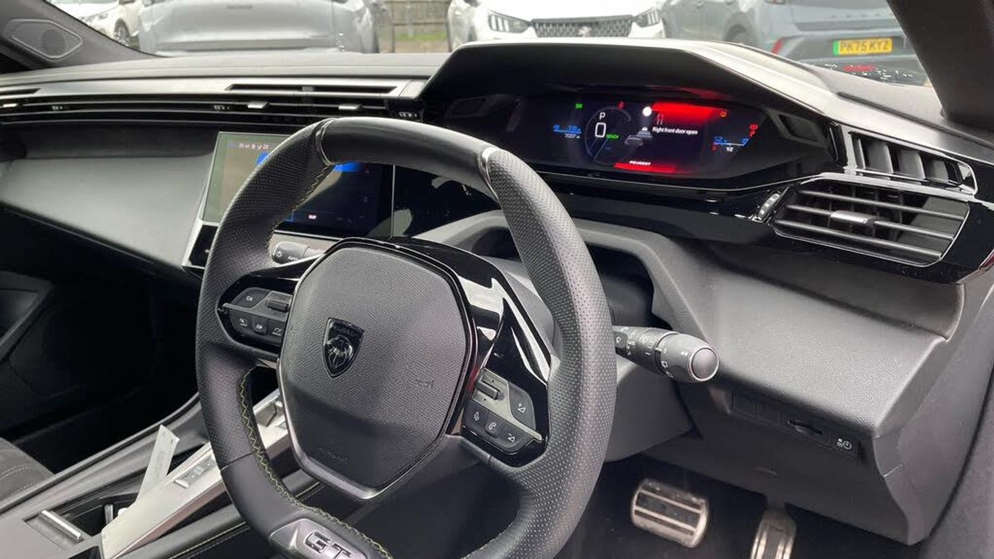12V Power Socket, 6-Speaker Radio, Bluetooth Telephone Facility, DAB Digital Radio, E-Remote Control, Mirror Screen, Peugeot Connect Advanced, Peugeot Connect SOS and Assistance, PEUGEOT i-Cockpit - 10in HD Colour Touchscreen, PEUGEOT i-Connect, USB Socket x 2 and USB-C x1, USB-C Socket x2 in the Rear - Charging Only, 180 Degree HD Colour Reversing Camera, Compact Drive Selector, Driver Attention Warning, Exterior Temperature Indicator with Ice Warning, Multi Driving Mode Selector - Eco-Normal-Sport, Multifunction Trip Computer, Parking Sensors - Front and Rear, PEUGEOT 3D i-Cockpit - Configurable 3D Head-Up Instrument Panel, Programmable Cruise Control and Speed Limiter, Tyre Pressure Sensors, Voice Recognition - Radio-Navigation-Telephony Features, 18in Alloy Wheels - Ottawa - Diamond Cut, Acoustic Laminated Front Side Windows, Acoustic Tinted Windscreen, Dark Tinted Rear Side and Tailgate Windows, Door Mirror Shells - Nera Black, E-308 Badging, Electric - Heated and Power Folding Door Mirrors, Exhaust Pipe - Twin Chrome Surrounds, Extended Lower Body Sills to the Front and Side, Exterior Door Handles - Body-Colour, Gloss Black B Pillar, Gloss Black Rear Cluster Connecting Strip, LED Side Indicator Lights Integrated into Door Mirrors, Lion Emblem Badging on Front Wings, Locking Wheel Nuts, Model Designation Badges - Front and Rear, One-Touch Electric Front and Rear Windows with Pinch Protection, Puncture Repair Kit, Radiator Grille - Dark Chrome Chequered, Rear Lower Bumper Gloss Black Diffuser Effect Trim, Rear Spoiler - Body Colour, Tailgate with Heated Rear Windscreen and Wiper Blade, Visibility Pack, Full Matrix LED Headlights with Automatic Adjustment, High Beam Assist, PEUGEOT Signature LED Daytime Running Lights, Rear Full LED 3D Peugeot Signature Claw Effect Lights - With Sequential Welcome Sequence Upon Unlocking the Vehicle, 1-3 - 2-3 Folding Rear Seat, 8 Colour Personalisable Ambient Lighting - Door Panels, Automatic Air Conditioning with AQS 3 - Air Quality System, Carpet Mats, Central Front Armrest with Storage Compartment, Centre Console with Two Cup Holders, Fixed Boot Floor, Frameless Electrochrome Rear View Mirror, Front Optimised Safety Headrests and Rear Retractable Headrests - x3 - Height-Adjustable, Heated Steering Wheel, LED Lighting within Glovebox, Manual Driving Mode, Multifunction Full Grain Leather Steering Wheel with Aadmite Green Stitching and GT Badging, PEUGEOT Aluminium Door Sills, PEUGEOT Customisable i-Toggles, PEUGEOT i-Cockpit Compact Steering Wheel, Piano Keys - Gloss Black Plated Toggle Switches to Access Main Functions of Vehicle, Rear Reversing Lights, Roof Lining - Mistral Black, Seating - Driver and Front Passenger Dynamic Seats, Seating - Driver and Front Passenger Seat Height Adjustment, Seating - Driver and Front Passenger Seat Manual Adjustment - Longitudinal and Back Rest Angle, Seating - Driver Seat Lumbar Adjustment, Seats - Heated Front, Ski Hatch with Central Armrest with Cup Holder, Sport Pedals with Foot Rest, 11kW Triphase On Board Charger, Driver Sport Pack, Electric Power Steering with Reach and Rake Adjustable Steering Column, Intelligent Speed Adaption, Mode 3 Type 2 Cable for Wallbox Charging, Active Safety Brake - Night Function - Cyclists - Pedestrians, Airbags - Adaptive Driver and Front Passenger, Airbags - Driver and Front Passenger Side - Front and Rear Curtain, Alarm - Thatcham Category 1, Anti-Lock Braking - ABS - Electronic Brake Force Distribution - EBFD - Emergency Braking Assistance - EBA, Automatic Door Locking When Moving Off, Automatic Emergency Braking with Radar, Automatic Hazard Light Activation Upon Heavy Brake Application, Automatic Post-Collision Braking System, AVAS - Acoustic Vehicle Alerting System, Child Locking Functionality on Rear Doors, Deadlocking, Electric Parking Brake, Electronic Code Immobiliser, ESP - Electronic Stability Programme with Hill Start Assist, Front Three-Point Retractable Seatbelts with Force Limiters, ISOFIX Child Seat Fittings - x2 - Second Row, Lane Keeping Assist, LED Rear Number Plate Lights x2, Peugeot Open and Go System - Keyless Entry, Rear Windscreen Wiper Triggered Automatically in Reverse Gear, Seatbelt Unfastened on the Move Audible and Visual Alert for Front and Rear Seats, Speed Limit Recognition and Recommendation