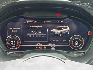 3D map display, Audi connect navigation and infotainment includes innovative services, Audi connect remote and control connects your vehicle to your smartphone, Audi drive select: S tronic - power steering assistance + engine + gearshift (modes: comfort, auto, dynamic, efficiency, individual), Audi smartphone interface - Apple carplay/Android Auto, USB connect, 2xSDXC card readers, voice control for navi, telephone, music and 3rd party apps, Audi virtual cockpit, Automatic start/stop system with recuperation, Bluetooth interface includes bluetooth audio streaming, Cruise control, E-call, Jukebox hard drive memory for music (10GB), MMI navigation plus with 8.3" colour MMI screen and MMI touch, Natural voice recognition, Power operated tailgate, Progressive steering, Rear parking sensors, Sport suspension, 6 passive loudspeakers, DAB Digital radio, Audi beam, Auto dimming rear view mirror, Black window trims, Bumper in full body colour paint finish, Electrically adjustable, folding, auto dimming and heated door mirrors with integrated LED side indicators, Front windscreen with grey tinted sunband, LED daytime running lights, LED headlights with dipped beam, high beam, position lights, indicators, LED rear lights, LED third brake light, Privacy glass - dark tinted rear and rear side windows from B-pillar backwards, Rear side wing doors, Rear wiper, Variable front intermittent wipers, Wheel arch trims in manhattan grey, 12v socket in front, 3 seat bench in 2nd row, 3 spoke flat bottomed multi-function leather sport steering wheel with gear shift paddles, 4-way electric lumbar support for front seats including manual seat height adjustment for both front seats, 60/40 split folding rear seat bench, Black carpets, Black cloth headlining, Front and rear head restraints, Front centre armrest, Front sport seats, Front/rear floor mats, Height/reach adjust steering wheel, Illuminated door sill trims with S logo, ISOFIX child seat mounting in front passenger and rear outer seats, Manual air conditioning, Single front passenger seat, Stainless steel pedals, Black styling pack - Q2, 3x3 point rear seatbelts, 6 airbags - Front, curtain and front side airbags, Electromechanical parking brake, Electronic stabilisation control including ABS, ASR and EDL, Front passenger airbag deactivation, Hill hold assist, Pre-sense front with pedestrian recognition, Seatbelt monitoring, Tyre pressure warning light with visual and acoustic warning, Warning triangle and first aid kit, Anti theft alarm, Anti theft wheel bolts, Electronically operated child locks, Remote central door locking, Aluminium interior element, Black dashboard, Matt brushed aluminium trim inlays, Tool kit
