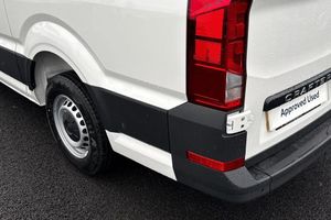 ;This Volkswagen Crafter CR35 Medium Wheelbase Panel Van is a superb example of practicality, comfort, and advanced driver assistance. Finished in Candy White with a refined Titanium Black/Palladium/Pearl Grey interior, this one-owner vehicle is powered by a 140 PS 2.0 TDI diesel engine, paired with a 6-speed manual transmission and front-wheel drive, offering dependable performance for everyday business needs. The exterior features a body-coloured high roof, partially painted bumpers, and rear wing doors with 270° hinges, while electrically heated and adjustable wing mirrors add convenience in all weather conditions. Inside, the van is equipped with a wooden load floor cover and overhead storage compartment with reading light, making it ideal for organised and efficient use. Comfort is well catered for with heated driver and passenger seats and a heated leather-wrapped multi-function steering wheel. The Comfort single driver?s seat and electronically controlled air conditioning ensure a pleasant driving experience, even on long journeys. This Crafter is fitted with the Advanced Assistance Package, which includes adaptive cruise control, speed limiter, Travel Assist with semi-automatic driving, Lane Assist, High Beam Assist, and a rear-view camera. These features provide enhanced safety and ease of driving, especially in busy urban environments. Technology is a highlight, with a 10.4" infotainment system, 10" touch colour display, Wired & Wireless App-Connect, digital radi...