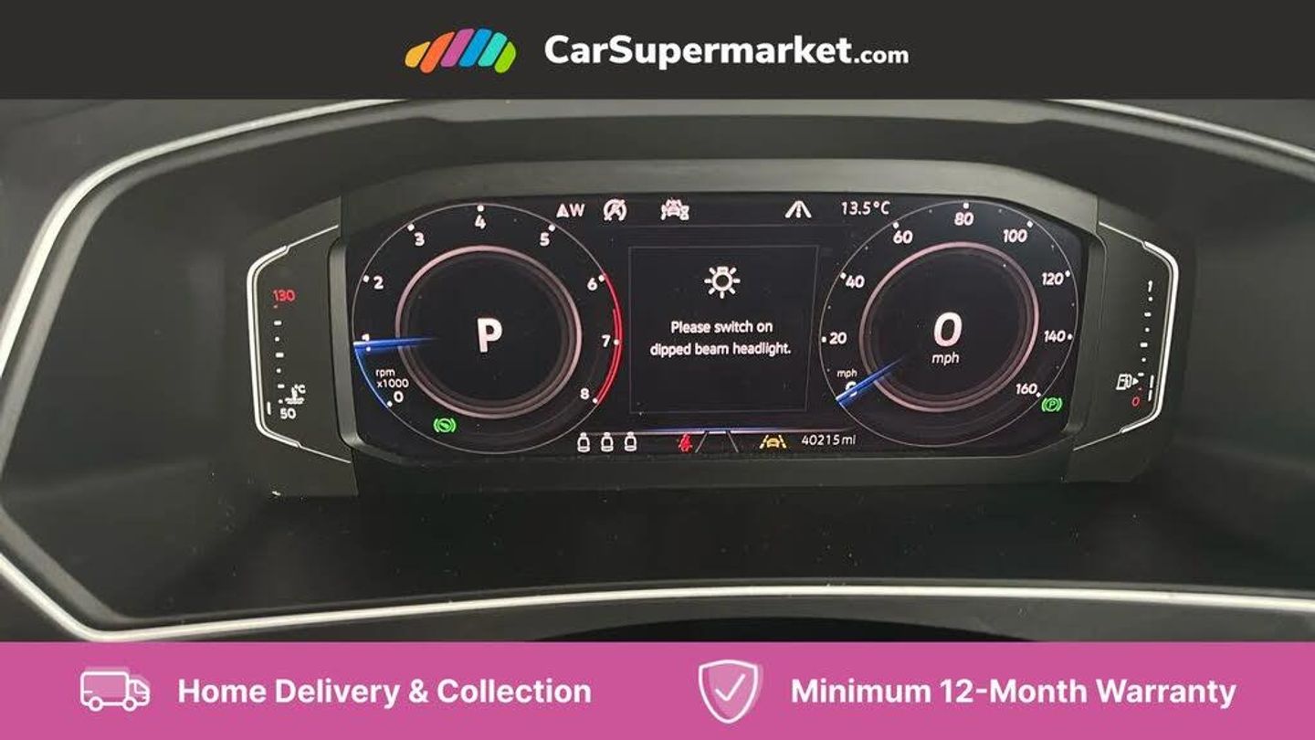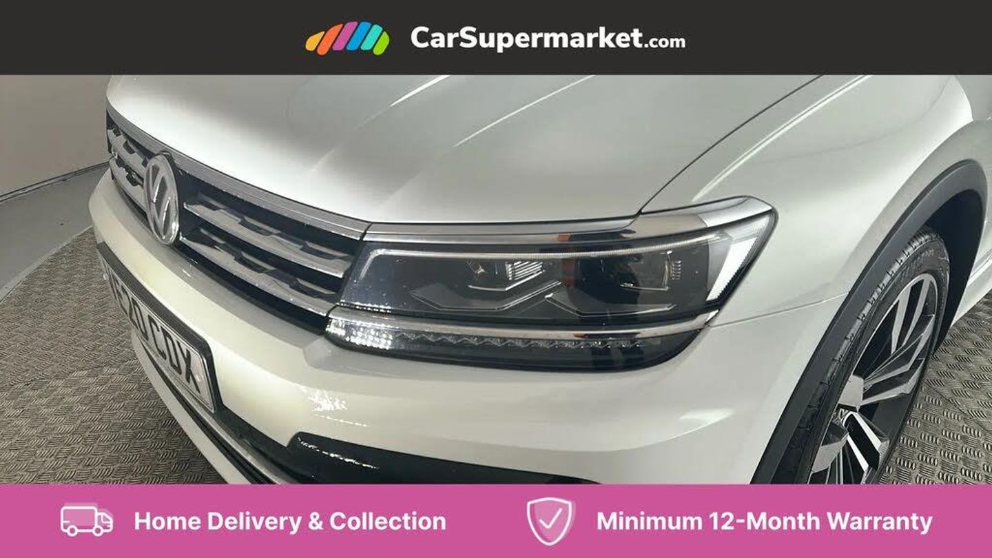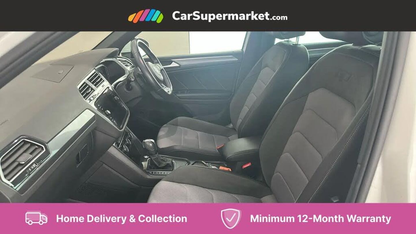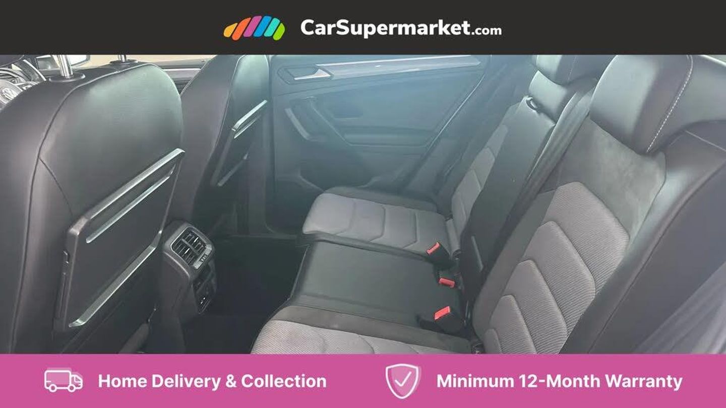 2D/3D map view,Active information display,Adaptive cruise control,App-Connect,Bluetooth phone integration system,Car information display,Coasting function,Distance control assist,Drive mode selector,Driver profile selection,Front assist, radar sensor controlled distance monitor, city emergency braking + predictive pedestrian protection,Instrument cluster,Lane assist,Lights on warning,Multifunction computer with visual gear change recommendation for fuel consumption,Outside temperature display,Service interval indicator,Speed limiter,Start/Stop function,Warning sound and light for doors and tailgate open,Battery regeneration during braking,XDS electronic differential lock for improved traction and handling,2 x USB connection + USB charging socket,4 X 20 watt output,DAB Digital radio,SD card slot,Simultaneous pairing of 2 compatible mobile devices,SMS functionality - read, compose and send SMS messages using touch-screen display,Title and cover art display,3D effect cherry red LED rear tail lights,Auto dimming interior mirror,Automatic activation of hazard warning lights,Black grained lower door protectors with chrome inserts,Body colour door handles,Body colour door mirrors,Body coloured bumpers,Chrome side window surrounds,Chrome trimmed radiator grille,Coming/leaving home lighting function,Dusk sensor + auto driving lights,Electric panoramic sunroof with sunblind,Electrically heated and foldable door mirrors, door mirror puddle lights and reverse activated kerb view adjustment on passenger's door mirror,Front and rear electric windows,Heated rear window,High level 3rd brake light,LED headlights with dynamic light assist daytime running lights and cornering front fog lights,LED rear number plate lights,Left and right chrome effect trapezoid dummy exhaust tailpipe surrounds,Piano black front air intake and rear diffuser,Rain sensor windscreen wipers,Rear tinted glass from B-pillar backwards approx 65% tinted,Rear windscreen washer and wiper with interval delay,Side door sills with chrome inserts,Silver front underbody protection and rear diffuser,Silver roof rails,Windscreen wipers/ intermittent wipe + 4 position delay,12V socket in centre console storage area,2 cup holders in front,3 rear headrests,3 zone climate control,4 load lashing points,40:20:40 split folding rear seats,Bag hook in luggage compartment,Foldable front passenger seat backrest,Front centre armrest with 12v socket,Front centre armrest with storage + rear 2 air vents,Front seat back storage pockets,Front seatback folding tables,Height/reach adjust steering wheel,Illuminated driver/passenger vanity mirrors,Illuminated scuff plates,Instrument lighting white adjustable panel illumination,Interior light with delay,Isofix Preparation 2 Rear child seats,Leather gear knob,Load through provision with 2 cupholders when folded,Lockable cooled glovebox,Luggage compartment lighting,Map pockets on front seats,Passenger seat height adjuster,Removable luggage cover,Sliding/reclining rear seats,Storage compartment in driver's door,Storage compartment in passenger's door,Storage compartment in rear doors,Storage compartments in luggage area left and right,Storage tray on dashboard,Sunglasses storage,Variable boot floor, height adjustable and removable,Ambient lighting pack - Tiguan,3 rear 3 point seatbelts,ABS+EBD+Brake assist,Active bonnet,Active pedestrian safety system,Curtain airbags,Driver/Front Passenger airbags,Driver/Passenger whiplash optimised head restraints,Drivers knee airbag,DTC - Drag torque control,Electronic parking brake with auto hold,ESC with EDL, ASR, EDTC and trailer stabilisation function,First aid kit,Front seat side impact airbags,Front side airbags,Front ventilated disc brakes and rear disc brakes,Head airbag system,Height adjustable front 3 point seatbelts + pretensioners,Hill hold control,Passenger airbag deactivate switch,Passenger knee airbag,Pre crash preventive occupant protection,Rear side airbags,Rigid safety cell with front and rear crumple zones,Two tone horn,Warning sound and light for front seat belts if unfastened,Warning triangle,Alarm with interior protection,Electronic engine immobiliser,Chrome door trim inserts,Dark grey decorative inserts in dash and door panel,Piano black decorative inserts in centre console