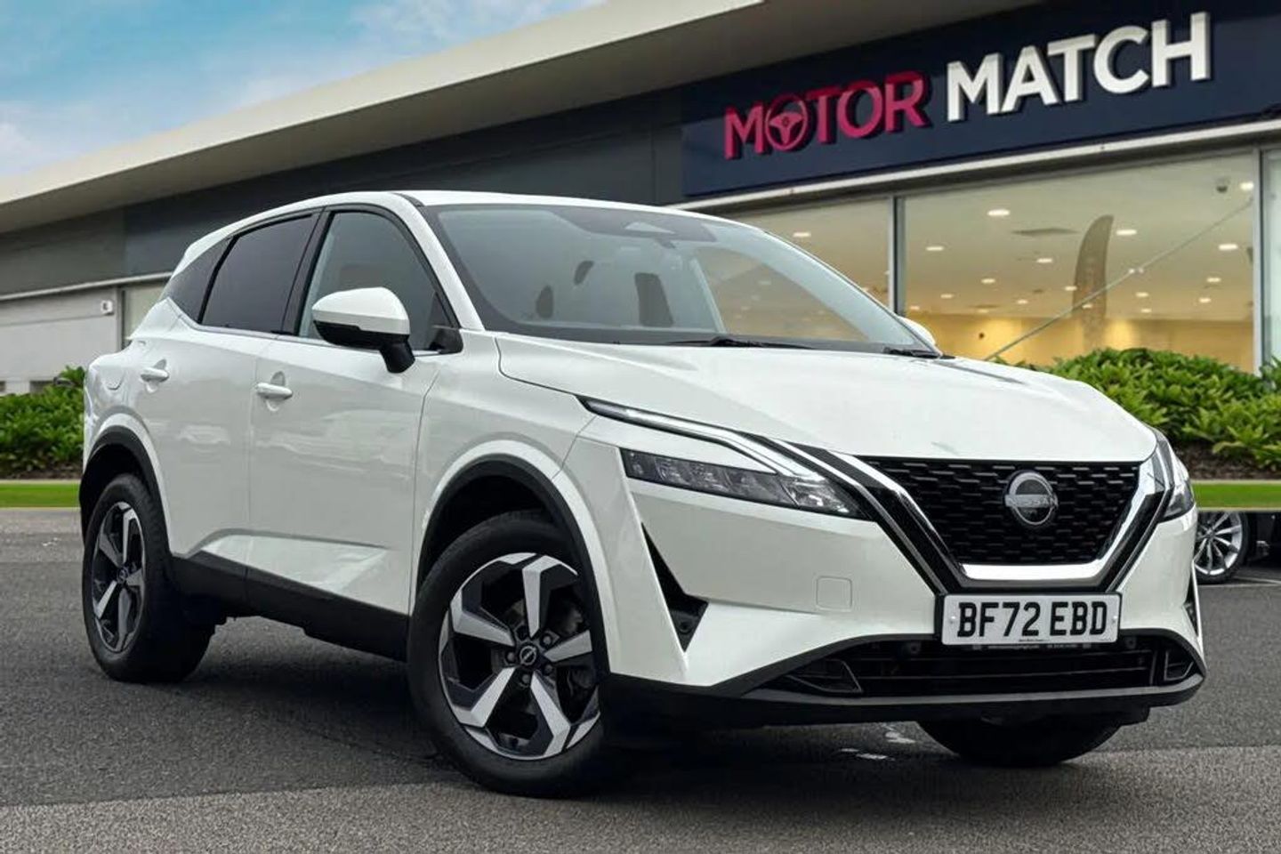 Alloys, Ambient Lighting, Apple CarPlay/Android Auto, AC/Climate, Bluetooth, Parking Sensor, Cruise Control, Advanced Safety, Collision Detection, Touchscreen, Sat Nav, Automatic Wipers, Traffic Alert, Isofix;Available now from Motor Match Chester, with only one owner from new, and serviced by Nissan at 3964 miles. This superb Nissan Qashqai N-Connecta comes finished in the sleek Arctic White gloss paint, which looks fantastic paired with the 18in diamond-cut alloy wheels. At the front of the vehicle you'll find the automatic LED headlights and rain-sensing wipers, offering superb visibility. The Qashqai also benefits from electrically adjustable, heated and power-folding door mirrors. The interior offers comfy full cloth upholstery, with sports seats offering excellent support. Manual seat adjustment is provided, and Isofix mounting points can be found on the outer rear seats. The Qashqai is very practical with plenty of legroom for passengers, and a roomy boot with additional storage beneath the boot floor. Dual-zone climate control is also provided to keep all passengers comfortable. This Nissan also boasts an amazing media system, providing access to DAB radio, Bluetooth interface and USB connectivity, so you've got plenty of choice when it comes to music. You've also got the reliable satellite navigation system on board, along with the ability to connect smartphones to use Apple CarPlay and Android Auto, to access your phones apps and maps on the go. This car is equipped with cruise control and lane keep assist which come in handy for motorway drives, while the front and rear parking sensors and 360-degree camera alert you to any obstructions when reversing! ?This vehi...