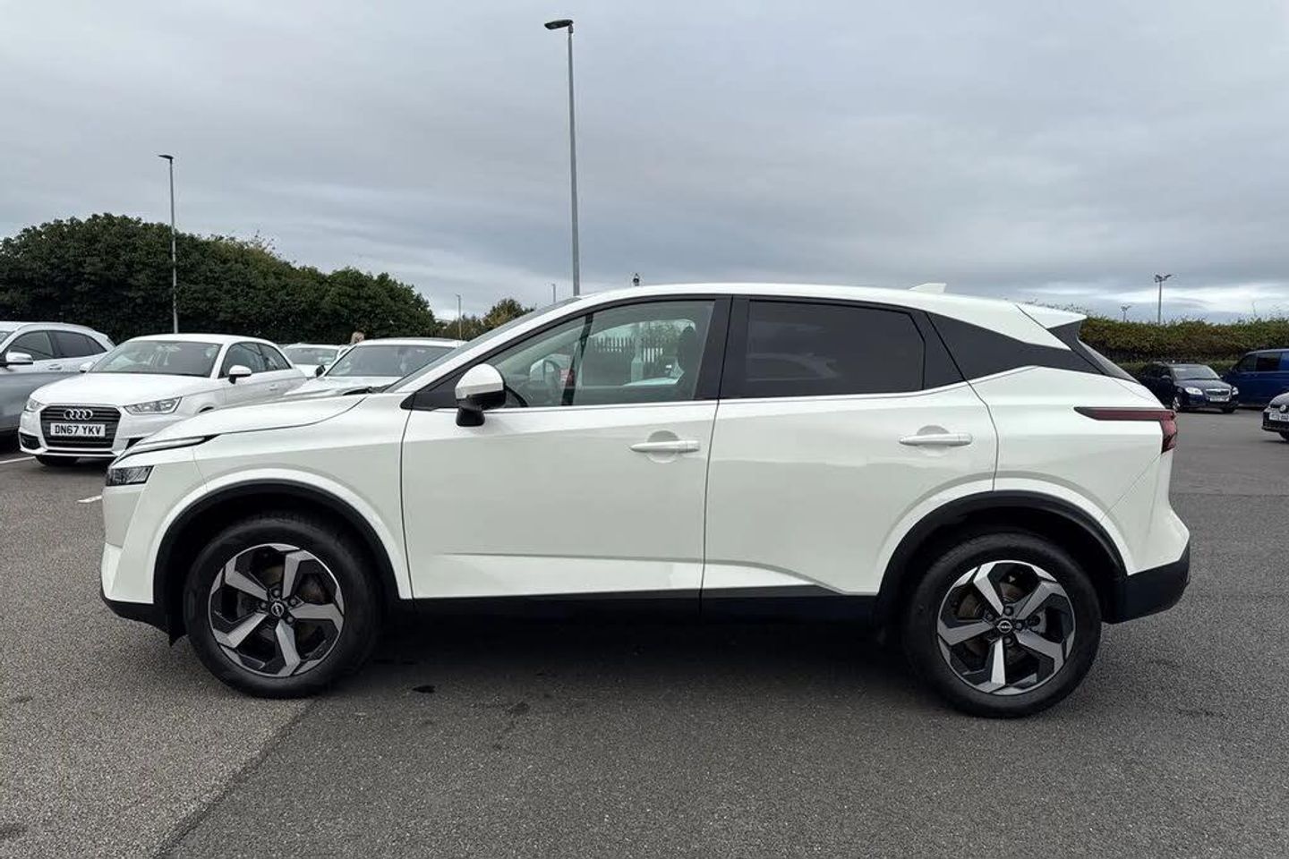 12v Power Sockets in Dash and Luggage Space,18in Alloy Wheels - Diamond Cut,3 Rear Headrests,3 x 3-Point Rear Seatbelts,4 Folding Assist Grip Plus 2 Coat Hooks Rear,6 Luggage Hooks - 4 floor - 2 Side,6 Speakers,60-40 Split Rear Folding Seats,7in High Definition Full Colour TFT Screen Combimeter,ABS with EBD and Brake Assist,AM-FM Audio System with DAB,Active Brake Limited Slip,Ambient Lighting Centre Console,Android Auto,Auto Dimming Rear View Mirror,Auto Hold Function,Auto Rear Wiper When Reversing,Automatic Dual Zone Climate Control with Pollen Filter,Blind Spot Warning,Bluetooth with Audio Streaming,Body Coloured Handles,Body Coloured Mirror Caps,Body Side Moulding,Capless Fuel Filler Cap,Chrome Interior Door Handles,Chrome Side Window Finisher,Curtain Airbags,Door Handle with Button,Door Mirror - Electrically Adjustable - Heated - Auto Folding with LED Turn Indicator,Drive Modes - Sport-Normal-Eco,Driver Seat Back Pockets,Driver and Passenger Airbags,Driver and Passenger Sun Visor with Illuminated Vanity Mirror,Driver-Passenger and Rear Seatbelt Reminder,Dusk Sensor,E-Call,Electric Adjustable Lumbar Support on Driver Seat,Electric Parking Brake,Electric Speed-Sensitive Power Steering,Emergency Stop Signal - Auto Hazard,Engine Immobiliser,Engine Start Button,FR - Front Reading and RR - Rear Reading and Luggage Room Lighting,Follow Me Home Headlights,Front Centre Console and Armrest,Front Cupholders x2,Front Door with Bottle Holders,Front Seat Belts with Load Limiter and Pretensioners,Front Seatbelt Height Adjustment,Front USB Connections - Type A and Type C,Front and Rear Parking Sensors,Glove Box with Light,Google Maps Services - Search - Weather - 3D Maps and Google Street View,Hard Trunk Cover,Headlights - High Beam Assist,Headlights - LED,Height Adjustable Driver Seat,Height Adjustable Front Headrests,Hill Start Assist,Intelligent Around View Monitor,Intelligent Auto Headlight,Intelligent Blind Spot Intervention,Intelligent Cruise Control,Intelligent Driver Alertness,Intelligent Forward Collision Warning,Intelligent Front Emergency Braking with Pedestrian Recognition and Cyclist Recognition and Junction Assist,Intelligent Key,Intelligent Lane Intervention,Intelligent Rear Automatic Braking,LED Daytime Running Lights,LED Rear Lights,Lane Departure Prevention,Lane Departure Warning,Leather Shift Knob,Leather Steering Wheel,Luggage Board System,Maximum Speed Limiter,Moving Object Detection,Multifunctional Steering Wheel,Nissan Connect 9in Touchscreen Infotainment System,NissanConnect Navigation,One Touch Front and Rear Electric Windows with Remote Opening-Closing,One Touch Windows x4,Partially Body Coloured Bumpers,Passenger Seat Back Pockets,Privacy Glass,Puncture Repair Kit,Rain Sensing Wipers,Rear Bumper with Silver Insert,Rear Cross Traffic Alert,Rear Door Child Locks,Rear Door with Bottle Holders,Rear Privacy Glass,Rear Reversing Light - Bulb,Rear Roof Spoiler,Rear Seat Armrest with 2 Cupholders,Rear Styling Plate,Rear USB Charging Only Ports - Type A and Type C,Rear View Camera,Remote Central Locking with Deadlocking,Remote Control Services - Door Locks - Lights - Horn and Car Locator,Seats - Passengers Height Adjustment,Shark Fin Antenna,Soft PVC Knee Pad,Splash Free Wipers,Steering Wheel with Switches,Sunglasses Holder,Super UV and Infrared Cut Glass,TPMS - Tyre Pressure Monitoring System,Telematics - Notifications and Connectivity Services,Thatcham Alarm System,Three Blink Turn Signal,Tilt and Telescopic Adjustable Steering Wheel,TomTom Services Live Traffic,Traffic Sign Recognition,Trip Computer,Two Rear ISOFIX Child Seat Anchorage Point with Top Tether,VDC - Vehicle Dynamic Control,Virtual Personal Assistant and Firmware Over The Air Capability,Welcome Light and Console Tray Ambient Lighting,Wireless Apple CarPlay,Arctic White,Monoform Cloth - Charcoal