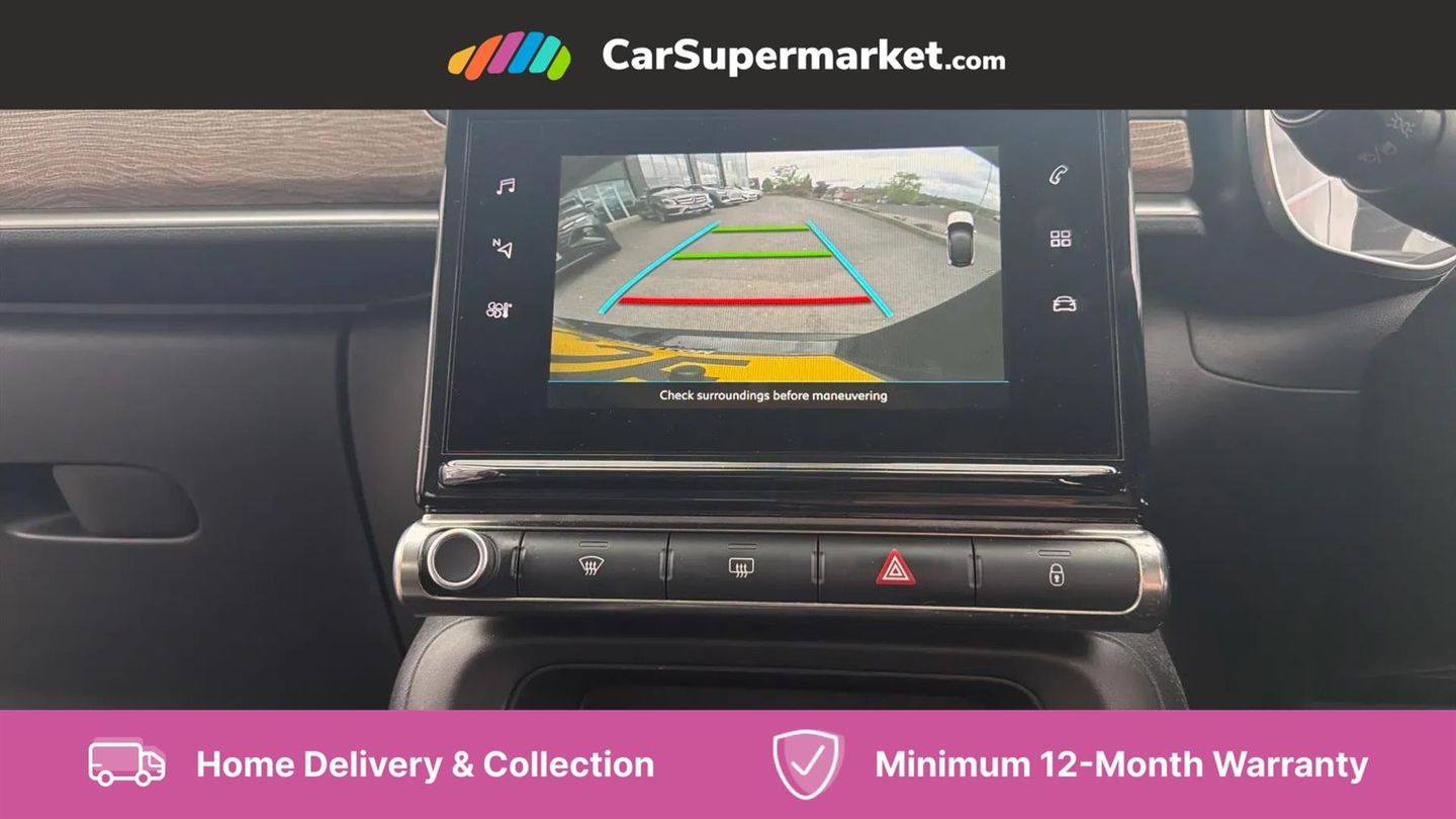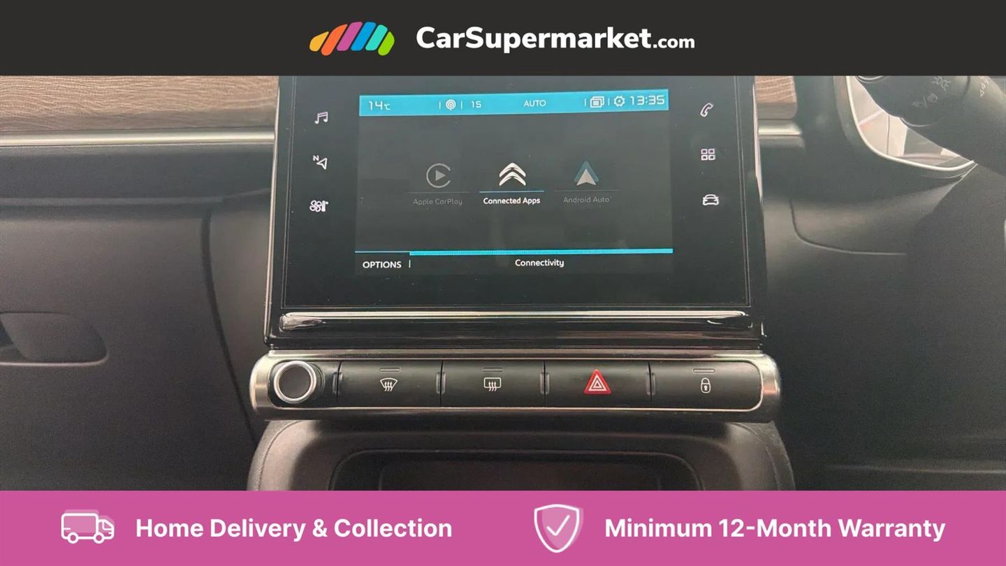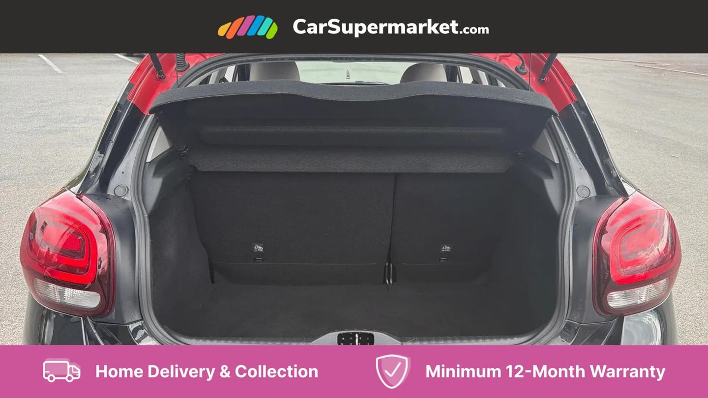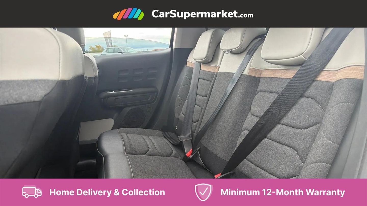 Coffee Break Alert,Cruise control + speed limiter,Exterior temperature display,Multi function trip computer,Rear parking sensors,Reversing camera,Satin chrome surround instrument cluster with white LCD and analogue gauges,Variable assistance power steering,USB connection,3D rear light signature,Automatic activation of hazard warning lights,Body colour bumpers,Body colour door handles,Chrome decoration on front face, under chevrons and around daytime running lights,Citroen illuminated signature in LED headlights and LED daytime running lights,Dark tinted tailgate and rear side windows,Electric folding and heated door mirrors,Electric front windows with one touch/anti-pinch,Electric rear windows with one touch/anti-pinch,Fog lights integrated into front bumper,Gloss black finish B pillar,LED Headlights,Rear windscreen wiper with intermittent mode linked to vehicle speed and automatic activation when reverse gear selected,Roof colour rear view mirror caps,1/3 to 2/3 split folding rear seat,12V socket,Automatic air conditioning,Cloth/leather effect upholstery,Driver and passenger's sun visor with courtesy mirror,Driver's central armrest,Driver's seat height adjustment,Fixing boot light,Front lighting panel with map reading lights,Front seats adjustable with forward back slide and adjustable backrest,Height adjustable front head restraints,Height/reach adjust steering wheel,ISOFIX mounting on outer rear seats with top tether and labels indicating fixing points,Leather trimmed gear lever with leather effect gaiter and overstitching,Map pockets in back of driver and front passenger seats,Parcel shelf,Seatbelt unfastened on the move audible and visual alert for front and rear seats,Storage space under touchscreen with rubber mat,Three rear seats with head restraints,Upholstered armrest in front and rear doors,Safety pack 1 - C3,Safety pack 2 - C3,Shine Technology Pack - C3,Visibility pack with automatic lights - C3,ABS with Electronic brakeforce distribution and Emergency braking assistance,Driver and front passenger seatbelts with pyrotechnic pretensioners and force limiters,Driver's airbag,Electric child locks,ESP with anti skid system,Front passenger airbag,Front passenger airbag deactivation,Front side airbags + front/rear curtain airbags,Hill start assist,Manual parking brake with leather handle and chrome finish button,Mono-tone horn,Three rear three point seatbelts with outer seats have pretensioners and force limiters,Tyre pressure monitoring system,Anti theft alarm,Automatic door and boot locking when moving off with automatic unlocking in case of impact,Central locking with locked indicator and interior one touch lock button,Immobiliser,17" Vector diamond cut alloy wheels,Tyre puncture repair kit