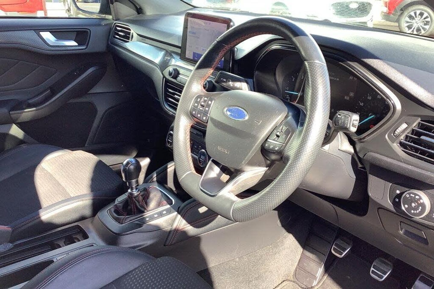 18in Alloy Wheels - 5x2 Spoke - ST-Line Matt Black Machined Black, 4.2in TFT Instrument Cluster Screen, 6-Way Power Adjustment Driver Seat, 8in Touchscreen Colour Display, Airbags - Driver and Front Passenger, Airbags - Front and Rear Side Curtain, Airbags - Front Side Impact, Alloy Finish Pedals, Anti-Lock Braking System - ABS with Electronic Brake Force Distribution - EBD, Automatic Dimming Rear View Mirror, Body Colour Bumpers, Centre Console with Armrest, Courtesy Light - Front and Rear Passengers - Overhead Halogen and Load Compartment, Cruise Control with Speed Limiter, DEATC - Dual-Zone Electronic Automatic Temperature Control, Door Handles - Body Colour, Drivers Seat Lumbar Adjust, Electric Parking Brake, Emergency Brake Warning, Enhanced Electronic Stability Control - ESC with Traction Control - Emergency Brake Assist - EBA - Hill Start Assist - HSA, EPAS - Electric Power Assisted Steering, Ford Easy Fuel - Capless Refuelling System, Ford Eco Mode - Driver Information System, Ford SYNC3 DAB Navigation System, FordPass Connect, Front and Rear Floor Mats with Red Stitching, Front and Rear Seatbelt Minder, Front Passenger Airbag Deactivation Switch, Front Seat - Drivers Manual Height and Fore-Aft Adjustment, Front Seat - Passengers Manual Fore-Aft Adjustment, Front Seats - Sports Style, Front Suspension - Independent with MacPherson Struts and Anti-Roll Bar, Gear Knob - Aluminium, Headlights - Halogen, Headliner - Black Woven, Heated Front Seats, Intelligent Speed Assistance, IPS - Intelligent Protection System, Lane Keeping Aid with Lane Departure Warning, Leather-Trimmed Handbrake, LED Daytime Running Lights, LED Front Fog Lights with Cornering Function, Locking Wheel Nuts, MyKey, Parking Sensor - Front and Rear, Passenger Seat Manual Height and Lumbar Adjust, Polished Twin Tailpipe, Post Collision Braking, Power Folding Door Mirrors with Puddle Lights, Pre-Collision Assist with Autonomous Emergency Braking and Pedestrian-Cyclist Detection, Pre-Collision Assist with Pedestrian Detection, Quickclear Heated Windscreen, Rain Sensitive Windshield Wipers, Rear Centre Headrest, Rear Privacy Glass, Rear Spoiler - Body Colour - Large, Red Brake Calipers, Remote Central Locking and Engine Immobiliser, Seats - ISOFIX Mounting Provision for Child Seats, Selectable Drive Mode, Soft Console Knee Pads with Red Stitching, Spare Wheel - Mini Steel, Sports Tuned Suspension, ST Line Stainless Steel Scuff Plates, Steering Column - Rake and Reach Adjustment, Steering Wheel - 3-Spoke Flat Bottom - Leather Trimmed with Red Stitching, Thatcham Category 1 Alarm, Trip Computer, Tyre Pressure Monitoring System, Unique ST-Line Upper and Lower Grille and Full Bodystyling Kit and ST-Line Wing Badges, Windows - Electrically Operated Front and Rear with One Touch Opening and Closing, Wipers - Standard with 6 Speed Interval Settings