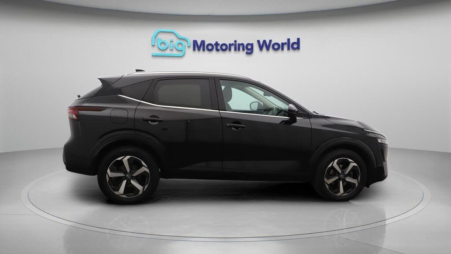 18'' alloy wheels,Apple CarPlay-Our Nissan Qashqai is finished in Black. Specification includes a range of fantastic features including 18'' alloy wheels, Apple CarPlay, Adaptive Cruise Control, Android Auto, Satellite Navigation, Privacy Glass, Rear View Camera, Bluetooth, Blind Spot Assist, Parking Sensors Specification information is supplied by CAPHPI and may vary to the actual car. This data does not form any part of a buying contact. Please check specification prior to purchase in-store. The MOT is valid until October 2026, visit bigmotoringworld.co.uk for more photos, a 360 tour, service history and a free HPI report.Were BIG on peace of mind and this Black Nissan Qashqai has completed our comprehensive 200 point inspection and passed all checks. Its ready for you to drive away with immediate collection in-store. We include a 90-day warranty as standard plus an option to extend for up to 3 years.Reserve this car exclusively for you, safely and securely at bigmotoringworld.co.uk, with a fully refundable £99 deposit. Test drive before you buy, with no commitment, no hassle and a completely haggle free experience. Still searching and want to see thousands more cars? We are BIG on choice with over 8000 cars to choose from.Visit our award winning web site bigmotoringworld.co.uk.Were Big Motoring World and were BIG on what matters to you.