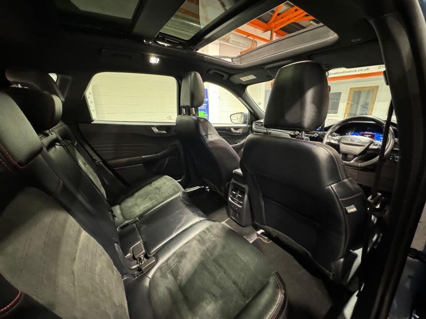 10-Way Power Adjustable Drivers Seat, 12V Power Point in Floor Console, 12v Power Point in Cargo Area, 12v Socket - Voltage Regulator, 19in Alloy Wheels - 5x2 Spoke - High Gloss - Machined, 2nd Row Sliding Seats, 8-Way Manual Passenger Seat including Lumbar Support and Height Adjust, ABS - Anti-Lock Braking System with Enhanced Electronic Stability Control - ESC with Traction Control - Emergency Brake Assist - EBA - Hill Start Assist - Trailer Sway Control, Acoustic Vehicle Alert System - AVAS, Air Conditioning - Electronic Automatic Temperature Control - EATC, Airbag - Driver and Front Passenger Side, Airbag - Front Passenger Deactivation Switch, Airbags - Driver and Front Passenger, Airbags - Front and Rear Side Curtain, Aluminium - Finish Front Scuff Plates with ST-Line Script, Aluminium Foot Pedals - ST-Line Design, Ambient Lighting, Auto Dimming Rear View Mirror, Auto Wipers, Automatic Door Relocking, Automatic Headlights with Auto High-Low Beam, Black Roof Rails, Centre Console with Electronic Parking Brake, Cruise Control with Intelligent Speed Limiter, Driver and Passengers Sun Visor with Illumination, Dual Exhaust Tailpipes with Unique Brushed Stainless Steel Finish, EPAS - Electric Power Assisted Steering, Electric Childproof Locks on Rear Doors, Electric Parking Brake with Auto Hold, Electrical Charging Point in Second Row, Engine Immobiliser - SecuriLock, Exterior Door Handles - Body Coloured, Ford Easy Fuel System, Ford Keyfree System - Keyless Entry with Ford Power Starter Button, Ford SYNC3 DAB Navigation System, Front Lower Grille - Ebony Black Mesh, Front Seats - 2-Way Manual Height Adjust Passive Head Restraints, Front Seats - Drivers and Passengers Seatback Map Pockets, Front Upper Grille - Carbon Black Honeycombe Mesh and High-Gloss Black Surround, Front Windows - Laminated Glass, Front and Rear Bumper - Sporty Body Colour with Rear Ebony High-Gloss Insert, Front and Rear Floor Mats with Red Stitching, Front and Rear Parking Sensors, Full Digital 12.3in Instrument Cluster, Full LED Headlamps, GEO Awareness - Providing Details of ULEZ Within the Satellite Navigation, Gearshift - Automatic - Electronic Rotary Gearshift Dial, Glovebox Lights, Handsfree Power Tailgate, Headlights - Automatic Follow Me Home Lighting, Headlights - Levelling System - Manual, Headlights - Unique Bending, Headliner - Sports Dark, Heated Driver and Passenger Seats, Heated Rear Seats, Heated Steering Wheel, Heated and Power Folding Door Mirrors with Puddle Lights, High-Mounted Brake Light, Kuga Badge, LED Daytime Running Lights, LED Fog Lights - Front, Lane Keeping Aid with Lane Departure Warning, Large Rear Spoiler, Load Compartment - Lights, Load Compartment - Tie Down Hooks, Load Compartment Carpet, Locking Wheel Nuts, Lower Bodyside Moulding - Body Colour, Lower Door Frame Beltline - Black, Mini Overhead Console with Sunglasses Holder Bin, MyKey, Power Door Deadlocks - Double Locking, Power Door Locks, Power Opening Panoramic Roof, Pre-Collision Assist with Autonomous Emergency Braking - Camera Detection, Privacy Glass, Quickclear Heated Windscreen, Rear Duct on B-Pillar, Rear Lights - LED, Rear Seat - 60-40 Split Folding Seats, Rear Seat Centre Head Restraint, Rear Seats - 2-Way Head Restraint Up-Down, Rear Seats - Folding Centre Armrest with Integrated Cup Holder, Rear Seats - Sliding Seat Adjust Tracks - Fore-Aft, Rear View Camera, Red Brake Calipers, Remote Tailgate Release, Removable Package Tray, Rocker Panel Mouldings - Body Colour - ST-Line Design, ST-Line Badge on Left and Right Side Wings, ST-Line Bodystyling Kit, ST-Line Front and Rear Bumper Moulding - Body Colour, Seat Belt - Drivers - Front Passenger and Rear Seat Belt Reminder Alert, Seat Belts - Front 3-Point Seatbelts with Load Limiter, Seat Belts - Front Height Adjustable, Seat Belts - Rear Retractable Rear Belt - 3-Point All Positions, Seats - ISOFIX Mounting Provision for Child Seats - Outer Seats Only, Selectable Drive Modes, Single Rear Fog Light, Sports Seat
