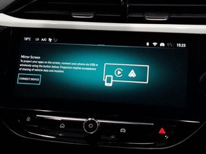 180 degree panoramic rear view camera, 2D/3D street level mapping, 7 inch digital instrument cluster display, Auto tele unit 3S vehicle communication system, Cruise control with intelligent speed limiter, Driver drowsiness alert system, Enhanced traffic sign recognition, Front and rear parking sensors, Front camera system, Lane departure warning, Lane keep assist, Smartphone projection, Wireless charger, Wireless Apple CarPlay/Android Auto, Voice recognition, Vauxhall connect box, Sport drive mode selector, Speed sign recognition, DAB Digital radio, Rear USB port, Automatic headlamp levelling, Automatic headlight control system, LED tail lamp, LED front fog lights, LED daytime running lights, Intelli-Lux Matrix LED Headlights, LED ambient lighting, LED boot light, Winter pack - Corsa, ISOFIX child seat mountings incorporating top tether anchor points located on second row rear seats, Hill hold and start system, Keyless entry and start, 17" Diamond-cut hi-gloss black alloy wheels