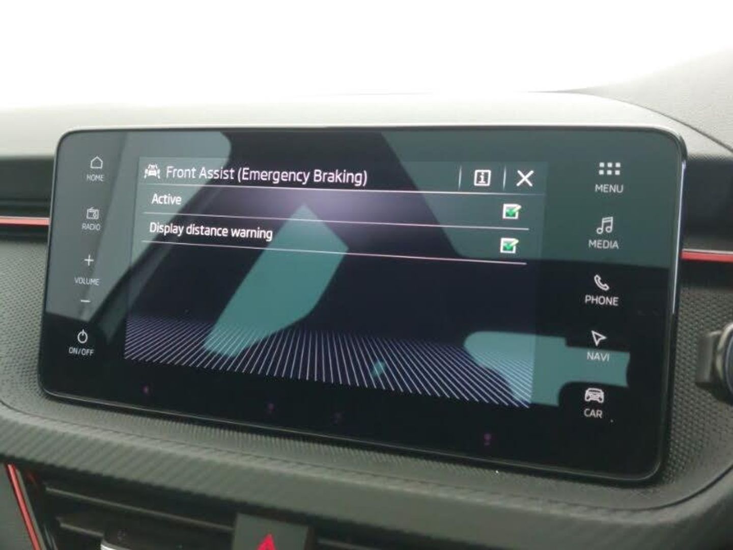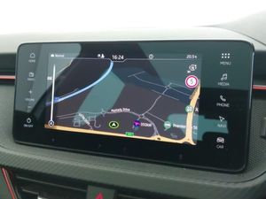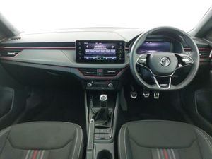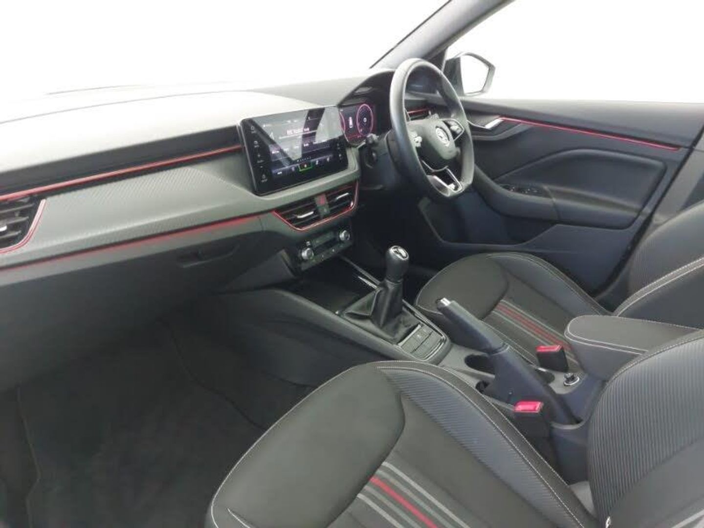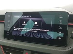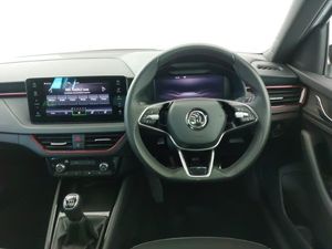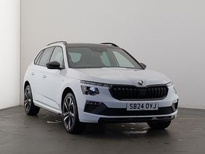 9.2" Skoda navigation display, Rear parking sensors, Front assist system, Speed limiter, Virtual cockpit with 10.25" display, Wireless smartlink, Voice control system, Traffic sign recognition, DAB Digital radio, 8 Speakers, 4 USB C ports, Auto dimming rear view mirror, Automatic headlight control with coming home and leaving home feature, Automatic headlights, Front and rear electric windows, LED daytime running lights, LED high beam, LED low beam, LED third brake light, Panoramic sunroof with black roof rails, Privacy glass, Ambient lighting in white/red, Dual zone climate control, Front centre armrest, ISOFIX on front passenger seat, Isofix preparation for back seats, Leather gearknob and handbrake lever, Monte Carlo cloth upholstery, Top tether for front passenger seat, Light and view plus package - Kamiq, Airbags - driver and front passenger, Extended and predictive pedestrian/cyclist protection, Front side airbags with curtain airbags, Hill hold control, Manual leather parking brake, Electronic engine immobilizer, Anti-theft alarm system with interior monitoring, backup horn, towing protection and remote central locking with SAFE system, 18" Ursa black diamond cut alloy wheels