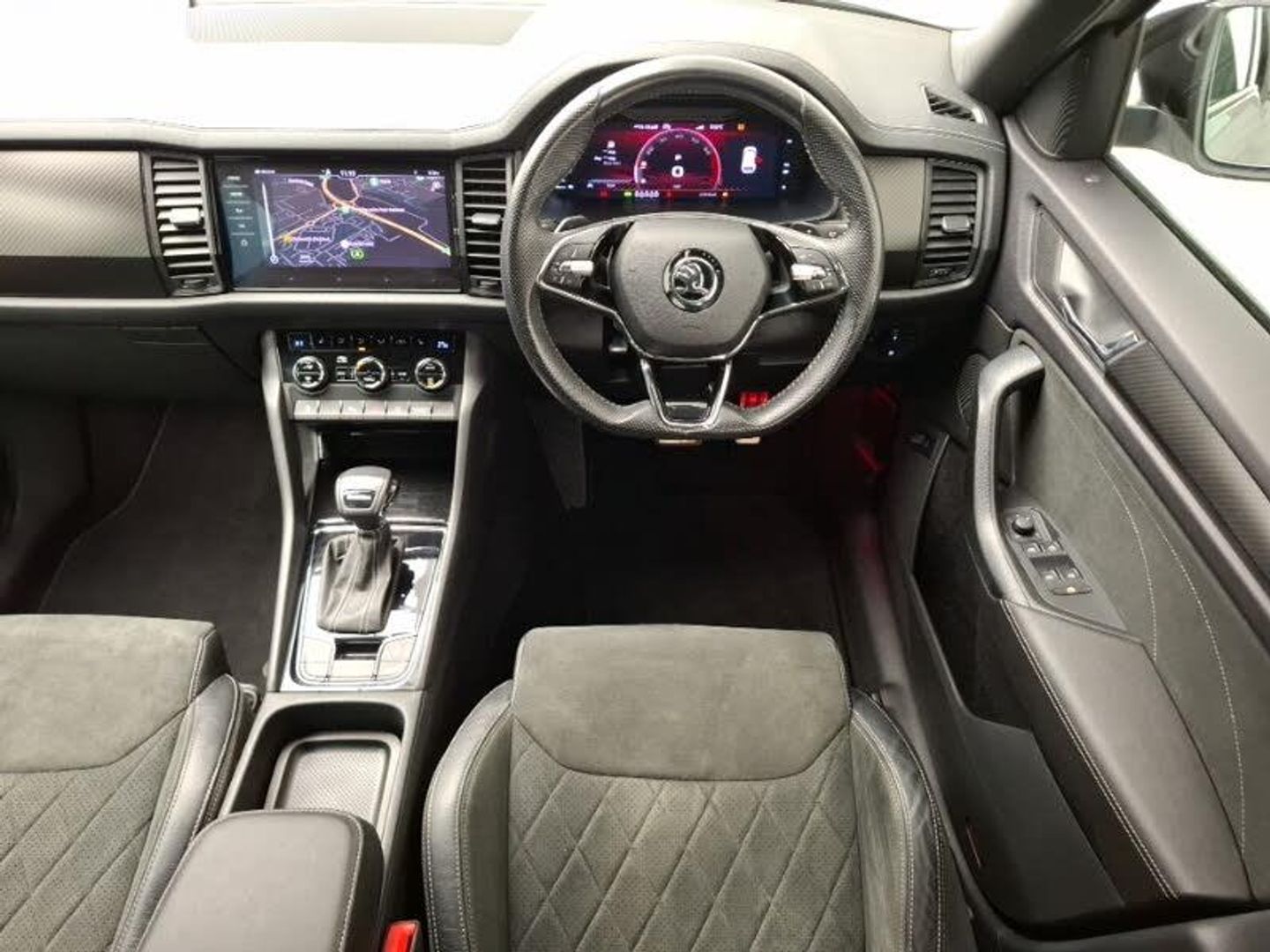 Android Auto, Apple CarPlay, LED daytime running lights, Speed limiter, Bluetooth system, Rear view camera, Smartlink wireless for apple carplay and wired for android auto, Wireless charging, Columbus satellite navigation with 9.2" touchscreen, integrated Wi-Fi, web radio, 8 Speakers, DAB Digital radio, Electric adjustable/heated/folding door mirrors, driver side auto dimming with boarding sports and memory function, Full LED matrix headlights with AFS (adaptive front light system), cornering function and AWL (all weather lighting system), LED daytime running lights, Rear LED lights (high functionality) with welcome effect and dynamic indicators, Sports front and rear bumpers including lower rear chrome strip, Isofix child seat fittings in outer rear seats with top tether, LED Interior light pack - Kodiaq, Keyless entry and start system (KESSY), Immobiliser