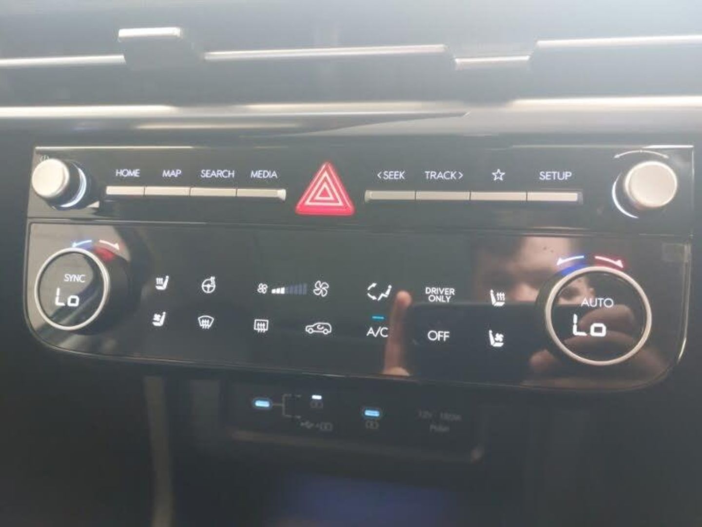 Wireless Apple CarPlay/Android Auto, Wireless phone charging pad, Voice recognition, Surround view monitor, Smart power tailgate, Rear camera and guidance parking system, Parking collision avoidance assist (PCA), Over the air updates(OTA), Lane keep assist, Lane follow assist, Intelligent speed limit assist, Front, rear and side parking distance warning, Front and rear parking sensors, Forward Collision Avoidance Assist Junction Turning (FCAJX), Forward Collision Avoidance Assist (FCA) - Car, Pedestrian and Cycle, Emergency stop signalling system, Cruise control - smart adaptive speed control with stop and go function, Blind spot view monitor, Bluetooth system, 12.3" widescreen navigation with bluelink and mapcare, 12.3" LCD display with driver's supervision instrument cluster, Krell premium audio system with 8 speakers and subwoofer, DAB Digital radio, Auto dimming rear view mirror, Automatic defog system, Automatic headlights with dusk sensor, Automatic windscreen wipers with rain sensor, Matrix LED headlights, Positioning Lights - LED, Privacy glass - Rear windows and tailgate, Ventilated front seats, TUCSON branded metal door scuff plate, Touch sensitive climate controls with temperature dials, Three zone climate control, ISOFIX child seat anchorage points attached on outer rear seats, Leather upholstery, Heated steering wheel, Heated rear seats, Heated front seats, Tyre pressure monitoring system with individual tyre pressure display - TPMS, Hill start assist control (HAC), Electric parking brake, Brake assist function, Speed sensitive auto door locking, Smart key with keyless entry and engine start/stop button, 19" Alloy wheels