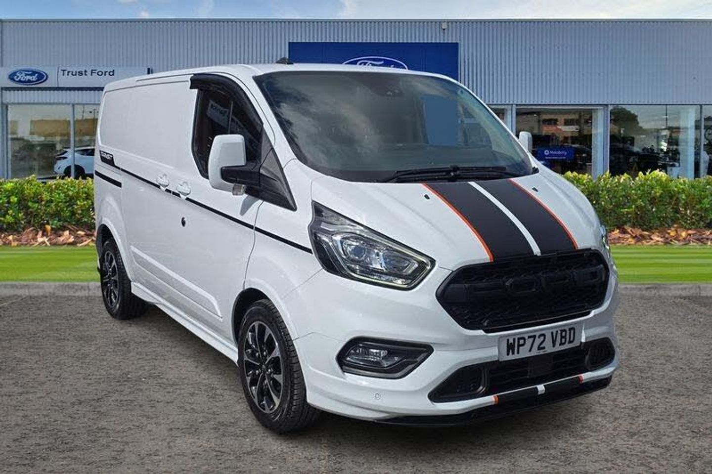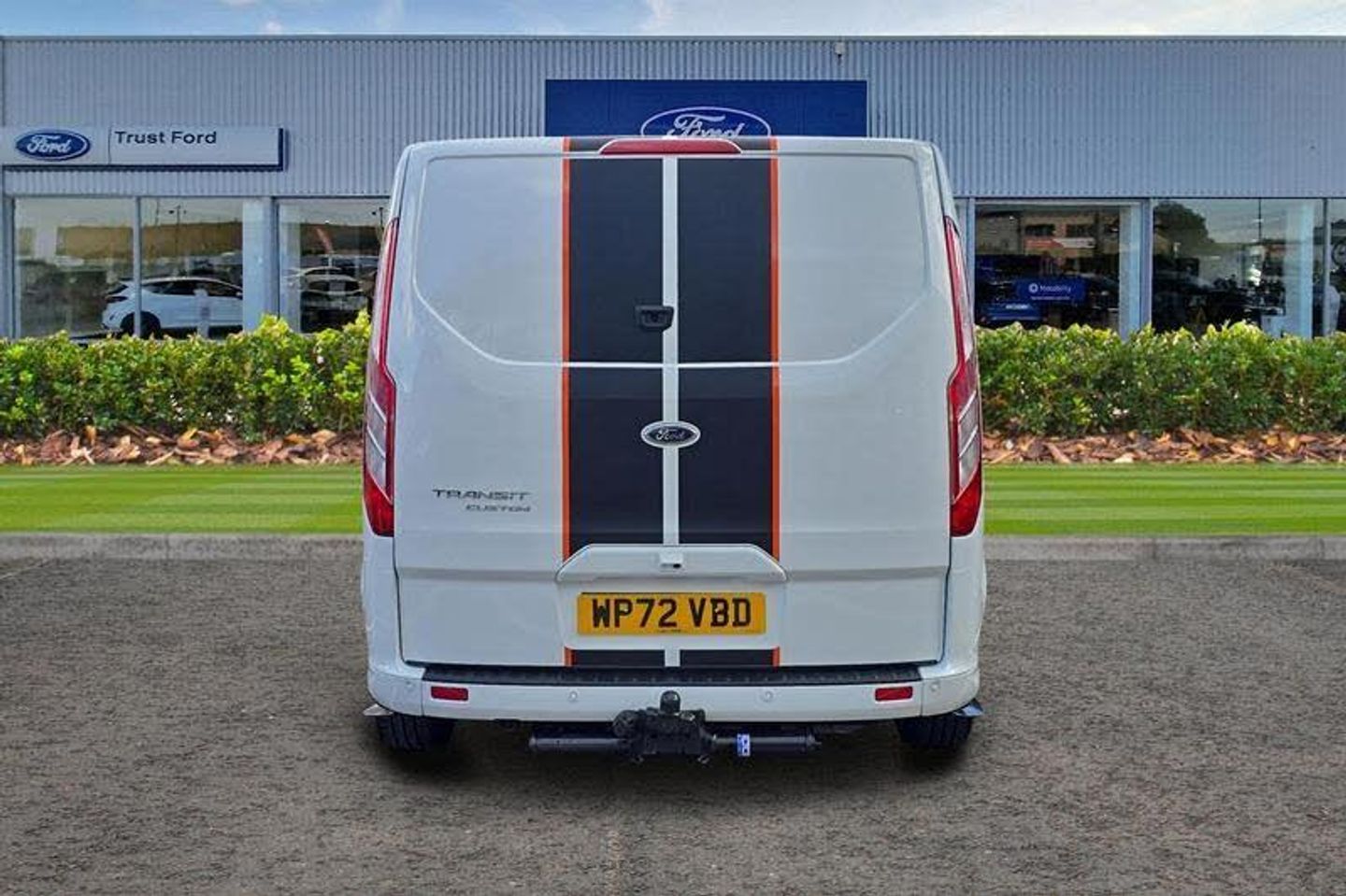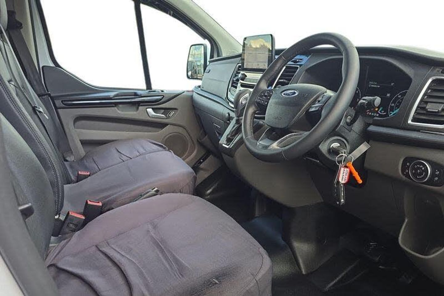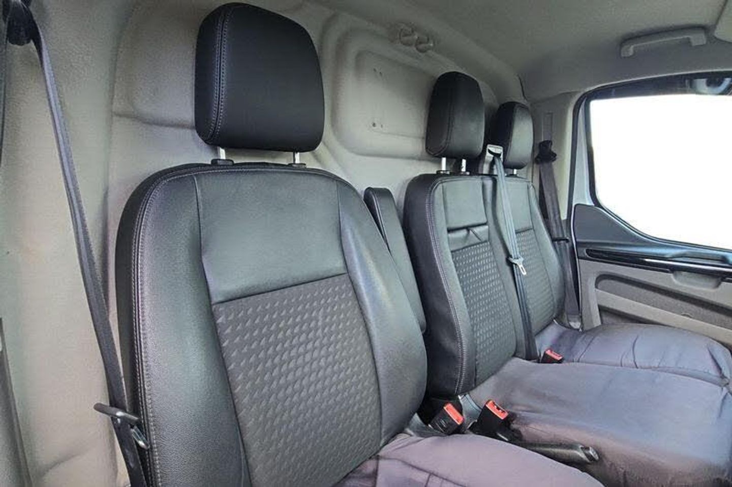 REAR VIEW CAMERA shows whats behind you on a screen in front of you on the dashboard - the system activates when you select reverse gear and using virtual guidelines can help you park, QUICKCLEAR HEATED WINDSCREEN uses ultra thin filaments that superheat to de-ice and de-mist your windscreen as well as help de-freeze the wipers and works in seconds, FRONT AND REAR PARKING SENSORS are designed to help you park more confidently helping you judge the distance between your vehicle and obstacles both in front and behind you, CRUISE CONTROL provides extra comfort on longer journeys allowing you take your foot off the acceleration whilst just focusing on steering the vehicle, HILL START ASSIST temporarily stops you rolling backwards or forwards when making a hill start - maintaining pressure to the braking system for an extra 25 seconds giving you more time and control as you move your foot from the brake to the accelerator, BLUETOOTH HANDS FREE WITH VOICE CONTROL allows you to operate both your mobile phone and Ford audio system - controlling several functions using a set list of simple voice commands, HEATED FRONT SEATS Provide comfort in any weather, Auto start/stop system, Thatcham category 1 alarm with 2nd remote key, Front manual air conditioning, Electric front windows with one touch facility for driver and front passenger, Automatic lights and wipers, Driver and passenger sunvisors with illuminated vanity mirrors, Body coloured body side mouldings, Anti-lock brake system, Remote central locking, Driver's airbag, PAS, Recirculation heater, Headlamp levelling, Load compartment interior light, Visibility Pack Premium - Transit Custom, Auto locking on drive-away, Power door dead locks, Rear mudflaps, Passenger seatbelt height adj, Electronic Stability Programme, Trip computer, Courtesy light, 3 point seatbelts for all seats, Roll stability control, Ford Eco mode, Extra heavy duty alternator, Height adjustable drivers seatbelt mount, Easy fuel capless refuelling system, Vehicle maintenance monitor, Coloured grille with 3 base bars, Full wheelcovers, Front outer passenger airbag with deactivation switch, Side wind mitigation, Map reading lights, Reach and rake adjustable steering column, Sport van body styling kit, Automatic headlamps with follow me home, 180 Degree rear cargo check arms, Sunglasses roof storage, Body coloured lift/decklid exterior handles, Header mounted package tray, Body coloured door mirrors, Intermittent front wash/wipe, Tool kit, Audio controls mounted on steering wheel, Passenger underseat storage box, Height adjustable front headrests, Tyre pressure monitor, Configurable Unlocking, Body coloured rear bumpers, Auto relocking, Assist handle, Power point plug 400W - Level 2, Floorwell lights, 2 12v sockets, Illuminated footwell, Diesel particulate filter, Part leather upholstery, Low roof line, 80 litre fuel tank, Mechanical parking brake, Lockable glove box, Selectable drive mode, Complete rear trim board, Tutone painted plastic front bumper, Leather gearshift knob, Mini overhead console, Accent colour exterior mirror finish, Body colour door handles, Hood accent stripe, Seatbelt remainder for driver and passenger, Kerbside side load doors, Embedded modem, Molded load floor liner, Emergency brake light flashing, Dual note electric horn, Standard duty suspension, Lane departure warning contains electric windshield defroster, Automatic headlamp control Off and Mid series cluster, Door open tyre carrier drop, Wide bodyside grey mouldings, Rear door edge warn reflectors, 2 Interior grab handles, Partial rubber inside floor cover, Colour keyed exterior pack 4 - transist custom, Interior trim accent pack C - Transit custom, Less rear seat pack - Transit Custom, Inclination anti-Theft sensor, Speed dependent power lock group, Front splash guards/Mud flaps, 17 alloy wheels style 2 contains 17 mini space wheel with locking wheel lug nu, Side rear door trim panel - Level 1, Partial molded headliner, Locking wheel l