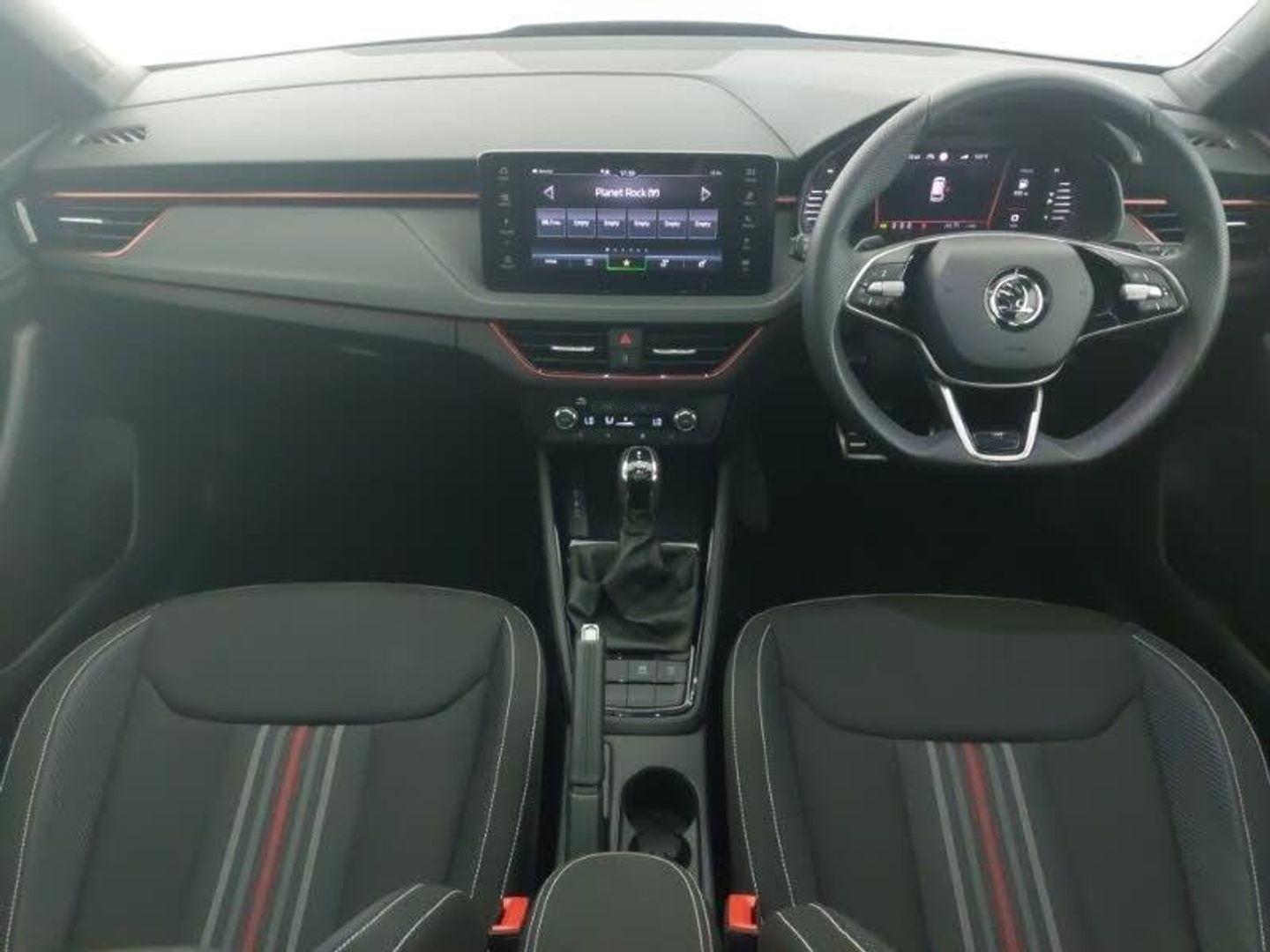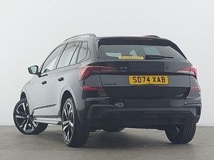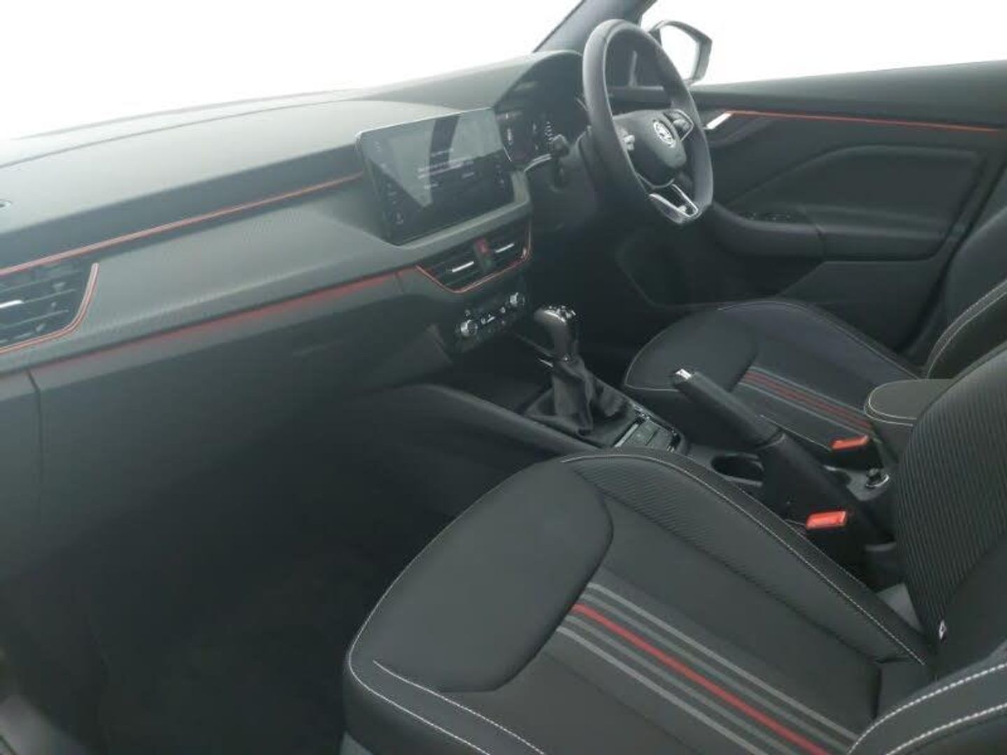 Panoramic sunroof with black roof rails, Rear view camera, Wireless smartlink, Android Auto, Apple CarPlay, Virtual cockpit with 10.25" display, Cruise control, 9.2" Skoda navigation display, Front assist system, Rear parking sensors, Automatic headlight control with coming home and leaving home feature, Auto dimming rear view mirror, Privacy glass, LED daytime running lights, LED high beam, Monte Carlo cloth upholstery, Light and view plus package - Kamiq, Ambient lighting in white/red, 4 USB C ports, Advanced driver attention and drowsiness monitor, Traffic sign recognition, Speed limiter, Sports seats, ISOFIX on front passenger seat, 18" Ursa black diamond cut alloy wheels