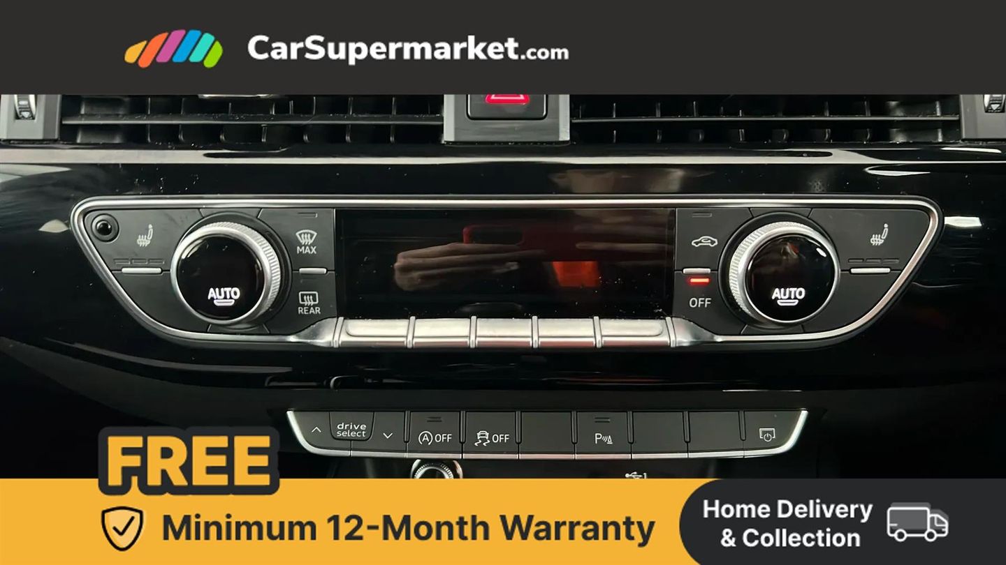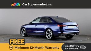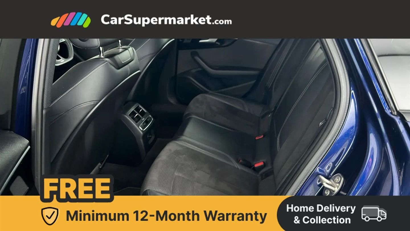 Audi connect safety and service (e-call),Audi drive select,Audi parking system plus with front and rear sensors,Audi smartphone interface,Audi virtual cockpit,Automatic start-stop system with coasting functionality and efficiency programme,Bluetooth interface,Electric boot lid release,Electromechanical power steering,MMI Navigation plus with MMI touch includes 10.1" high resolution colour MMI display, 3D map,Rear view camera,Voice control system,54 litre fuel tank,Sports suspension lowered by 23mm,2 USB charging ports,8 passive loudspeakers,DAB digital radio reception,Auto dimming rear view mirror,Body colour door handles,Body colour front spoiler lip,Body colour side sill trim,Electrically folding auto dimming/adjustable/heated door mirrors with LED side indicators and kerb view function for passenger side,Grained matt black side air inlets with matt aluminium silver inlay,High beam assistant,LED headlights with LED rear lights + dynamic rear indicators + headlight adjustment and high beam, turning light + LED daytime running lights,Matt aluminium silver tailpipe trim,Privacy glass,Rain and light sensors,S Line badges on the front wings,S line front and rear bumpers with side skirts,S Line rear diffuser in matt titanium black with trim strip in matt aluminium silver,Windscreen with acoustic glazing,3 spoke flat bottomed high multi-function leather sport steering wheel,4 way electric lumbar support for driver and front passenger,40/20/40 split folding 3 rear seat bench in 3 parts with rear centre armrest,Black cloth headlining,Black perforated leather gearknob,Contrast stitching on seats, steering wheel and gear lever gaiter,Deluxe 3 zone electronic climate control,Door sill trims with aluminium inlay,Front and rear head restraints,Front centre armrest,Heated front seats,Illuminated door sill trims with S logo,ISOFIX child seat mounting and top tether,Manual seat adjustment,Stainless steel pedals and foot rest,LED Interior light pack - A4/S4,Titanium black styling pack - A4 Saloon,3 rear seatbelts,6 airbags - Driver, front passenger, curtain and side windows,Electronic Stabilisation Control (ESC) including ABS, ASR and EDL,Hill hold assist,Multi collision brake assist,Pop-up bonnet for pedestrian protection,Pre sense city,Seatbelt monitoring,Warning triangle and first aid kit,Anti theft alarm,Anti theft wheel bolts,Keyless Go,Piano black finish inlay,19" 5 arm rotor design alloy wheels titanium matt look,Tool kit,Tyre repair kit