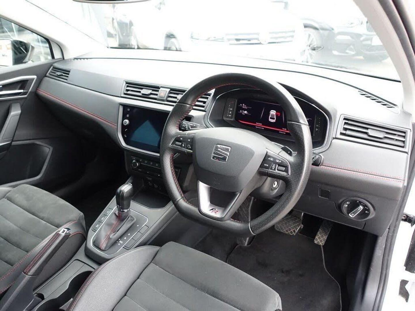 18in Alloy Wheels - Performance - Bi-Coloured Machined, 6 Litre Glovebox, Active Front Head Restraints, Alarm - Perimeter and Interior Monitoring with Back-up Horn and Tow-Away Protection, Anti-Lock Braking System - ABS, Anti-Theft Roof Antenna, Auto Dimming Rear View Mirror, Auto-Headlights, Automatic Warning Lights, Bluetooth Audio Streaming with Handsfree System, Body-Coloured Door Handles, Brilliant Black Painted Door Mirrors, Child Locks on Rear Doors, Coming Home - Leaving Home Headlight Function, Cruise Control, DAB- Digital Audio Broadcasting, Dark Tinted Rear Windows, Digital Clock, Digital Cockpit, Dimming Interior Rear View Mirror, Driver and Front Passenger Airbags, Driver and Passengers Sunvisors, Driver Sunvisor with Mirror and Card Holder, Dual Zone Climate Control, Dust and Pollen Filter, Electric Windows - Front with One-Touch and Anti-Squeeze, Electrically Adjustable Folding and Heated Door Mirrors, Electro-Mechanical Power Steering - Speed-Sensitive, Electronic Engine Immobiliser, Emergency Tyre Repair Kit, ESC - Electronic Stability Control with EBA - Emergency Brake Assist, Exclusive Flat-Bottomed FR Steering Wheel and Interior Details, Exclusive FR Rear Bumpers, Exhaust Pipe - Twin, FM-AM Radio, Front and Rear Seatbelt Reminders, Front Assist, Front Courtesy Light with Front and Rear Reading Lights, Front Fog Lights with Cornering Function, Front Passenger Airbag De-Activation, Front Side and Curtain Airbags, Full LED Headlights, Full Link Smartphone Integration, Gearshift Indicator, Height Adjustable Front Passenger Seat, Height and Reach Adjustable Steering Wheel, Height-Adjustable Drivers Seat, Hill Hold Control, Ice Metal Side Door Panels, Illuminated Boot, Instrument Lighting with Brightness Control, ISOFIX Points in Outer Rear Seats with Top Tether Anchorage Points, Leather Handbrake, Leather Steering Wheel and Gear Knob, Leatherette Dashboard, LED Daytime Running Lights, Lights Left On Warning Buzzer, Locking Wheel Bolts, Low Fuel Warning Light, Media System Plus, Multi Coloured Ambient Lighting, Multi-Collision Braking System, Navigation System, Nevada White, Outside Temperature Gauge, Radiator Grille Frame in Chrome, Rain Sensing Wipers, Rear Fog Light, Rear Parking Sensors, Remote Central Locking with Deadlocks, RPM Counter, SEAT Drive Profile, SEAT Logo Tailgate Release, Seats - Sports FR, Six Speakers, Split Folding Rear Seats - 60-40, Sports Suspension, Steering Wheel-Mounted Gearshift Paddles, Third Rear Headrest, Three-Point Seatbelts on All Rear Seats, Tiredness Recognition System, Trip Computer, Two Cup Holders in Cabin, Two Folding Remote Keys with Remote Window Opening-Closing Function, Two Height-Adjustable Front and Rear Headrests, Tyre Pressure Monitoring System, USB Media Cable, Visible VIN in Windscreen, White