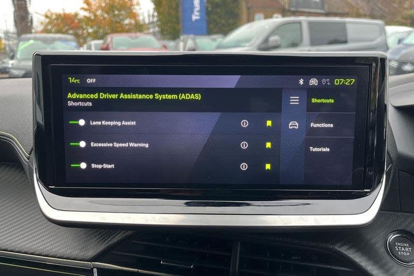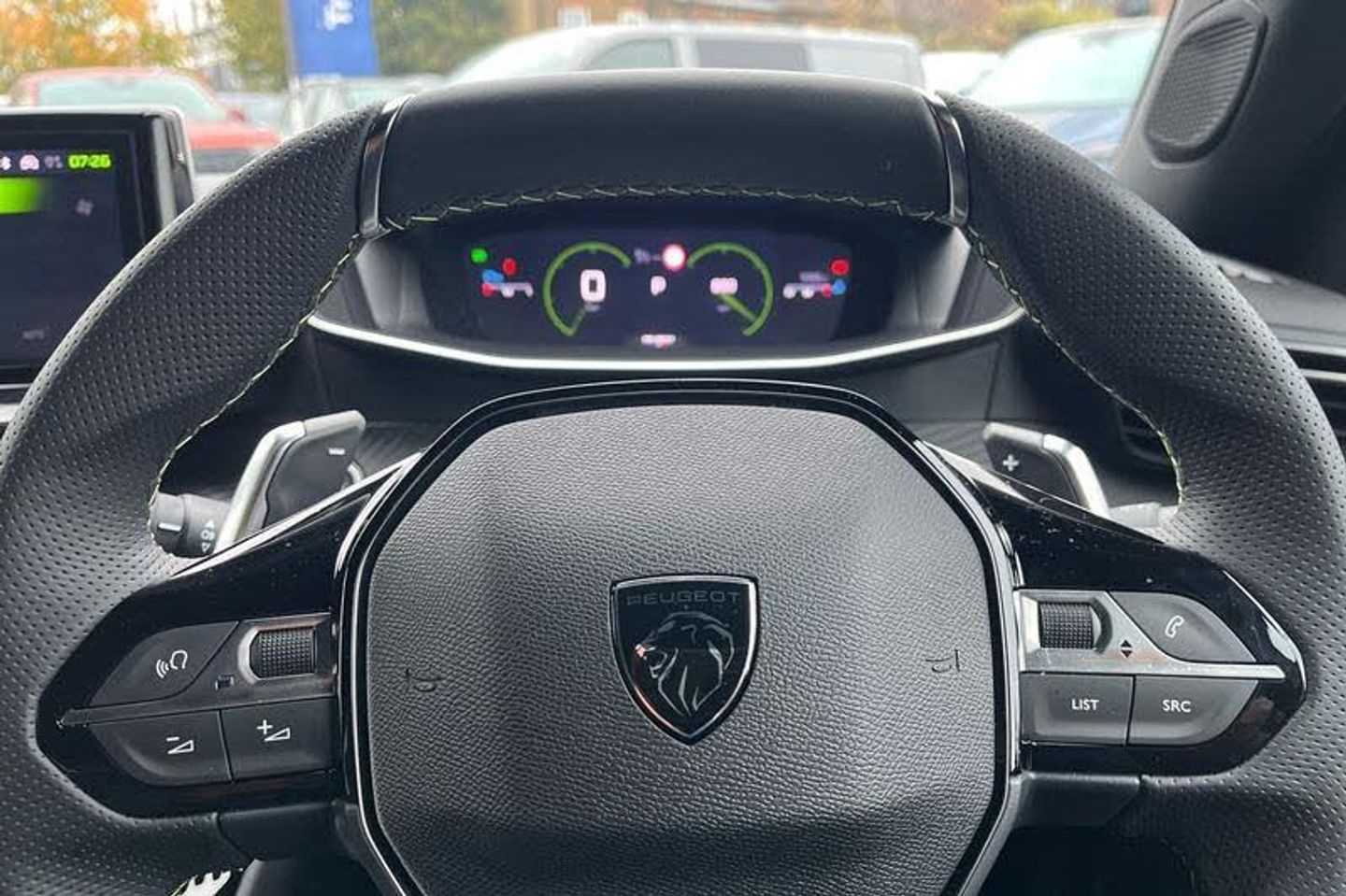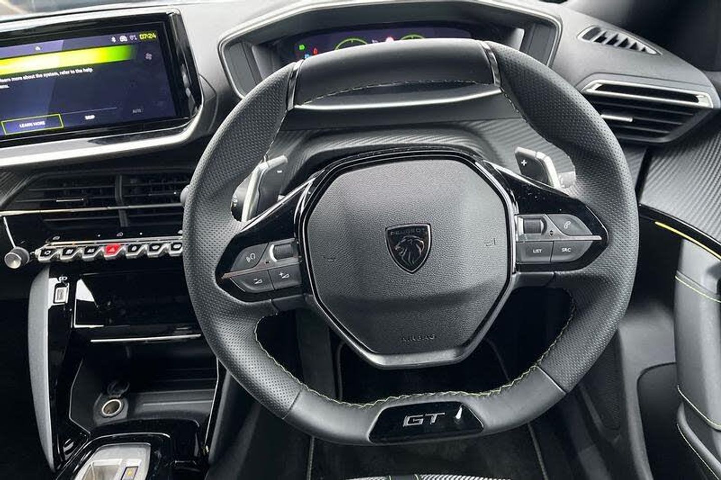 Bluetooth telephone facility, Driver attention warning, E-call, Exterior temperature indicator with ice warning, Front and rear parking sensors, Multi function trip computer, PEUGEOT i-Cockpit with 10 high definition capacitive touchscreen, PEUGEOT i-Cockpit with compact steering wheel, PEUGEOT i-Cockpit with configurable 3D headup instrument panel, PEUGEOT SOS and assistance, Speed limit recognition and recommendation, Wireless mirror screen with mirror link, apple carplay and android auto, 2 X Rear number plate lights, Aluminium door sill scuff plates with peugeot lettering, Automatic hazard light activation upon heavy brake application, Black diamond roof, Black front wing trim with gloss black detail and GT badging, Body coloured exterior door handles, Dark tinted rear side and tailgate windows, Diamond black mirror shells, Diamond black rear roof spoiler, Electric, heated, and power folding door mirrors, Electrochrome rear view mirror, Front bumper - Meteor grey lower trim, Full LED headlights with smartbeam assist with auto height adjustment, Gloss black finish on B pillar, Gloss black rear cluster connecting strip, Gloss black roof bars, GT model designation badging on tailgate, Headlights left on audible warning, LED side indicator lights integrated into door mirrors, LED third brake light, Matt black finish side window surrounds (weather strips), Model designation badges front and rear, One touch electric front/rear windows with pinch protection, Radiator grille - body coloured vertical chequered grille, Radiator grille - gloss black top edge trim, Rear bumper with gloss black finish, Rear full LED 3D peugeot signature lights with daylight function, Rear reversing lights, Rear side wing doors, Rear windscreen wiper triggered automatically in reverse gear, Reinforcement of the front bumper, Tailgate with heated rear windscreen and wiper blade, Twin chromed exhaust pipes, Wheel arch extensions, 1/3 to 2/3 split folding rear seats, 12V socket, 3 seat bench in 2nd row, 8 Colour personalisable ambient lighting, Automatic air conditioning with pollen and active carbon filter, Central front armrest with storage compartment, Driver and front passenger sport seats, Electric power steering with reach and rake adjustable steering column, Front and rear carpet mats in black, Front LED interior light with 2 reading spotlights and push button rear interior light with timer, Front passenger seat manual adjustment - height, longitudinal and back rest angle, High centre console with 2 cup holders, ISOFIX child seat mounting points on passenger seat, Low centre console, Map pockets on front seat backs, Mistral full-grain perforated leather steering wheel with Adamite Green stitch detail and satin chrome 'GT' emblem, Multifunction steering wheel, Piano keys: Gloss black and chrome toggle switches to access main functions of the vehicle and touchscreen functions, Roof lining - Mistral black, Seatbelt unfastened on the move audible and visual alert for front and rear seats, Single front passenger seat, Two position modular boot floor, 2x 2nd row ISOFIX child seat mountings, ABS (Anti-lock Braking System) with EBD (Electronic Brakeforce Distribution) and EBA (Emergency Braking Assistance), Active safety brake with night function/cyclists/pedestrians, Adaptive driver and front passenger airbags with passenger airbag deactivation function, Advanced emergency braking system (AEB) with enhanced camera with the high beam and radar, Child locking functionality on rear doors, Driver/front passenger side airbags, Electric parking brake, ESP (Electronic Stability Program) + Hill Start Assist, Front and rear curtain airbags, Front and rear disc brakes, Front and rear three-point retractable seatbelts, with force limiters, Front optimised safety headrests and rear retractable headrests (x3), height adjustable, Tyre pressure sensor