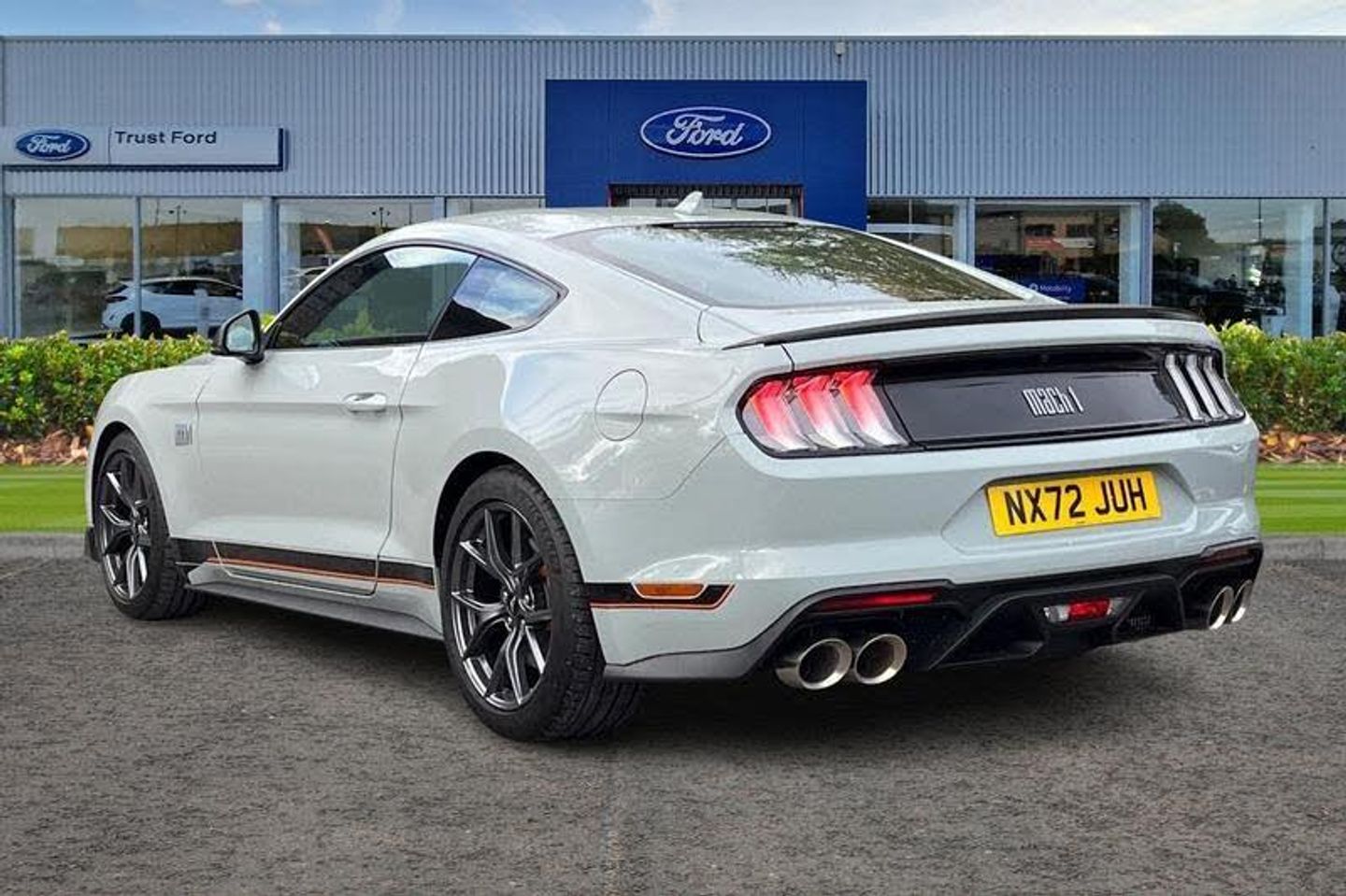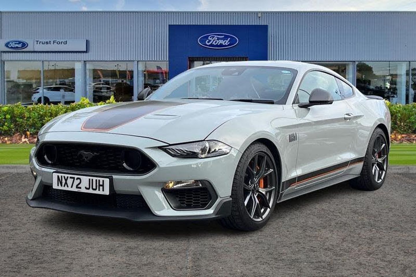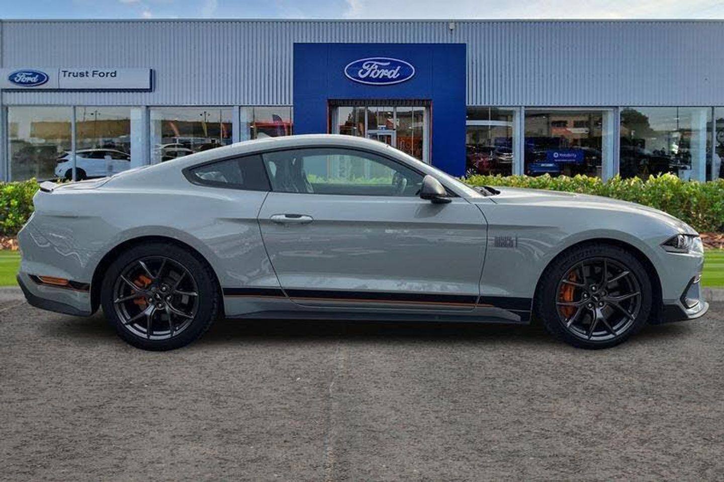 19in Alloy Wheels - 5-Spoke - Magnetic Finish with Michelin Pilot Sport 4 Tyres, ABS - Anti-lock Braking System, Air Conditioning - Dual Zone Electronic Automatic Temperature Control, Air Intake Filter for Pollen-Odours, Air Purifier Sensor, Airbags - Advanced Driver and Front Passenger Airbags - Side Impact Airbags - Drivers Knee Airbag - Active Seat Belts and Glovebox, B&O Premium Audio System and Ford SYNC 3 Navigation, Badging - Mach 1 Design - Unique Mach 1 Logo Wing Badge and Decklid Applique, Black Moulded Beltline and Door Line Ornamentation, Centre Console with Partial Leather and Contrast Stitching, Climate Controlled Seats, Courtesy Lights - Premium Ambient Lighting with Memory - Map-Reading Lights - Illuminated Entry - Courtesy Delay - Theatre Dimming, Cruise Control, Cup Holders - Front x2, Door Mirror Side Indicators, Door Mirrors - Low Gloss Magnetic, Door Trim Panel - Luxury Grain Vinyl Detail with Contrast Stitching, EBA - Emergency Brake Assist, EPAS - Electric Power Assisted Steering, Electric Rear Window Demister, Electronic Line Lock - Track Use Only, Electronic Locking Centre Console, Electronic Stability Control - ESC with Full Speed Engine-Brake Traction Control - TCS, Enhanced Brembo 6-Piston Front Brake Calipers with Large Discs and Low-Steel Linings, Exhaust - Quad Chrome Exhaust Pipe with Active Exhaust System - Mach 1 Design, Floor Mats - Carpet - Front, Foot Pedals - Unique Metallic Design, Ford Easy-Fuel Capless Refuelling System, Ford Keyfree System - Keyless Entry with Ford Power Starter Button, FordPass Connect Embedded Modem, Front Seat Adjuster - 6-Way Power Drivers Seat, Front Seat Adjuster - 6-Way Power Passenger Seat, Front Seats - Sports Style, Full TFT-LCD Instrument Cluster, Gearshift Knob - Leather-Trimmed, Handbrake Grip - Leather-Trimmed, Hood Scoop Vents, Instrument Panel - Mach 1 Design with Dark Spindrift Panel Applique with Unique Mach 1 Badge and Contrast Stitching, LED Headlights with Daytime Running Lights, Lane Keeping Aid with Lane Keeping Assist, Locking Wheel Nuts, Locks - Remote Central with Double Locking, Lower Grille - Mach 1 Design, MagneRide Adaptive Suspension System, Mini Overhead Console, Performance Spoiler - Mach 1 Design, Power-Folding Door Mirrors with Mustang Logo Projection Puddle Lamps, Pre-Collision Assist, Rain Sensing Wipers, Rear Lights - LED, Rear Seats - ISOFIX Fittings, Rear Seats - Split Folding, Rear View Camera, Rear View Mirror - Electrochromic, Scuff Plates - Illuminated with Mach 1 Logo, Seat Back Map Pocket - Driver, Selectable Drive Modes, Steering Wheel - Leather-Trimmed and Heated with Mustang Logo, Sunvisors - Driver and Passenger - Illuminated, Thatcham Category 1 Alarm, Track Apps - Accelerometer Technology - Track Use Only, Tyre Mobility Kit, Tyre Pressure Monitoring System, Unique Front Splitter - Belly Pan and Rear Defuser, Unique Mach 1 Front Grille with Low Gloss Magnetic Pony Badge, Windows - Power Front Windows with Global Opening