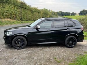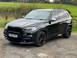 RS MOTOR SALES ARE VERY PLEASED TO OFFER THIS EXCELLENT EXAMPLE WITH HUGE SPEC INCLUDING PAN ROOF AND OVER £9300 OF FACTORY UPGRADED EXTRAS. PRESENTED IN BLACK SAPPHIRE WITH HEATED IVORY LEATHER AND GLOSS BLACK FINISHERS LOOKS AND DRIVES EXCELLENT. LOW RATE FINANCE AND PART EXCHANGE AVAILABLE. ANY INSPECTION AA/RAC WELLCOME. VEHICLE JUST ARRIVED MORE PICS TO FOLLOW. This 2014 BMW X5 M50d presents a compelling blend of performance and luxury, boasting a powerful 3.0L diesel engine and a sophisticated four wheel drive system. As a Euro 6 compliant vehicle, it meets stringent emission standards. This X5 is equipped with the convenient Comfort Access System for keyless entry, a striking Panoramic Glass Sunroof that opens for an airy cabin experience, and Enhanced Bluetooth Telephone Preparation with a USB Audio Interface for seamless connectivity. Audiophiles will appreciate the premium Harman Kardon speaker system, and the Universal Remote Control adds an extra layer of convenience. With a substantial towing weight of 3500 kg, this X5 is as practical as it is refined. The performance of this X5 M50d is truly exceptional, achieving 0-60mph in a swift 5.3 seconds. This rapid acceleration, combined with its advanced four wheel drive, signifies a superior driving experience compared to many other vehicles in its class. The combination of its potent diesel engine, luxurious features, and impressive towing capability makes this 2014 BMW X5 M50d a standout choice for those seeking a versatile and high performing SUV.