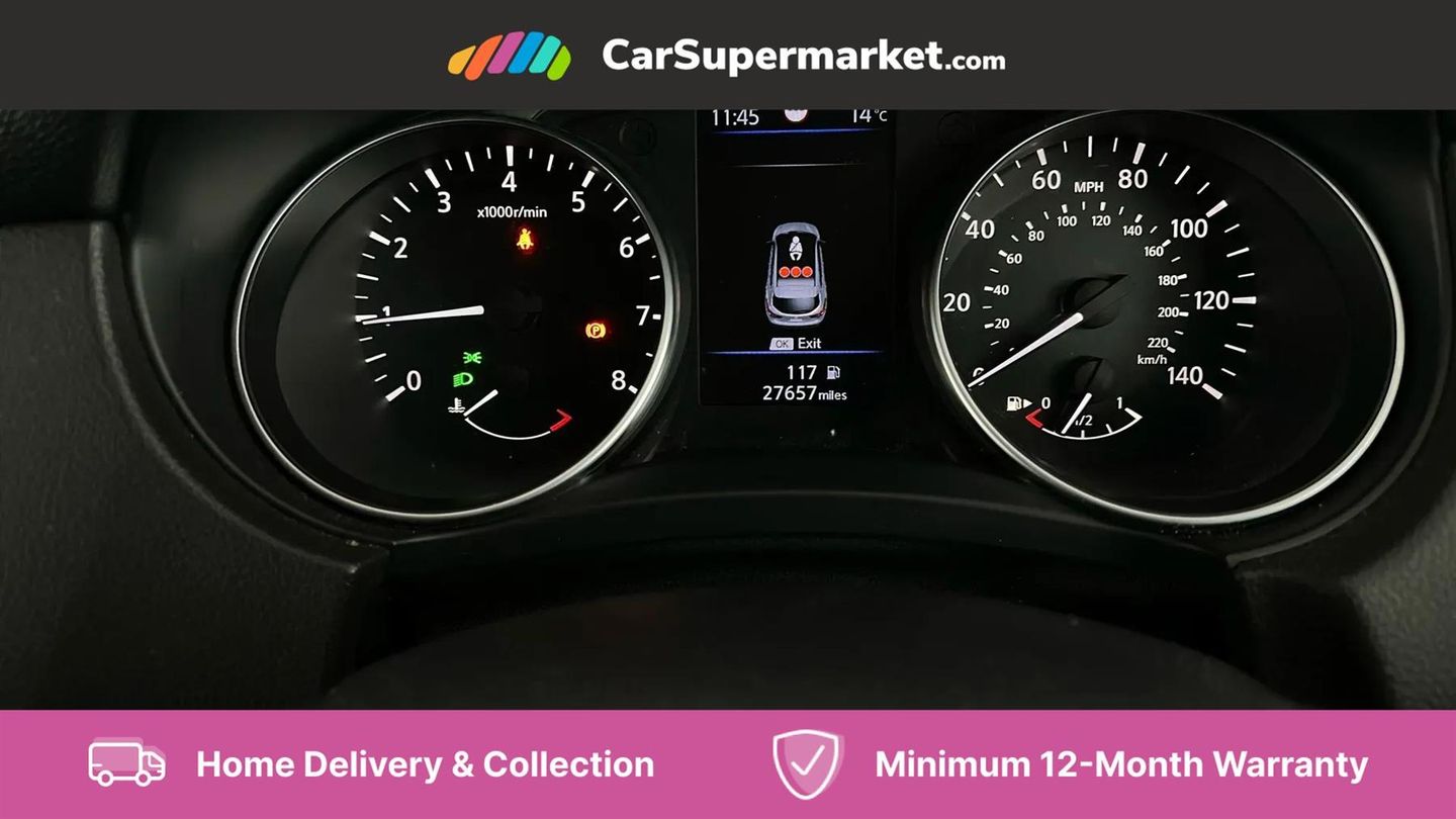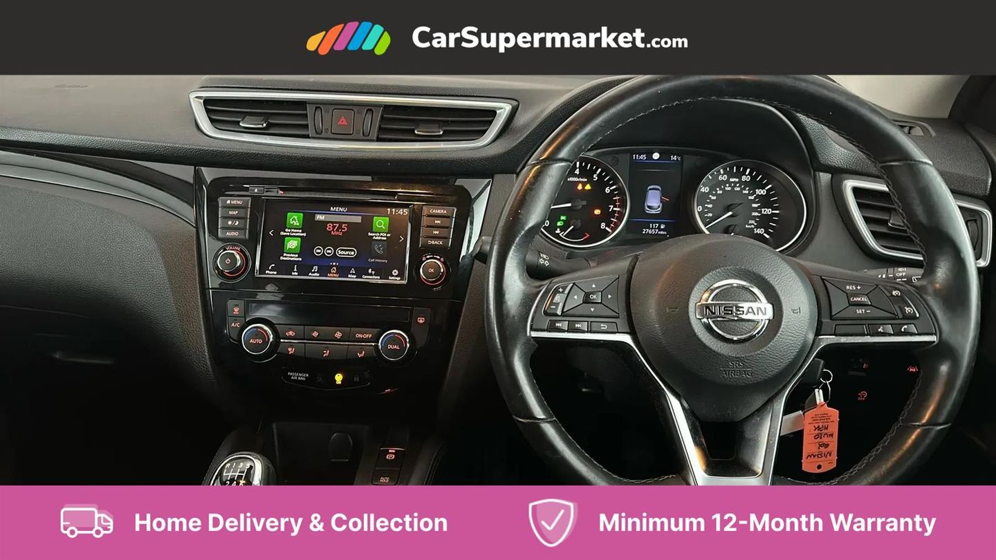 Android Auto, Apple CarPlay, Bluetooth, Cruise Control, Parking Sensors, Lane Departure Warning, Sat Nav, Traffic Sign Recognition, Digital Radio, 17" Alloy Wheels;This 2020 Nissan Qashqai DIG-T Acenta Premium boasts exceptionally low mileage for its age, having covered just 27,656 miles. It features a 1.3 litre Euro 6 petrol engine and comes with a full service history, with the last service completed on 2025-07-10 at 26,699 miles. The MOT is valid until July 2026, offering peace of mind. This Acenta Premium trim level includes desirable features such as dual zone climate control for personalised comfort, rear parking sensors, and a rear view camera to assist with manoeuvring. The Qashqai DIG-T Acenta Premium offers excellent fuel economy, achieving up to 45 miles per gallon, which is a strong indicator of its efficiency compared to similar vehicles. Furthermore, its low insurance group rating means that running costs are kept to a minimum, making it an economical choice for many drivers.