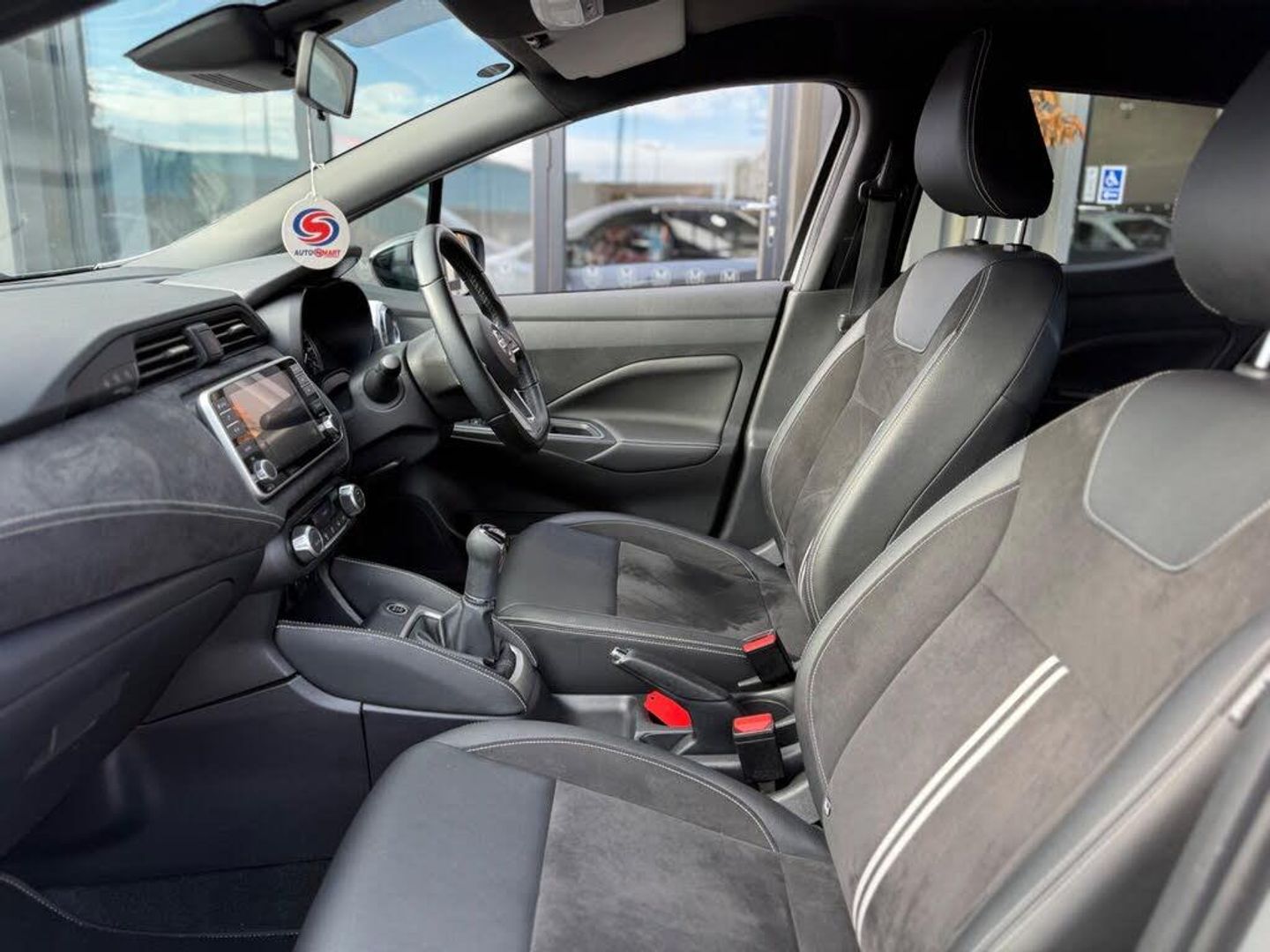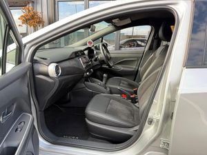 12V Socket - Front, 17in Alloy Wheels, 2 x Front and 1 x Rear Cup Holders, 3 x 3-Point Rear Seatbelts, 4 Speakers, 60-40 Split Folding Rear Seats, ABS with EBD and Brake Assist, AUX-In Socket, Advanced Drive Assist Display - 5in TFT Coloured Screen, Air Conditioning - Automatic, Antenna - 300mm, Audio System with MP3, Auto Hazard Lights, Automatic Headlights, Black Door Mirrors, Bluetooth, Body Coloured Front Door Handles, Boot Cover, Bumpers - Body Coloured, Chrome Interior Door Handles, Concealed Rear Door Handles, Crash Warning, Cruise Control, DAB Radio, Driver and Passenger Airbags, Driver and Passenger Sun Visor with Vanity Mirror, Driver-Passenger-Side and Curtain Airbags, ESP - Electronic Stability Programme, Electric Folding-Heated Door Mirrors with LED Turn Indicators, Front Console Storage, Front Fog Lights, Front Passenger Seatback Pockets, Front Power Windows, Front and Rear Door Pockets with Drink Holders, Front and Rear Seatbelt Warning, Gear Shift Indicator, Grey PVC Front Door Pads, Headlights - High Beam Assist, Headlights - LED, Height Adjustable Driver Seat - Manual, Height Adjustable Front Headrests with Satin Silver Decoration, Height Adjustable Front and Rear Seatbelts with Pre-tensioner and Load Limiter, Height and Telescopic Adjustable Steering Wheel, High Mounted Rear Brake Light, Hill Start Assist, ISOFIX on Front Passenger and Rear Seats, Intelligent Emergency Braking with Pedestrian Recognition, Jacknife Key Type x1, LED Signature Daytime Running Lights, Lane Departure Warning and Prevention, Luggage Room Lighting, Map Lamp and Power Window Switch Illumination, Nissan Anti Theft System Immobiliser, Nissan Intelligent Key with Engine Start Button, Outside Temperature Sensor, Passenger Airbag Deactivation System, Power Assisted Steering, Rain Sensing Windscreen Wipers, Rear Parking Camera, Rear Privacy Glass, Rear Roof Spoiler, Rear Wiper, Reclining Front Seats, Remote Central Locking, Satin Silver Decoration on Air Vent, Satin Silver Decoration on Gear Knob and Steering Wheel, Smartphone App Integration, Soft Knee Pad with Stitching, Soft-Touch Upper IP with Grey PC Insert, Speed Limiter, Sports Seats, Steering Wheel Mounted Audio Controls, TPMS - Tyre Pressure Monitoring System, Traffic Sign Recognition, Trip Computer, Two Adjustable Rear Headrests, Tyre Repair Kit, USB - iPod Connectivity, Leather and Alcantara - Black