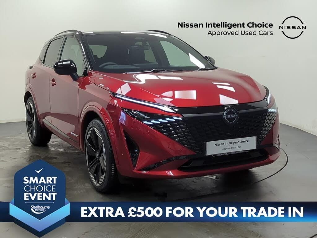 2 front USB-C ports, 2 rear USB-C ports, 360 degree Intelligent around view monitor with moving object detection, Blind spot warning, Drive assist custom mode, Drive modes (sport, normal, eco), Driver drowsiness and attention warning, e-Pedal step, Electric speed sensitive power steering, Emergency and breakdown call, Emergency lane keep assist, Emergency Stop Signal (ESS), Engine start/stop button, EV mode switch, Event data recorder, Front and rear parking sensors, Full Digital 12.3" TFT Digital Combimeter, Google virtual personal assistance, Idle stop/start system, In-car WIFI hotspot, Intelligent Cruise control (ICC), Intelligent driver alert system, Intelligent forward collision warning, Intelligent lane intervention, Intelligent speed assist, Lane departure warning system, Maximum speed limiter, Nissan connect 12.3 inch touchscreen infotainment system, Nissan connect navigation with google maps, Nissan connect services 2.0 (Google Automotive System), Outside temperature sensor, Propilot assist with Navi-Link, ProPilot park, Rear cross traffic alert, Remote control services - door locks, lights, horn and car locator, Reversing detection, Traffic jam pilot, Traffic sign recognition with legal speed adjustment, Trip computer, Wireless Apple CarPlay/Android Auto, Wireless charging pad, Limited slip differential, Multi link suspension, 6 speakers, AM/FM audio system with DAB, Bluetooth audio streaming, Auto dimming frameless rear view mirror, Auto rear wiper when reversing, Black roof rails, Body coloured bumpers, Body coloured door handles, Bodyside mouldings, e-POWER badging, Electric auto folding door mirrors, Electrically adjustable and heated door mirrors with LED turn indicator, Follow me home headlights, High beam assist, Intelligent auto headlights, LED 3rd brake light, LED daytime running lights, LED headlights with adaptive driving beam, LED rear lights, LED sequential turn lights, One touch front and rear electric windows with remote opening and closing, One touch passenger window, Rain sensing wipers, Rear privacy glass, Rear roof spoiler, Rear side wing doors, Rear styling plate, Shark fin antenna, Splash free rain sensing wipers, Super RED rear LED lights, Super UV and infrared cut glass, 12v power socket in dashboard and luggage, 3 bench rear seats in 2nd row, 3 rear headrests, 60/40 split folding rear seat bench, Chrome interior door handles, Driver and passenger sunvisors with illuminated vanity mirrors, Driver seat back pocket, Dual zone automatic climate control with pollen filter, e-POWER shifter, Electrically adjustable lumbar support for driver, Fixed Glass roof with electric sunshade, Front centre console and armrest, Front cupholders, Front door with bottle holders, Height adjustable driver seat, Height adjustable front headrests, Height adjustable passenger seat, Luggage board system, Luggage space lighting, Multifunction steering wheel, Passenger seat back pocket, Quilted alcantara leather upholstery, Rear door bottle holders, Rear seat armrest with 2 cupholders, RGB ambient light (Full area coverage), Single front passenger seat, Smooth leather steering wheel, Tilt/telescopic adjustable steering wheel, Two rear isofix child seat anchorage points with top tether, 3x3 point rear seatbelt pretensioners + load limiters, ABS with EBD and brake assist, Autonomous emergency braking, Child locks on rear doors, Curtain and front side, far side airbags, Driver and passenger airbags, Driver, passenger and 2nd row rear seat belt reminder, Electric handbrake with auto hold function, Front seatbelt pretensioners + load limiters, Height adjustable front seatbelts, Hill start assist, Intelligent blind spot intervention, intelligent front emergency braking, Intelligent rear automatic braking, Tyre pressure monitoring system, Vehicle dynamic control, Engine immobiliser, Intelligent key with walk away lock and approach unlock functions, Remote central door locking with deadlocking, Thatcham alarm, 20" N-Design diamond cut alloy wheels, Tyre puncture repair kit