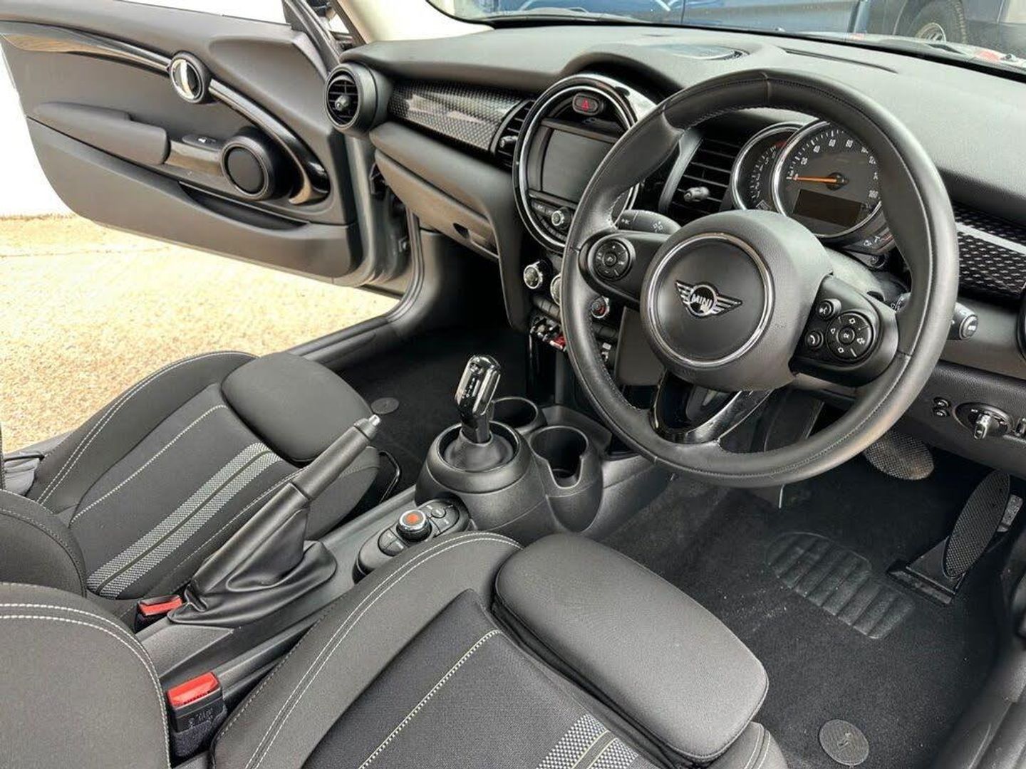 12V Socket in Centre Console, 16in Alloy Wheels - Loop Spoke, 3 Point Seatbelts on all Seats, 4 Lashing Eyes in Luggage Compartment, 4 Speakers - in Front Door Trims and Underneath Front Seats, 6.5in Screen with LED Ring, Air Conditioning - Manual, Airbags, Alarm System, Anti-Lock Braking System - ABS, Automatic Headlight Activation Switch, Bluetooth for Compatible Mobile Phone - with Audio Streaming, Bonnet Scoop, Carbon Black Colour Line - Knee Roll and Door Armrests, Chrome Highlights, Cruise Control with Brake Function, Cup Holders, Door Sill Strips - Metal with Cooper S, Door Storage Compartments, Dynamic Brake Lights, Dynamic Stability Control - DSC, Electric Windows - Front, Electro-Mechanical Steering with Speed Dependant Steering Assistance, Electronic Gear Shifter, Electronic Vehicle Immobiliser, Exhaust Tailpipe - Double - Central with Chrome Finishers, FM Tuner and DAB Digital Radio, Foldable Rear Seats 60-40, Front and Rear ISOFIX - including Front Passenger Airbag Deactivation, Fuel Filler Cap in Chrome, Glove Compartment, Headliner - Satellite Grey, Heated Rear Window, Heated Windscreen Washer Jets, Instrument Cluster, Interior Lighting, Interior Surface - Black Chequered, LED Headlights with Closed Ring as Daytime Driving Lights, LED Reading Lights - Vanity Mirror Lights - Front Footwell Lights - Spotlights on Front Seats, Leatherette Gearshift Lever and Handbrake Gaiters, MINI Driving Modes, MINI E-Call, MINI Logo Projection on Floor from Drivers Exterior Mirror, MINI TeleServices, Mechanical Seat Adjustment, Model Logo Cooper S on Right of Tailgate, Multifunction Controls for Steering Wheel, On-Board Computer, Performance Control, Radiator Grille - Chrome Border with Honeycomb Structure - including S Badge, Rain Sensor Window Wipers, Rear Fog Light, Rear LED Lights with Union Jack Design, Rear Window Wiper, Roof and Mirror Caps - Body-Colour, Side Scuttle Panels with Integrated Indicators, Sport Leather Steering Wheel, Start-Stop Toggle including Keyless Go, Steering Column Height and Length Adjustment, Storage - Pockets on Back of Front Seats, Sun Visor with Vanity Mirrors, Sun-Heat Protection Glass, Tool Kit in Luggage Compartment, Two-Tone Horn, Tyre Pressure Monitoring System, White Indicator Lenses, 16in Alloy Wheels - Victory Spoke in Black, Double Stripe Cloth - Carbon Black, Moonwalk Grey, Roof and Mirror Caps - Black