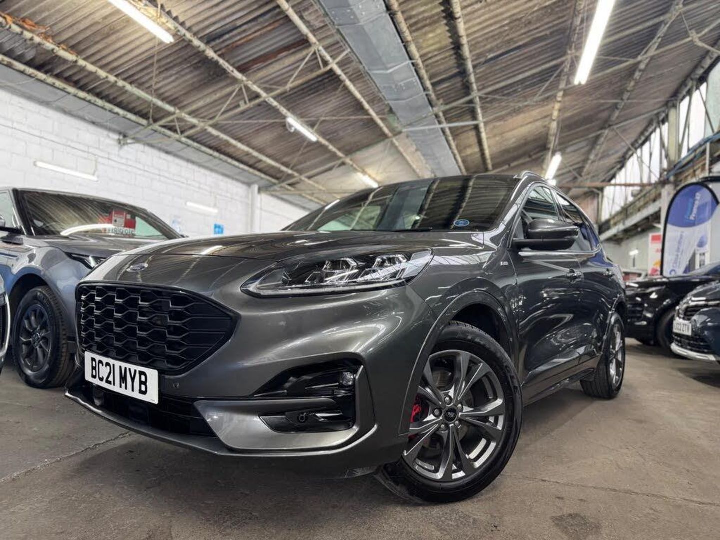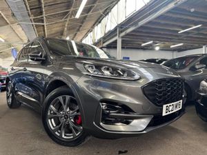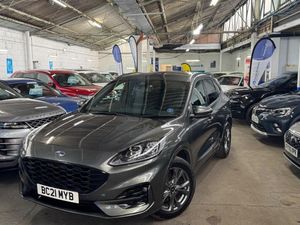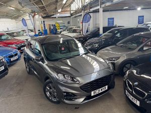 This 2021 Ford Kuga offers peace of mind with its clear vehicle history check. As a Kuga ST-Line Edition, this model boasts a 2.5L petrol hybrid engine and meets Euro 6 emission standards. The ST-Line Edition trim adds a sporty edge to this practical vehicle. Enjoy the convenience of keyless entry and automatic headlights with auto high-low beam, making driving easier and safer. Parking is a breeze with front and rear parking sensors, and the full LED headlamps provide excellent visibility. Stay connected on the go with the mobile phone wireless charging pad.This particular model stands out with its low insurance group, potentially saving you money on premiums. You'll also benefit from impressive fuel economy, achieving around 51 mpg, meaning fewer trips to the petrol station. The low CO2 emissions contribute to reduced road tax and a smaller environmental footprint. Experience responsive performance with acceleration from 0-62mph in just 9.1 seconds, making it a great all-rounder for daily commutes and longer journeys.-FRESH SERVICE & LONG MOT-In House Finance Options Available ,Part Exchange WelcomeI,We Have An Indoor Viewings Facility