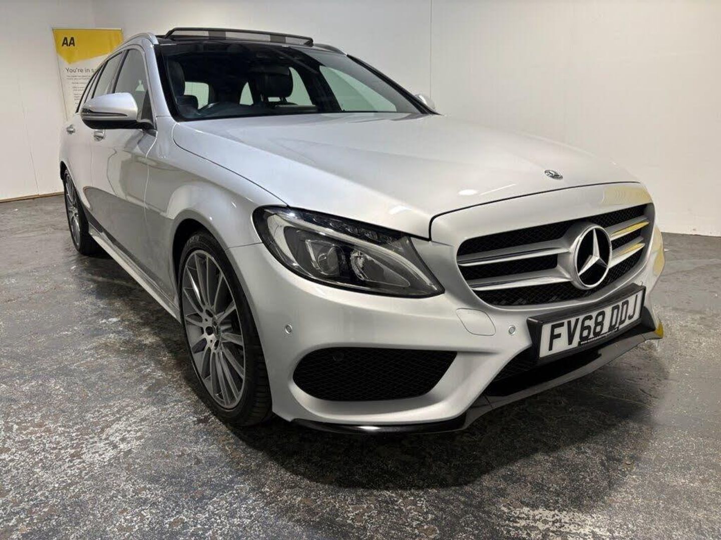19in Alloy Wheels - AMG Multi-Spoke Design - Painted Titanium Grey, Iridium Silver, Leather - Black, 8.4in Colour Display - High-Resolution, ABS - Anti-Lock Braking System, AMG Bodystyling, Active Bonnet - Pedestrian Safety which Detects an Impact and Raises Bonnet, Active Parking Assist including PARKTRONIC, Adaptive Brake Assist with Hold Function and Brake Drying Function, Adaptive Brake Lamps, Agility Control - Sports Suspension - Lowered by 15mm, Airbags - Dual Stage - Driver and Front Passenger, Alarm System with Immobiliser and Interior Protection, Audio 20 CD, Automatic Child Seat Recognition Sensor, Automatically Dimming Rear View Mirror and Drivers Door Mirror, Bluetooth Interface for Hands-Free Telephone, Brake Calipers with Mercedes-Benz Lettering, Brushed Stainless Steel Sports Pedals with Rubber Studs, Central Locking with Interior Switch - Automatic Locking and Crash Sensor with Emergency Opening Function, Childproof Locks - Manually Operated for Rear Doors and Electrically Operated for Rear Power Windows, Collision Prevention Assist Plus, DAB Digital Radio Tuner, Dynamic Select with a Choice of Driving Modes - Comfort - ECO - Sport - Sport Plus - Individual, ESP - Electronic Stability Programme, Easy-Pack Automatic Powered Tailgate, Electric Parking Brake, Electric Windows - 4 - With One-Touch Opening and Closing - including Obstruction Sensors, Electronic Key - Chrome Surround, Exhaust System - Visible Twin-Pipe Integrated into the Bumper, First Aid Kit and Warning Triangle, Floor Mats - Black with AMG Lettering, Front Centre Armrest with Stowage Compartment, Front Seats - Electrical Height and Backrest Adjustment and Four-Way Lumbar Adjustment, Full LED Tail Lights, Headlamps - LED High Performance with Integrated LED Daytime Running Lights, Heated Front Seats, ISOFIX Child Seat Attachment Points with Top Tether in Rear, Illuminated Glove Compartment, Instrument Cluster with Two Tube-Design Round Dials and 5.5in TFT Multi-Function Display, Interior Lighting Package, Load Compartment Cover, Mercedes Connect Me - Standard Services, Mirror Package, Outside Temperature Display, Premium Plus Package, Radiator Grille with Integrated Star - Two Louvres in Matt Iridium Silver with Chrome Trim, Radio Aerial Integrated into Rear Window, Rain Sensing Windscreen Wipers, Remote Boot Release, Reversing Camera, Roof Rails - Chrome, SPEEDTRONIC Cruise Control and Variable Speed Limiter, Seat Belts - Black, Seat Comfort Package, Seats - AMG Sports, Seats - Rear Split Folding 40-20-40, Service Indicator ASSYST, Speakers with FrontBass, Sports Direct-Steer System with Speed Sensitive Steering, Status Display for Rear Seat Belts in Instrument Cluster, Steering Column - Manually Adjustable for Height and Reach, Steering Wheel - 3-Spoke Multi-Function AMG in Black Leather with Flattened Bottom Section and Chrome Inserts and Perforated Leather in Grip Area, Steering Wheel - Gear Shift Paddles, Steering Wheel - Multi-Function with Audio and Onboard Settings Control, Stowage - Double Cup Holder in Centre Console, Stowage Package, Sun Visors with Illuminated Vanity Mirrors, THERMATIC - Automatic Climate Control - Two-Zone, TIREFIT with Tyre Inflation Compressor, Tinted Glass All Round - Green, Top Surround of Side Windows in Polished Aluminium, Trim - Black Ash Wood, Two USB Ports and an SD Card Slot in Centre Console, Tyre Pressure Monitoring System