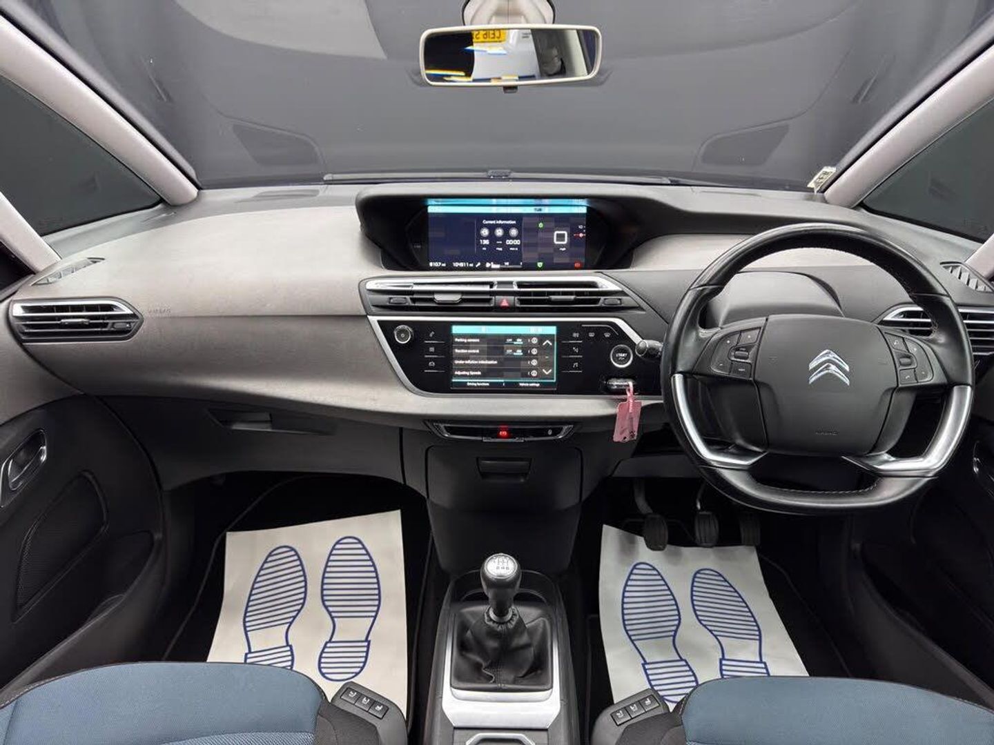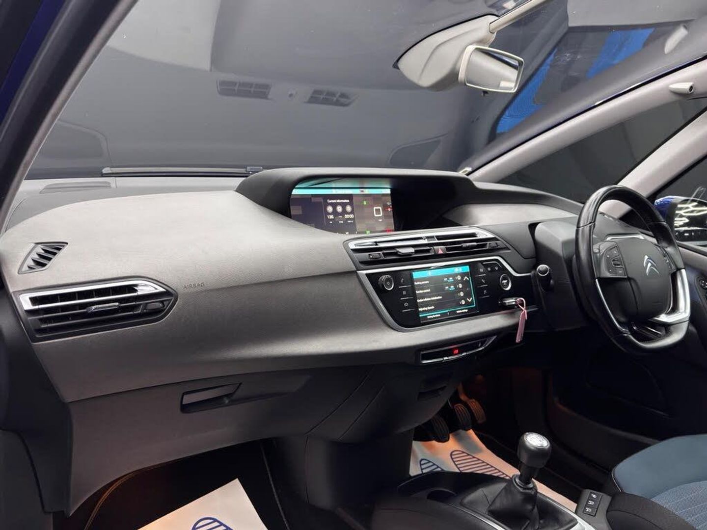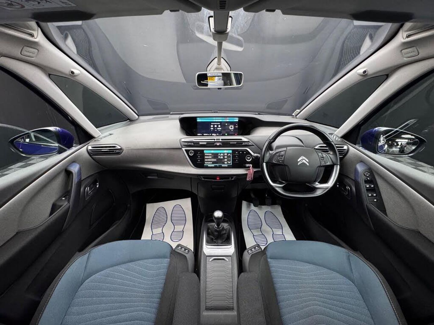 12 Volt Accessory Power Socket in Central Storage Compartment, 12in HD Panoramic Central Display, 17in Alloy Wheels - Mamba, 3 Separate Full Size Rear Seats with Adjustable Recline Angle, 7in Touch Drive Interface, ABS with Electronic Brakeforce Distribution and Emergency Braking Assistance, Additional 12 Volt Sockets in Row 2 and Boot, Air Conditioning - Automatic Digital Dual Zone, Air Vents for Rear Seat Passengers, Alarm, Aluminium Dashboard Trim and Air Vent Surrounds, Aluminium Front Sill Scuff Protectors, Audible Warnings, Automatic Activation of Hazard Warning Lights, Automatic Electronic Parking Brake, Automatic Lights and Windscreen Wipers, Black Panel On-Off Instrument Lighting, Bluetooth Handsfree and Media Streaming with USB Socket, Body Colour Door Handles, Chrome Lower Front Bumper Insert, Chrome Side Signature, Citroen Connect Nav with Citroen Connect Box, Coffee Break Alert, Courtesy Reading Lights - Front and Rear, Cup Holders, DAB Digital Radio, Door Mirrors - Body Colour Electrically Heated and Folding with LED Indicators, Door Mirrors - Kerb Lighting, Driver - Front Passenger - Front Lateral and Curtain Airbags, Drivers and Front Passengers Seat Adjustable Armrest, Electronic Stability Control, Find My Car Feature, Five 3-Point Inertia Reel Seatbelts, Fixed Centre Storage Box with Sliding Lid, Front Door Pockets with Bottle Holder, Front Fog Lights with Cornering Function, Front Inertia Reel Seatbelt with Pre-Tensioners and Force-Limiters, Front Parking Sensors, Front Passenger Seat - Flat Folding, Front and Rear Electric Windows with Anti-Pinch and One-Touch Operation, GEI - Gear Efficiency Indicator, Glove Box - Illuminated and Ventilated, Halogen Twin-optic Headlights, Head Restraints - Retractable Rear x3, Height and Reach Adjustable High Quality Leather Steering Wheel with 4 Control Zones, Hill Start Assist, Illuminated-Switchable Central Storage Compartment, Immobiliser, LED Daytime Running Lights, Lashing Eyes in the Boot, Mirror Screen, Panoramic Windscreen, Programmable Cruise Control with Speed Limiter, RDS Radio with 6 Speakers and Aux Socket, Rear ISOFIX Mounting Points, Rear Lights - 3D Effect, Rear Parking Sensors, Rear Underfloor Storage, Remote Central Locking with Deadlocks, Removable and Rechargeable Torch in Boot, Rigid Load Cover, Seats - Massage Function for Driver and Front Passenger, Seats - Rear with Individual Sliding Fore-Aft Adjustment, Service Indicator, Space Saver Spare Wheel, Start Button, Steering Wheel - Mounted Controls, Storage - Front Seat Back Pockets, Storage - Under Driver and Front Passengers Seat, Tilt and Height Adjustable Drivers Seat, Tilt and Height Adjustable Passengers Seat, Tinted Windscreen, Total Closure Mode, Tyre Pressure Monitor, Unfastened Seat Belt Warning for All Seats, Upper Dashboard - Two Tone Soft-Touch Effect, Variable Power Assisted Steering, Cloth - Levanzo Blue