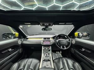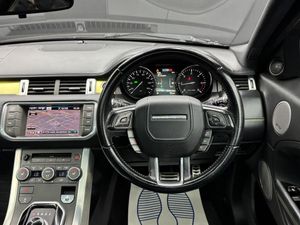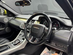 20in Alloy Wheels Style 9 - Gloss Black, 8in High Resolution Touch Screen, ABS - Anti Lock Braking System, Adaptive Dynamics, Aeroflip Attachment For Rear Spoiler, Armrest - Rear Centre with Storage Compartment and 2 Cupholders, Audio Connectivity System, Audio System - 380 Watt Meridian Sound System with Radio and Single Slot CD, Audio System - DAB, Automatic Headlight Levelling, Automatic Headlights, Auxiliary Heater - Electrical Positive Temperature Coefficient, Bluetooth Telephone Connectivity, Carpet Mats with Edging, Clear Rear Tail Lamp Finish, Climate Control - Automatic with Air Filtration and Air Quality Sensing for Automatic Recirculation, Cruise Control, Darkened Front Fog Lamp Finish, Darkened Front Headlamp Finish, Door Mirrors - Electrically Adjustable - Heated and Power Folding with Memory Function, Dynamic Plus Pack, EPAS - Electronic Power Assisted Steering, Ebony Morzine Headlining, Electric drivers and passenger seat adjustment, Evoque Badge in Red, Exterior Black Pack, Exterior Mirrors - Auto Dipping in Reverse Gear, Front Fog Lights, Glass - Privacy - Rear of B Post, HDC - Hill Descent Control, HDD Premium Navigation with Touch Screen, Headlight Power Wash, Heated Front Seats, Illuminated tread plates, Interior Mood Lighting, Keyless Entry, Land Rover - Tyre Repair System, Locking Wheel Nuts, Lumbar Support, Paddleshift, Parking Aid - Front, Parking Aid - Rear, Parking Aid - Rear View Camera, Rain Sensing Windscreen Wipers, Roof - Fixed Panoramic, Seats - Rear Centre Head Restraint, Speakers x11, Steering Wheel - Perforated Leather Rim, Steering Wheel Mounted Audio Controls, Sun Visors - Illuminated Vanity Mirrors, TMC - Dynamic route guidance, Tailgate - Powered Electrical Tailgate, Terrain Response, USB Connectivity, Voice Control - Say What You See, Windows - Electric Front, Windows - Heated Rear Windscreen, Windscreen - Heated, Windscreen Washer Jets - Heated, Xenon Headlamps with LED Signature, Yellow Anodised Aluminium Trim Finisher, Oxford Leather - Ebony