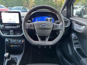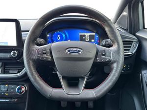 17in Alloy Wheels - 5x2 Spoke - Black Machined Finish, ABS - Anti-lock Braking System, Acoustic Laminated Windscreen, Active Grille Shutter, Automatic Dimming Rear View Mirror, Automatic Headlights with Rain-Sensing Wipers and Auto High Beam, Centre Console - Premium with Openable Stowage Area with USB Connectivity - 2 Cupholders and 12v Power Point, Courtesy Lights - Ambient LED Courtesy Lighting - Single Colour, Cruise Control with Intelligent Speed Assist, Drivers Manual 4-Way Seat Adjustment with Manual Lumbar Adjust, ESC - Electronic Stability Control and Hill Start Assist, Ecoboost Hybrid Tailgate Badge, Electric Windows - Front and Rear, Emergency Brake Warning - Automatic Hazard Warning Lights, First Aid Kit Strap, Floor Mats - Front and Rear, Ford MegaBox Extended Bootspace, Ford Power Starter Button, Ford SYNC 3 Navigation, Front Bumper - Unique ST-Line Sport Design - Body Colour, Front Fog Lights with Cornering lights and LED Rear Lamps, Front Seats - Sports Style, Full Digital 12.3in Instrument Cluster, Gear Knob - Aluminium, Handbrake - Black Sensico Trimmed with Stitching, Headliner - Deluxe, Instrument Panel - High Level, Intelligent Speed Assistance, Lane Keeping Aid with Lane Departure Warning, Large Rear Spoiler - Body Colour with Centre High Mounted Stop Light, Locking Wheel Nuts, Lower Bodyside Moulding - Body Colour, Manual Air Conditioning, Passengers Seat - 2-Way, Post Collision Braking, Power Steering, Power-Foldable Heated Door Mirrors with Puddle Lamps, Pre-Collision Assist with Autonomous Emergency Braking and Pedestrian-Cyclist Detection, Projector Headlamps with LED Daytime Running Lights, Puma Badge, Quickclear Heated Windscreen, Rear Bumper Body Colour - Diffuser, Rear Parking Sensors, Rear Seats - 2-Way Head Restraint Up-Down, Rear Seats - Second Row 60-40 Folding Seats, Remote Central-Double Locking, Restrain Device Pack, ST-Line Badge, ST-Line Body Styling Kit, ST-Line Flat-Bottomed Leather Steering Wheel with Unique Red Stitching, Selectable Driving Modes - Normal - Eco - Sport - Slippery and Trail, Soft-feel Gearshift Boot with Red Stitching, Speed Limiter, Sports Suspension, Tailgate - Manual, Thatcham Alarm, Traction Control and Emergency Braking Assistance, Trip-Fuel Computer, Tyre Inflation Kit, Tyre Pressure Monitoring System - TPMS, Parking Pack, Winter Pack, Cloth - Black with Red Stitching