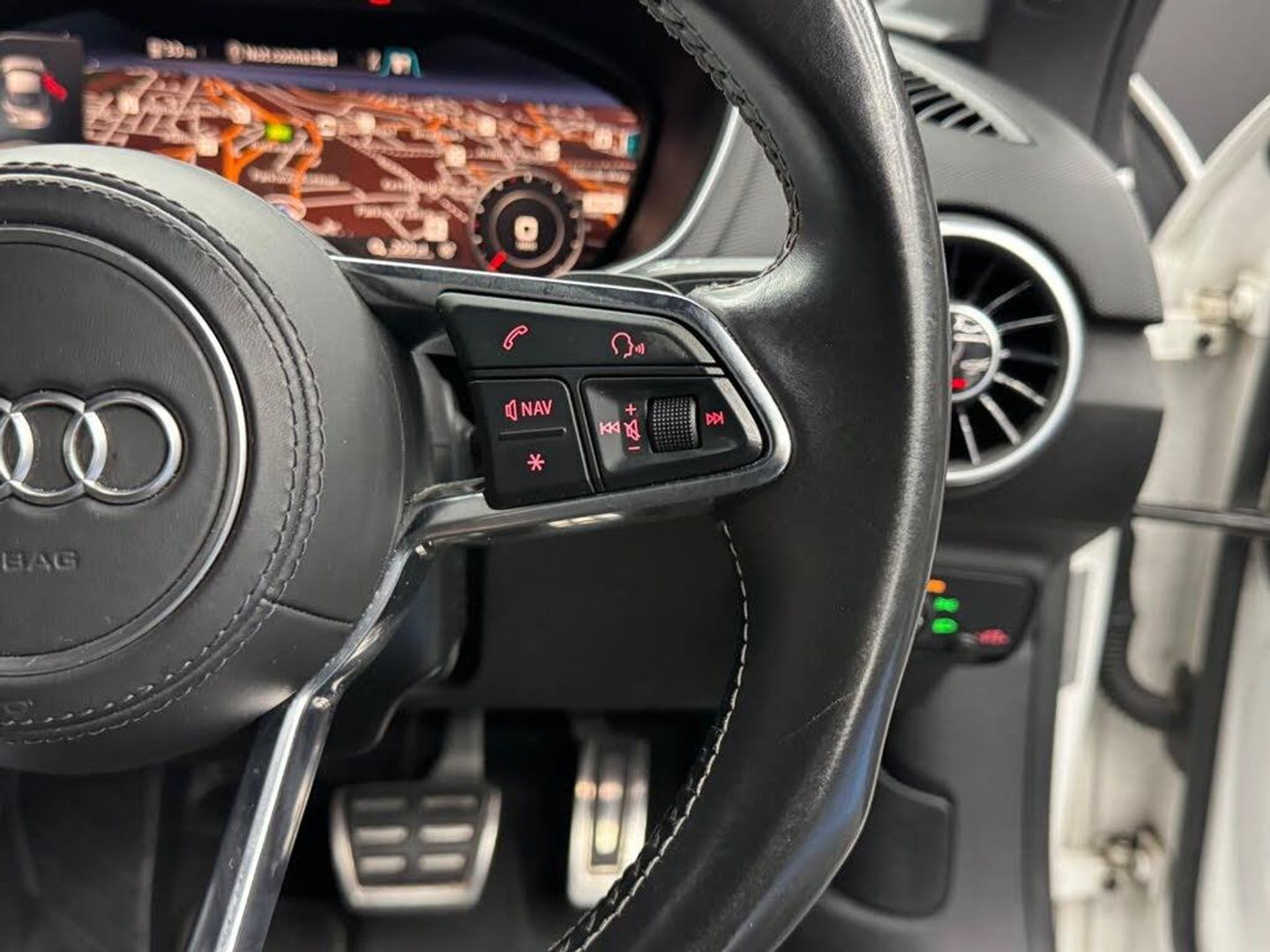 12V Power Socket,19in Alloy Wheels - 5-Parallel Spoke Star Design,2 x SDXC Card Readers,ABS - Anti-Lock Braking System,AMI - Audi Music Interface,AUX-IN Socket,Acoustic Hood - Fully Automatic,Active Door Reflectors,Air Conditioning,Airbags - Driver,Airbags - Front Passenger,Airbags - Front Side System,Airbags - Head System,Aluminium-Effect Door Mirror Housings,Amplifier - 5-Channel,Anti Theft Locking Wheel Bolts,Anti-Glare Illumination for Passenger Compartment,Anti-Theft Alarm,Armrest Doors - Leather,Audi Active Lane Assist,Audi Drive Select,Audi Magnetic Ride,Audi Sound System,Audi Virtual Cockpit with a 3rd TTS Specific Screen,Audio Output - 155 Watts,Auto-Dimming Rear-View Mirror,Auto-Dimming Rear-View Mirror with Light and Rain Sensor Package,Automatic Wipers with Rain Sensor,Bluetooth Audio Streaming,Brake Calipers - Black with TTS Logo,Brake Lights - LED,Bumper - Front TTS Specific with Accentuated Side Air Inlets with Horizontal Aluminium-Look Slats and Side Sill Trims,Bumper - Rear TTS Specific in Body Colour,Car Jack,DAB Digital Radio,Diffuser - Rear - Insert in Platinum Grey with Surround in Aluminium-Look,Door Handles - Leather,Door Mirrors - Built-in LED Side Indicators,Door Mirrors - Electrically Adjustable and Heated,Door Sill Trims with Aluminium Inlay and TTS Logo,Dynamic LED Indicators - Rear,ESP - Electronic Stability Programme,Electric Windows - Front,Electrically Adjustable 4-Way Lumbar Support,Electromechanical Parking Brake,Exhaust Tailpipe - Dual Chrome - 2 Each Side,Extended Leather Package,FM-AM Radio,First Aid Kit,Front Passenger Airbag Deactivation Switch,Fuel Computer,Head Restraints - Front in Leather,Headlights - Automatic Dynamic Range Control,Headlights - Automatic Range Adjustment,Headlights - Coming-Leaving Home Function,Headlights - Light Sensor,Headlights Washers,Headlining - Black,Heated Front Seats,ISOFIX Child Seat Mounting for Front Passenger,ISOFIX Child Seat Preparation for Rear Seats with Top Tether,Illuminated Footwells,Illuminated Inside Door Openers,Inlays - Matt Brushed Aluminium,Instrument Panel Cover - Leather,Integrated Head Restraints,Interior Elements in Quartz Lacquer Anthracite,Keyless Go,LED Daytime Running Lights,LED Headlights,LED Interior Light Package,LED Tail Lights,Leather Door Trim Inserts,Leather Package,Light and Rain Sensor Package,MMI Radio,MMI Touch,Manual Front Seat Adjustment,Mobile Telephone Preparation - Bluetooth Interface,Non-Smoking Package,Pedals in Stainless Steel,Pollen Filter,Progressive Steering,Radiator Grille - Platinum Grey with Horizontal Double Struts in Aluminium-Look and TTS Emblem,Remote Central Locking,Roll-Over Protection Bars,S Design Body Styling,Seat - Side Bolsters in Leather,Seat Belt Microphone,Seats - Extendable Thigh Support,Seats - Super Sports,Speakers x1 - Centre of Dashboard,Speakers x2 Woofers,Speakers x6 - Active,Spoiler - Retractable,Steering Wheel - 3-Spoke Leather-Flat Bottomed-Sports-Contoured,Steering Wheel - Gear Shift Paddles,Steering Wheel - Height and Reach Adjustable,Steering Wheel - Multi-function,Steering Wheel - Sports,Steering Wheel - TTS Badging,Sunband for Windscreen,TP Memo - Automatically Saves Traffic News,TTS Badges on Front Wings,Tool Kit,Traction Control,Trim on the Centre Console in Black Leather,Tyre Pressure Loss Indicator,Tyre Repair Kit,USB Connection,Warning Triangle,iPod Connection,Audi Parking System - Rear,Bang and Olufsen Sound System,Fine Nappa Leather - Super Sport Seats - Black
