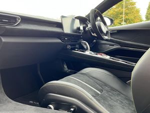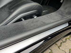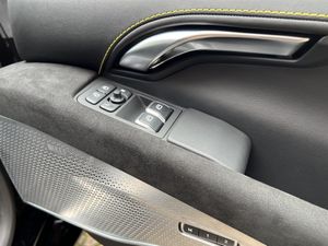 Inside you’ll find a black Alcantara cabin, tastefully highlighted by yellow contrast stitching. A matching Alcantara steering wheel with yellow top-dead-centre marker rounds off the driver-focused feel. Gloss black forged alloys shine against yellow calipers, while the Black Pack adds a strong visual statement. The touring-tuned suspension keeps things composed, whether carving country roads or city cruising. Full nose protection film preserves that pristine front end.