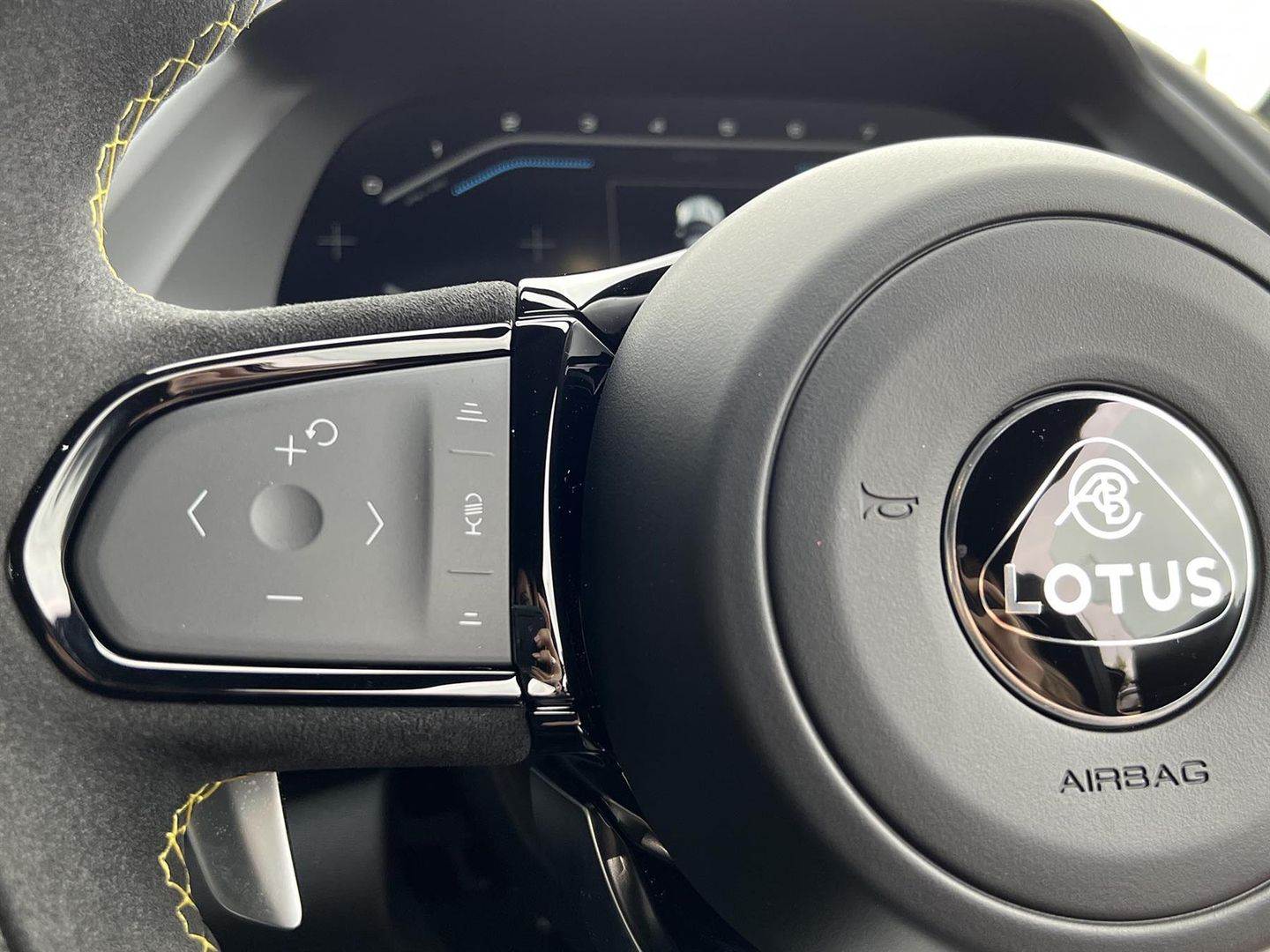 Black Alcantara Steering Wheel with Yellow Stitching and Yellow TDC Marker