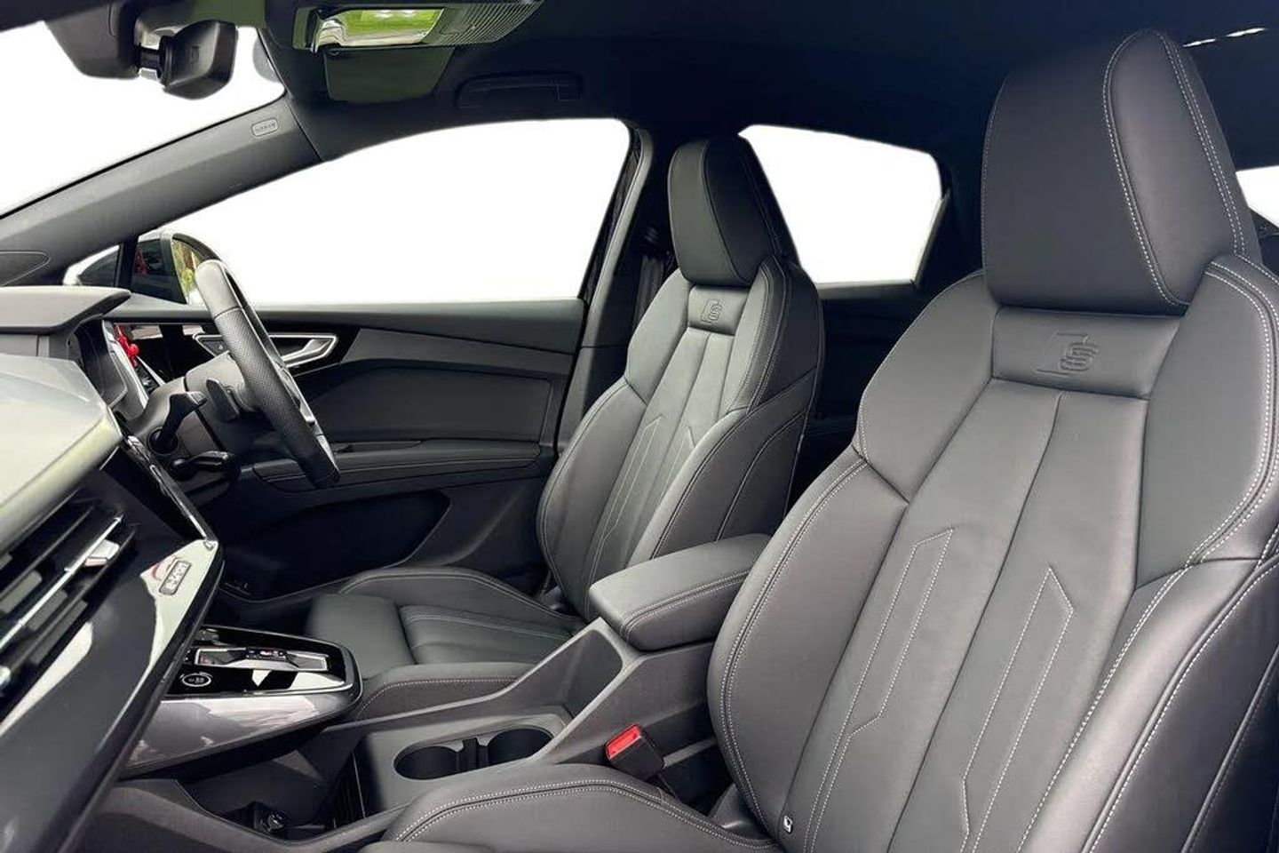 Contrast bumpers in Manhattan grey - paint finish,Accent surfaces in Gloss black,Reversing camera,Twin leather with S embossing,Interior package for Front Sport seats in Twin leather,Assistance pack plus,Exterior pack,Aluminium look interior elements,Privacy glass,Ambient Lighting Pack Plus,Front sport seats with integrated head restraints,Pedals in stainless steel,Front door sill trims with aluminium inlay - illuminated with 'S' logo,Technology Pack,Equipment package for Great Britain,Sport Suspension,Tool kit,Flat top and bottomed twin-spoke leather multifunction Sport steering wheel with shift paddles for recuperation,S line bumpers,Deletion of power/technology character,Split-folding rear seat bench - can be split 40:20:40 or fully - with centre armrest and cup holders,Electric luggage compartment lid,Advanced key,Black appearance package plus,Inlay in Dark matt brushed aluminium,21" x 8.5J (front) 9.0J (rear) 5-arm rotor 'evo' Audi Sport alloy wheels - matt grey - gloss turned - with 235/45 (front) 255/40 (rear) R21 tyres,Steering wheel with elements in chrome,Black cloth headlining,Rear 12V socket and 2 x USB-C connections for charging devices,Door armrests in leatherette,Audi Parking System Plus,Matrix LED headlights with digital light signatures - dynamic light sequencing and dynamic indicator,Matrix LED headlamps,Adaptive cruise control without speed limiter,LED rear lights with illuminated light strip - dynamic indicator and dynamic light sequencing,Headlight washer system,SONOS Premium Sound System,9ZV,S line Twin leather pack,Equipment options subset for Great Britain