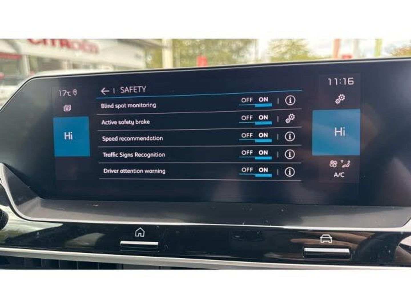 Front and rear electric windows, Dark tinted rear windows and side windows with chrome detail, Rain sensing automatic front windscreen wipers, Rear wiper, ABS, ESP, Hill start assist, Electric parking brake, Electronic Power Steering (EPS), Advanced comfort suspension - double hydraulic stops on front and rear suspension, Apple car play and Android auto, Voice commands, Speed limiter, Active blind spot detection, In-crash braking, Citroen connect box emergency and assistance system, Keyless entry and start, Driver's head-up display, 5.5 inch backlit full TFT driver's instrument cluster with LED ambient lighting, My Citroen Drive Plus: 10" high-resolution touchscreen user interface, controlling media, connectivity, vehicle settings + connected nav, Electrically heated, folding and adjustable external rear view mirrors with courtesy lighting, Electrochrome interior rear-view mirror with automatic day-night switching