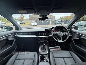 2x USB Type C ports (for charging and data transfer), Audi connect emergency call and service, Audi drive select (Auto, Comfort, Dynamic and Individual), Audi smartphone interface, Audi Virtual Cockpit - 10.25" digital and colour instrument cluster, Automatic start/stop system with recuperation, Bluetooth interface, Collision avoidance assistant, Cruise control + speed limiter, Electromechanical power speed sensitive steering, Lane departure warning system, MMI Navigation Plus with high resolution 10.1" colour touch screen display, Rear parking sensors, Service indicator, Voice control system with natural language interaction, 6 passive loudspeakers, CD player, DAB Digital radio, Acoustic glass windscreen, Aluminium window trim, Auto dimming frameless rear view mirror, Body colour exterior mirrors, Body colour roof spoiler, Electrically adjustable/heated/folding/dimming door mirrors with kerb view includes integrated LED indications + kerb view function for passenger side, Front electric windows, LED daytime running lights, Light and rain sensors, Model and engine designation badges at rear, Rear electric windows, Rear window, rear door windows and rear side windows in clear glass, 12V socket and storage compartment in front centre console, 40/20/40 split folding rear seat bench with cupholder, Dual zone electronic climate control, Front and rear headrests, Front centre armrest, Front door sill trims with aluminium inlay, Front/rear floor mats, Height and reach adjustable steering wheel, Interior lighting - Front and rear roof module including reading lights, glove compartment light and right hand side, Luggage compartment floor covering, Manual boot compartment lid, Manually adjustable front seats, Seat side bolsters, Steel grey cloth headlining, Twin leather upholstery, Aluminium interior elements pack - A3 Saloon, Sport styling pack - A3 Saloon, 3x3 point rear seat belts, Driver and front passenger airbag with passenger airbag deactivation, Electronic Stabilisation Control (ESC) including ABS, ASR and EDL, First aid kit with warning triangle and 2 safety vests, Front side airbags with head airbags and interaction airbag, Hill hold assist, Pre-sense front with pedestrian and cyclist detection, Seatbelt monitoring, Tyre pressure loss indicator, Anti theft alarm, Anti-theft wheel bolts, Electronically operated child lock, Immobiliser, Remote control central locking, Diesel particulate filter, Standard suspension, Aluminium air vent surrounds, Aluminium trim elements, Inlays with silk effect paint in platinum grey