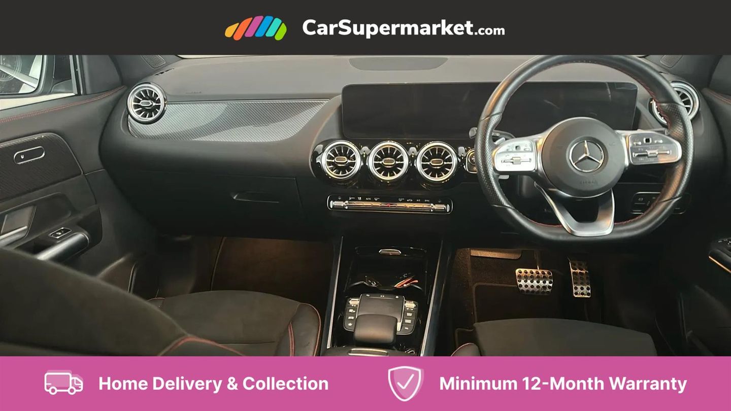 10.25 inch touchscreen central media display,10.25" Digital instrument cluster display screen,Active lane keeping assist,Attention assist,Cruise control + speed limiter,Direct steering,DYNAMIC SELECT with a choice of driving modes (ECO, Comfort, Sport and Individual),ECO start/stop function,Fluid level warning indicator for fuel, oil, coolant and washer fluid,Hard-disk navigation,Hey Mercedes Voice activation,Lamp failure indicator,Mercedes me connect including emergency call system, accident recovery, breakdown and maintenance management,Mercedes me remote services,Multi function trip computer,Outside temperature gauge,Owners manual and service booklet in English,Pre-installation of private car share,Radio aerial integrated into front and rear windshields,Service indicator (ASSYST),Smartphone integration with Apple CarPlay and Android auto,Speed limit assist,Status display for rear seat belts in instrument cluster,Lowered comfort suspension,Rear axle multi-link,2 USB ports (type C) in rear stowage compartment and one in front of center console,Bluetooth connectivity including audio streaming,DAB Digital radio,MBUX multimedia system,Media interface,Mercedes-Benz (225w) sound system with 10 speakers,Adaptive brake lights,Aerial for GPS,Aluminium roof rails,AMG front and rear apron,AMG specific/dual flow exhaust pipes in chrome (non-functional),Automatic headlamp activation,Beltline strips and weather strip in chrome,Black grained claddings with chrome parts,Body colour bumpers,Body colour door mirrors,Body coloured door handles with chrome insert for keyless entry,Car wash function,Dark privacy glass from B-pillar backwards,Electric front windows,Electric rear windows,Electrically adjustable and heated door mirrors with integrated LED indicators,Heated glass rear windscreen + timer control,Heated windscreen wash system,Interior mirror with black reading lamps and frameless,LED high performance headlamps with integrated LED daytime running lights,LED tail lights in two piece design,LED third brake light,Matt titanium grey front and rear apron trim,Pre-installation for trailer coupling,Rain sensor windscreen wipers,Rear fog lights,Rear side wing doors,Rear wiper,Roof spoiler,Single lamella raditor grille with chrome dotted diamond grille and inlay,12V power socket in centre console,3 seat bench in 2nd row,3 spoke multifunction sports steering wheel in nappa leather with flattened bottom and perforated grip area,40:20:40 split folding rear seat backrests,Adjustable head restraints,Air conditioning - Two zone thermotronic luxury automatic climate control with display,Ambient lighting in front headrests,Artico man-made leather/Microfibre Dinamica upholstery with red contrast stitching,Auto Mercedes-Benz child seat recognition sensor,Black roof lining,Brushed door pulls in silver chrome,Courtesy light in boot,Front centre armrest with stowage,Galvanished gear shift paddles on steering wheel,Heated front seats,illuminated door sills with changeable cover,Illuminated glovebox,Interior lighting - 64 colour Ambient lighting,Leather trimmed gearknob,Luggage net on driver/front passenger seat backrest,Manually height and reach adjustable steering column,Multi-gesture touchpad control on center console,Single front passenger seat,Sports pedals in brushed stainless steel with black rubber studs,Sports seats,Stowage compartment in centre console,Stowage compartment with retractable cover,Sunvisors with illuminated vanity mirrors,Twin front cup holders,Two outer rear seat isofix and top tether child seat fixing points,AMG body styling pack - GLA,Comfort seat pack - GLA Class,Interior lighting with light and sight pack - GLA,Load compartment pack - GLA,Mirror pack - GLA Class,Parking pack - GLA,3 rear 3 point seatbelts,ABS with Brake Assist,Active bonnet pedestrain safety measure which detects an impact and raises bonnet by 65mm,Active brake assist includes forward collision warning system with autonomous braking,Adaptive brake assist with hold function and hill start assist,Bonnet with power domes,Brake pad wear warning indicator,Childproof locks manually operated for rear doors and electrically operated for rear power windows,Crash responsive emergency lighting,Driver and passenger head and side airbags,Drivers knee airbag,Dual stage driver/passenger airbags,Electronic parking brake,ESP curve dynamic assist,ESP with ASR,Front and rear seatbelt reminder,Front brake callipers with Mercedes Benz logo lettering on front,Front brake discs internally ventilated and perforated,Front passenger seat occupancy sensor,Tyre pressure monitoring system,Warning triangle and first aid kit,Window airbags,Alarm system with immobiliser and interior protection -Thatcham category 1,Keyless Go starting function,Remote central locking and crash sensor with emergency opening function,Urban guard vehicle protection,Vehicle key with decorative surround in chrome,Carbon structure trim,Chrome air vent surrounds