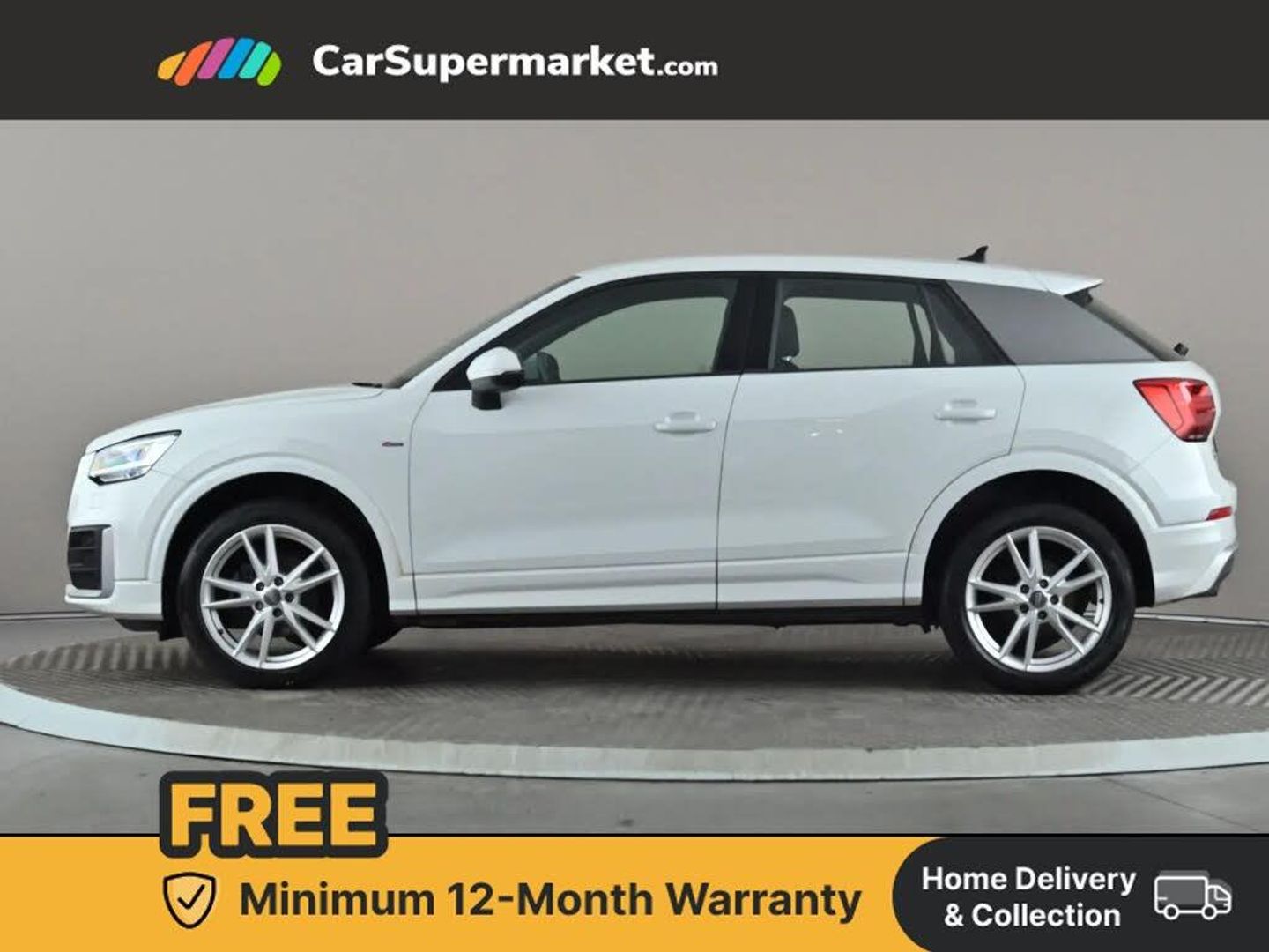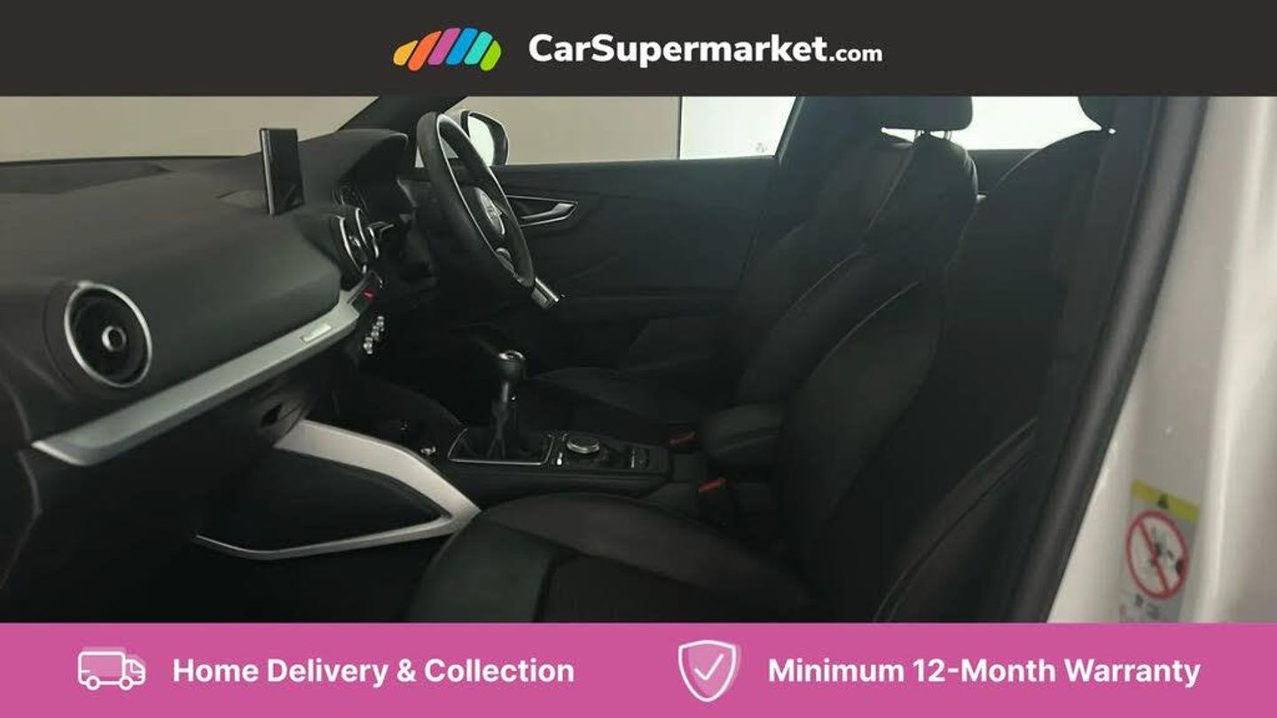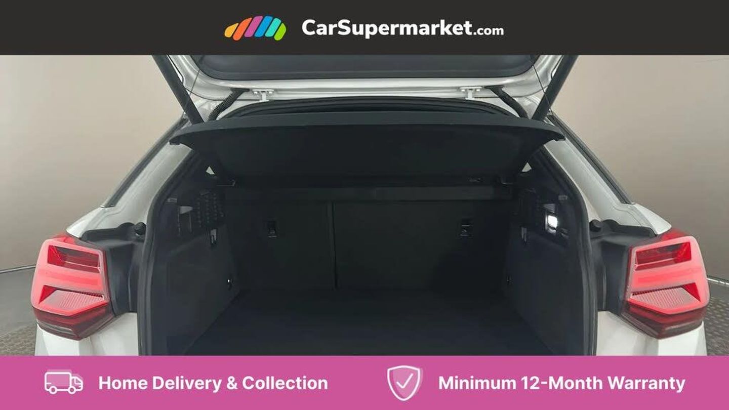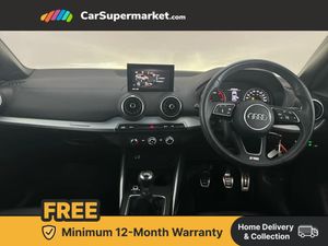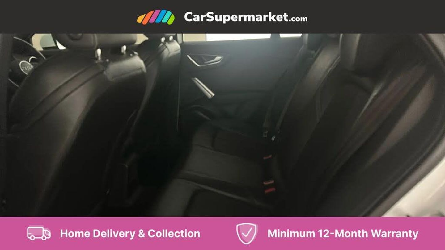 Audi drive select,Audi smartphone interface,Automatic start/stop system with recuperation,Bluetooth interface includes bluetooth audio streaming,Cruise control,MMI - Multi Media Interface control system,MMI SD card integrated nav with 3D map display, dynamic route guidance with TMC, MMI search, natural voice recognition and myAudi special destinations,Power operated tailgate,Progressive steering,Service interval indicator,Dynamic suspension,2 x SDXC card reader,Audi music interface - apple iPod, apple iPhone, USB storage media, compatible MP3 players, 2 x USB charging points and 1 x Aux-in,CD Drive,DAB digital radio and AM/FM radio,MMI radio plus with 7" colour MMI screen and MMI controller,Black window trims,Bumper in full body colour paint finish,Chrome exhaust tailpipe,Electrically adjustable and heated door mirrors with integrated LED side indicators,Front and rear electric windows,Front underbody guard and rear diffuser trim in selenite silver,Front windscreen with grey tinted sunband,Headlight washers,Interior mirror,LED headlights with LED rear lights + dynamic rear indicators,LED indicator lights,Manual folding door mirrors,Rain and light sensors,Rear wiper,S Line badges on the front wings,S Line body styling - front and rear bumpers, side skirts, radiator grille, rear diffuser insert and front air intakes,60/40 split folding rear seat bench,Black cloth headlining,Front centre armrest,Front headrests,Front sport seats with S embossed logo,Height/reach adjust steering wheel,Illuminated door sill trims with S logo,ISOFIX child seat mounting for front passenger with airbag deactivation and outer rear seat including top tether attachment point for outer rear seats,Manual seat adjustment including seat height adjustment for front seats,Stainless steel pedals,Storage compartments - Glovebox, cupholder compartment in centre console, storage compartment in rear centre console, front and rear door pockets,Three rear headrests,Non smoking pack - Q2,3x3 point rear seatbelts,6 airbags - Front, curtain and front side airbags,Electromechanical parking brake,Electronic stabilisation control including ABS, ASR and EDL,Extended and proactive pedestrian protection,Hill hold assist,Multi collision brake assist,Pre-sense front with pedestrian recognition,Seatbelt monitoring,Tyre pressure warning light,Warning triangle and first aid kit,Anti theft alarm,Anti theft wheel bolts,Central locking system with remote control key,Electronically operated child locks,Aluminium interior element