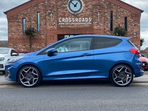 Crossroads Garage are delighted to offer another superb used vehicle; this fabulous Ford Fiesta 1.5T ST-3 Performance Pack which has just arrived in stock with us. COLOUR & TRIM - Our example is presented in the highly desirable colour Performance Blue Ford metallic paintwork and rides on 18" Magnetite Finish Alloy Wheels. The interior is finished in complimentary Black Half Leather Recaro Sports Upholstery with heated front seats. SOURCE - This Fiesta ST-3 arrived with us directly from it's previous keeper. SERVICING - Our example has covered just 38000 miles and is provided with a Full Service History. It is of-course HPI clear and the mileage has been verified with VOSA records. CONDITION - This Fiesta ST-3 has been well cared for and is in excellent condition throughout. Having been put through our multi-point check this car is ready to drive away and will be supplied with a MOT until June 2026 with no advisories. SPECIFICATION - Our Fiesta ST-3 has 200 BHP and is a great choice with fantastic features including, ST Performance Pack with Launch Control and Limited Slip Differential, Colour Touch Screen With Ford SYNC3 Navigation, Apple CarPlay, ST Selectable Driving Modes, Heated Recaro Seats, Heated Steering Wheel, Heated Front Windscreen, Rear View Camera, Parking Sensors With Optical Display, Bluetooth Handsfree With Audio Streaming, LED Interior Courtesy Lights, Privacy Glass, DAB Radio, Cruise Control, Multi-Function Flat-Bottom Steering Wheel, Climate Control, Electric Folding Door Mirrors, and more besides. WHAT TO EXPECT FROM US - Fabulous finance packages, class-leading warranty cover and the comfort of knowing your car is being supplied by a multi award-winning dealer including Trading Standards Retailer of the Year and we have customer feedback scores to be proud of. All of our vehicles are prepared to an high standard by our team of skilled technicians and will be valeted ready for collection. We take pride in our efforts to make this the most enjoyable car-buying experience you'll ever have. Please call and speak to James, Alan, Dean or Simon who'll be able to answer any questions you have, to reserve this wonderful example today or to book a viewing. Please remember to bring a valid Full Driving Licence with you. Thank You.
