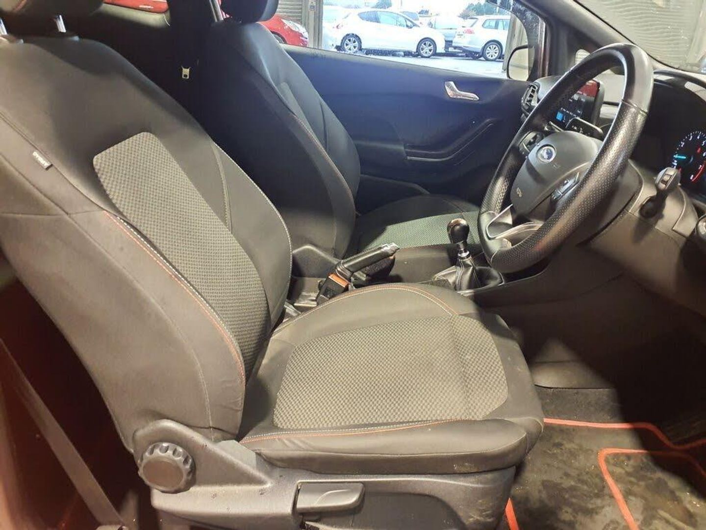 17in Alloy Wheels - 5x2-Spoke - Rock Metallic, Air Conditioning - Manual, Airbags - Driver and Front Passenger, Airbags - Front Side Impact, Airbags - Front and Rear Side Curtain, Anti-Lock Braking System - ABS with Electronic Brake Force Distribution - EBD, Black Belt Line Finisher, Centre Console with Two Cupholders and 12V Power Point, Courtesy Light - Front Map Light and Rear - Overhead LED, Door Handles - Body Colour, Door Lever - Chrome Finish, Door Mirrors - Heated - Electric - Integrated Side Indicators - Body Coloured, EPAS - Electric Power Assisted Steering, Emergency Brake Warning - Automatic Hazard Warning Lights, Enhanced Electronic Stability Control - ESC with Traction Control - Emergency Brake Assist - EBA - Hill Start Assist - HSA and Trailer Sway Control, Ford Easy-Fuel Capless Refuelling System, Ford SYNC with Touchscreen - DAB Radio - Apple CarPlay and Android Auto, Front Bumper - Unique ST-Line, Front Door Threshold Plates - ST-Line, Front Seat - Drivers Manual Height and Fore-Aft Adjustment, Front Seats - Sports Style, Gearshift Knob - Leather-Trimmed with Aluminium Insert, Glovebox - Illuminated, Headlights - Automatic On-Off, Headlights - Halogen Projector with Black Bezel and Dedicated LED Daytime Running Lights, Headliner - Black Woven, Headliner - Woven-Dark, IPS - Intelligent Protection System, Keyless Start with Ford Power Start Button, Large Rear Spoiler - Body Colour with Centre High Mounted Stop Light, Leather-Trimmed Handbrake, MyKey, NCAP Pack, Overhead Console - Sunglasses Holder, Quickclear Heated Windscreen, Rear Bumper - Unique ST-Line, Rear Fog Lamps, Rear Lights - Non-LED, Rear Seat - 60-40 Split Back and Cushion, Remote Central Locking and Engine Immobiliser, ST-Line Front Fog Lamps with Cornering Lights, ST-Line Side Skirt Body Mouldings - Body Colour, Seats - ISOFIX Mounting Provision for Child Seats, Sports Pedals, Sports Tuned Suspension, Steering Column - Rake and Reach Adjustment, Steering Wheel - ST-Line 3-Spoke Leather Trimmed Flat Bottomed, Tailgate Wash-Wipe, Thatcham Category 1 Alarm, Trip Computer, Tyre Pressure Monitoring System - TPMS, Tyre Repair Kit, Unique ST-Line Upper Grille and Full Bodystyling Kit with ST-Line Wing Badges, Warning Triangle Storage, Windows - Electrically Operated Front with One Touch Lowering-Closing on Drivers Side, Wipers - Standard with 6 Speed Interval Settings