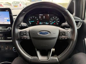 17in Alloy Wheels - ST-Line 5-Spoke - Rock Metallic, Air Conditioning - Manual, Airbags - Driver and Front Passenger, Airbags - Front Side Impact, Airbags - Front and Rear Side Curtain, Anti-Lock Braking System - ABS with Electronic Brake Force Distribution - EBD, Black Belt Line Finisher, Centre Console with Two Cupholders and 12V Power Point, Courtesy Light - Front Map Light and Rear - Overhead LED, Door Handles - Body Colour, Door Lever - Chrome Finish, Door Mirrors - Heated - Electric - Integrated Side Indicators - Body Coloured, EPAS - Electric Power Assisted Steering, Emergency Brake Warning - Automatic Hazard Warning Lights, Enhanced Electronic Stability Control - ESC with Traction Control - Emergency Brake Assist - EBA - Hill Start Assist - HSA and Trailer Sway Control, Ford DAB Radio with Ford SYNC3 - Apple Car Play and Android Auto, Ford Easy-Fuel Capless Refuelling System, Front Bumper - Unique ST-Line, Front Door Threshold Plates - ST-Line, Front Seat - Drivers Manual Height and Fore-Aft Adjustment, Front Seats - Sports Style, Gearshift Knob - Leather-Trimmed with Aluminium Insert, Glovebox - Illuminated, Headlights - Automatic On-Off, Headlights - Halogen Projector with Black Bezel and Dedicated LED Daytime Running Lights, Headliner - Black Woven, Headliner - Woven-Dark, IPS - Intelligent Protection System, Keyless Start with Ford Power Start Button, Large Rear Spoiler - Body Colour with Centre High Mounted Stop Light, Leather-Trimmed Handbrake, MyKey, NCAP Pack, Overhead Console - Sunglasses Holder, Quickclear Heated Windscreen, Rear Bumper - Unique ST-Line, Rear Fog Lamps, Rear Lights - Non-LED, Rear Seat - 60-40 Split Back and Cushion, Remote Central Locking and Engine Immobiliser, ST-Line Front Fog Lamps with Cornering Lights, ST-Line Side Skirt Body Mouldings - Body Colour, Seats - ISOFIX Mounting Provision for Child Seats, Sports Pedals, Sports Tuned Suspension, Steering Column - Rake and Reach Adjustment, Steering Wheel - ST-Line 3-Spoke Leather Trimmed Flat Bottomed, Tailgate Wash-Wipe, Thatcham Category 1 Alarm, Trip Computer, Tyre Pressure Monitoring System - TPMS, Tyre Repair Kit, Unique ST-Line Upper Grille and Full Bodystyling Kit with ST-Line Wing Badges, Warning Triangle Storage, Windows - Electrically Operated Front with One Touch Lowering-Closing on Drivers Side, Wipers - Standard with 6 Speed Interval Settings