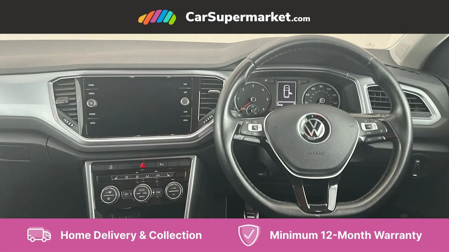 Cruise Control, Adaptive Cruise Control, Bluetooth, Sat Nav, Traffic Sign Recognition, Apple CarPlay, Wireless Phone Charging, Digital Radio, Android Auto, Heated Front Seats, 17" Alloy Wheels;This 2021 Volkswagen T-Roc TDI Active presents an exceptional ownership proposition, having been meticulously maintained by its sole owner with a clear vehicle history check and a recent service completed on 16th December 2024 at 51,106 miles. This Euro 6 compliant 2.0 litre diesel model boasts an MOT valid until September 2026, offering peace of mind for the road ahead. Notable features include Adaptive Cruise Control for effortless journeys and automatic dusk sensing headlights, ensuring optimal visibility in varying light conditions. The T-Roc TDI Active is designed to be both economical and efficient, with an impressive fuel economy of 60 miles per gallon. Its low CO2 emissions and placement within a low insurance group further highlight its cost effectiveness compared to similar vehicles. This combination of practical features, strong provenance, and excellent running costs makes this Volkswagen T-Roc a compelling choice.